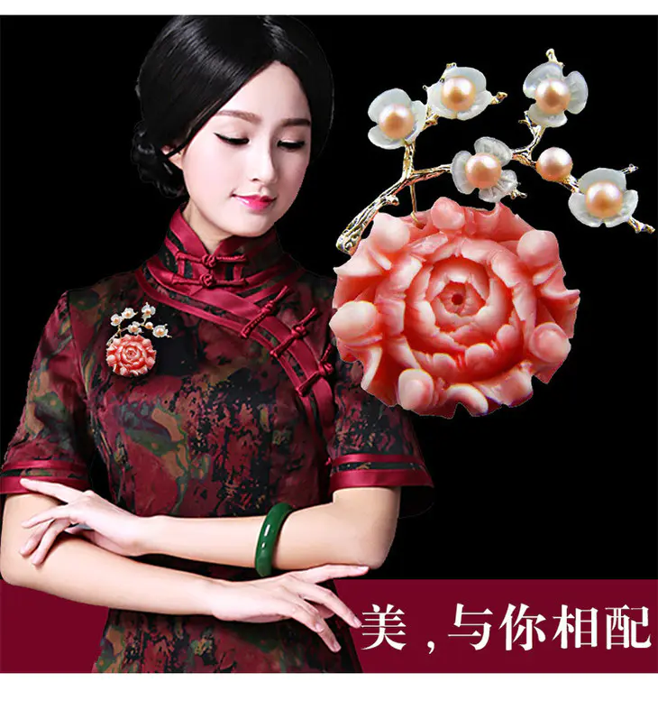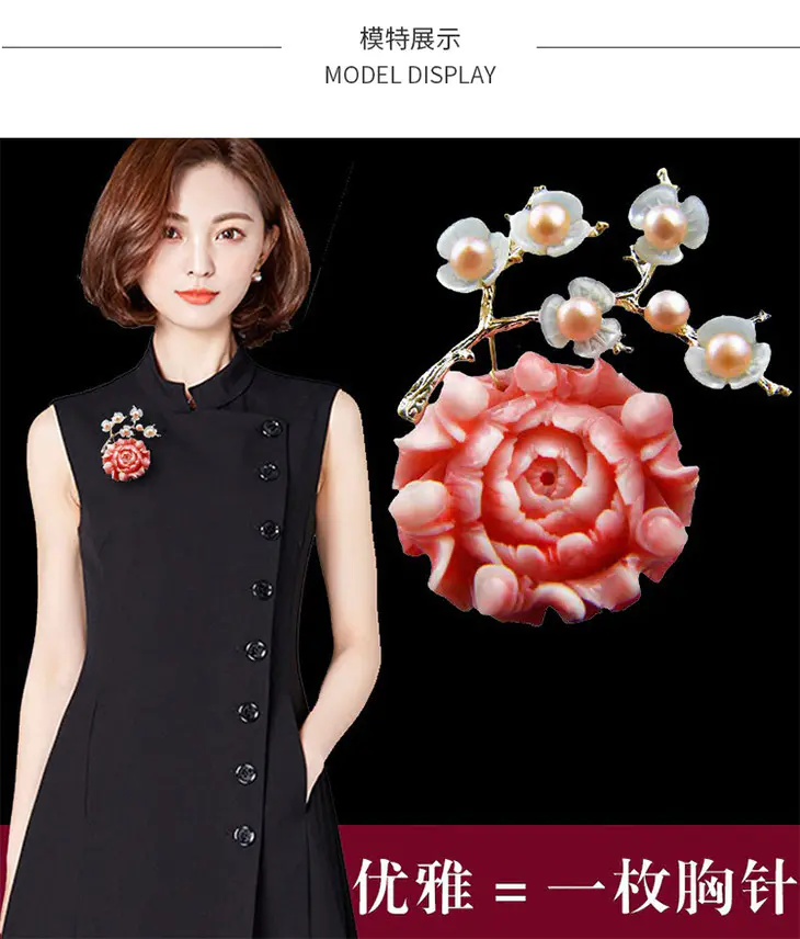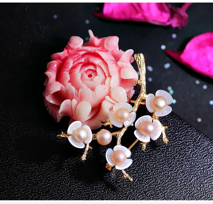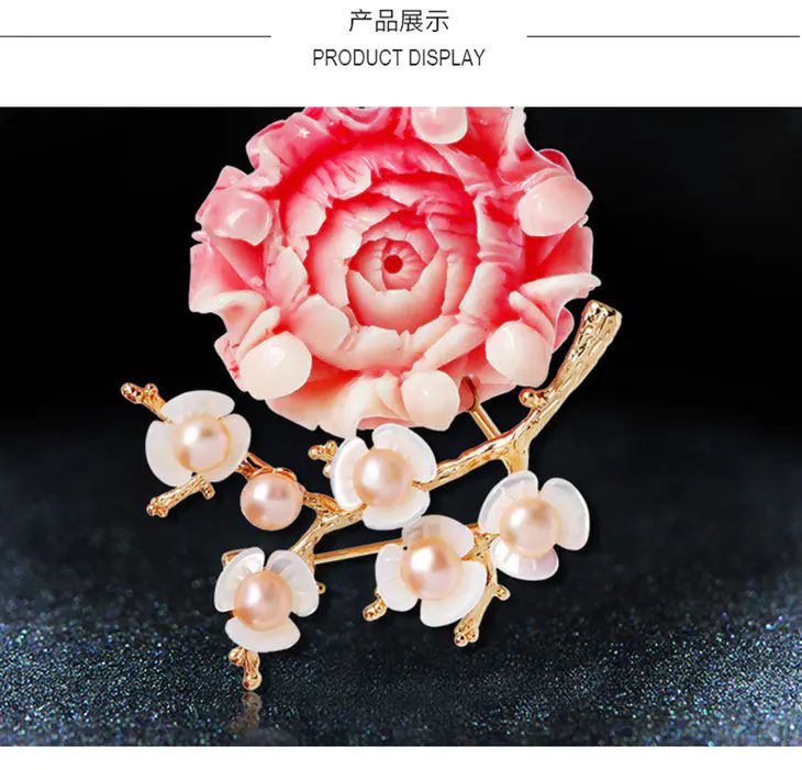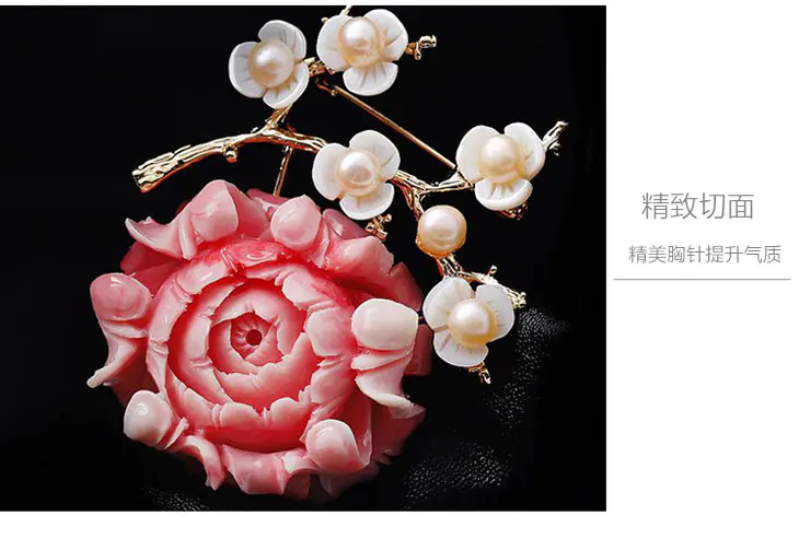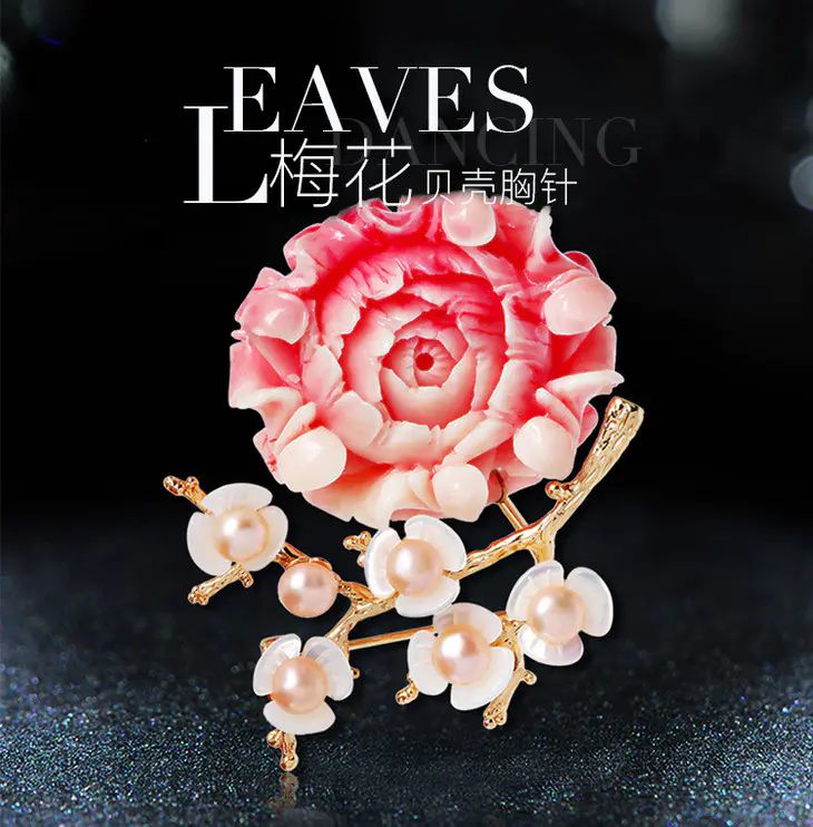 RS-淡水珍珠贝壳梅花胸针胸花