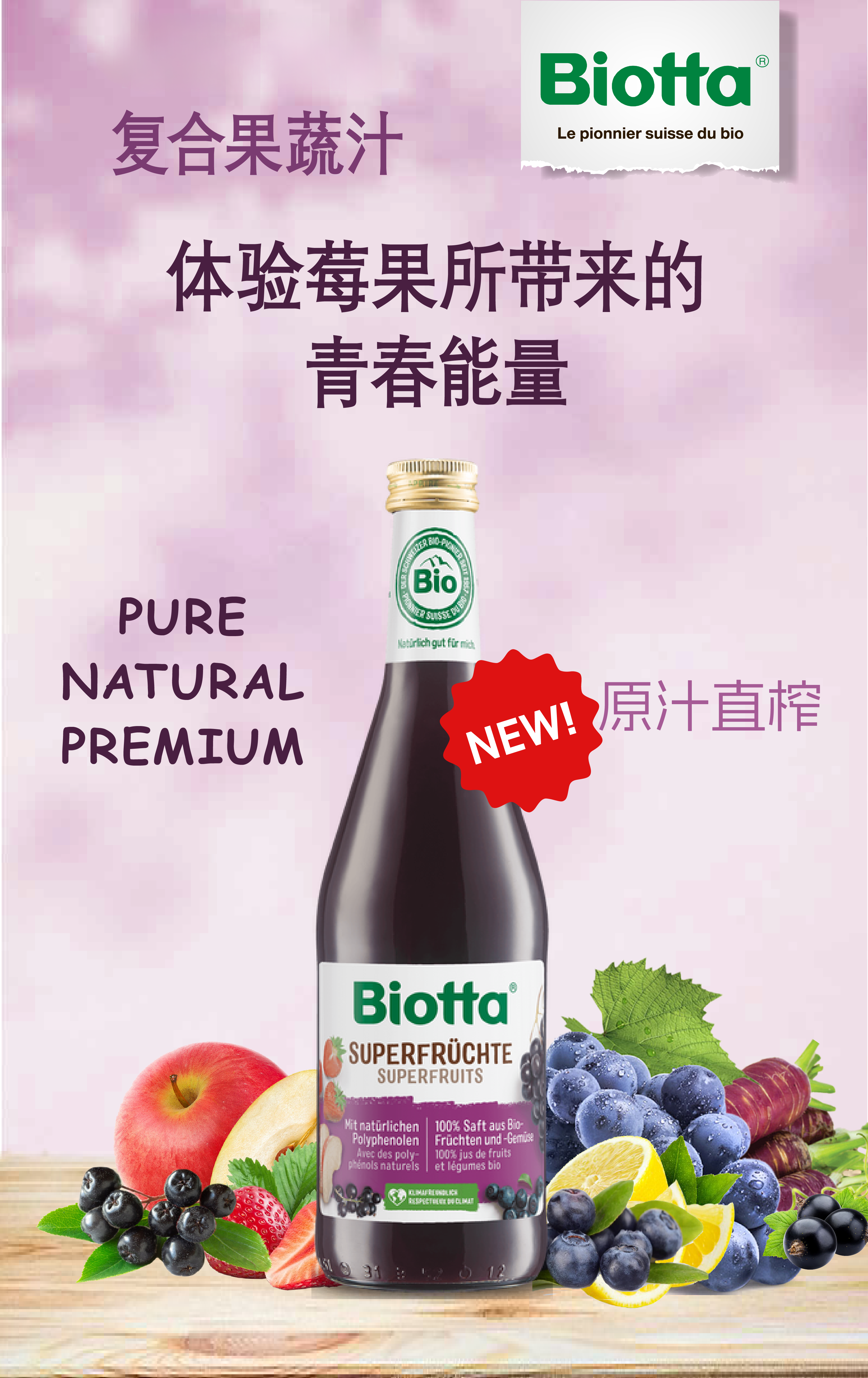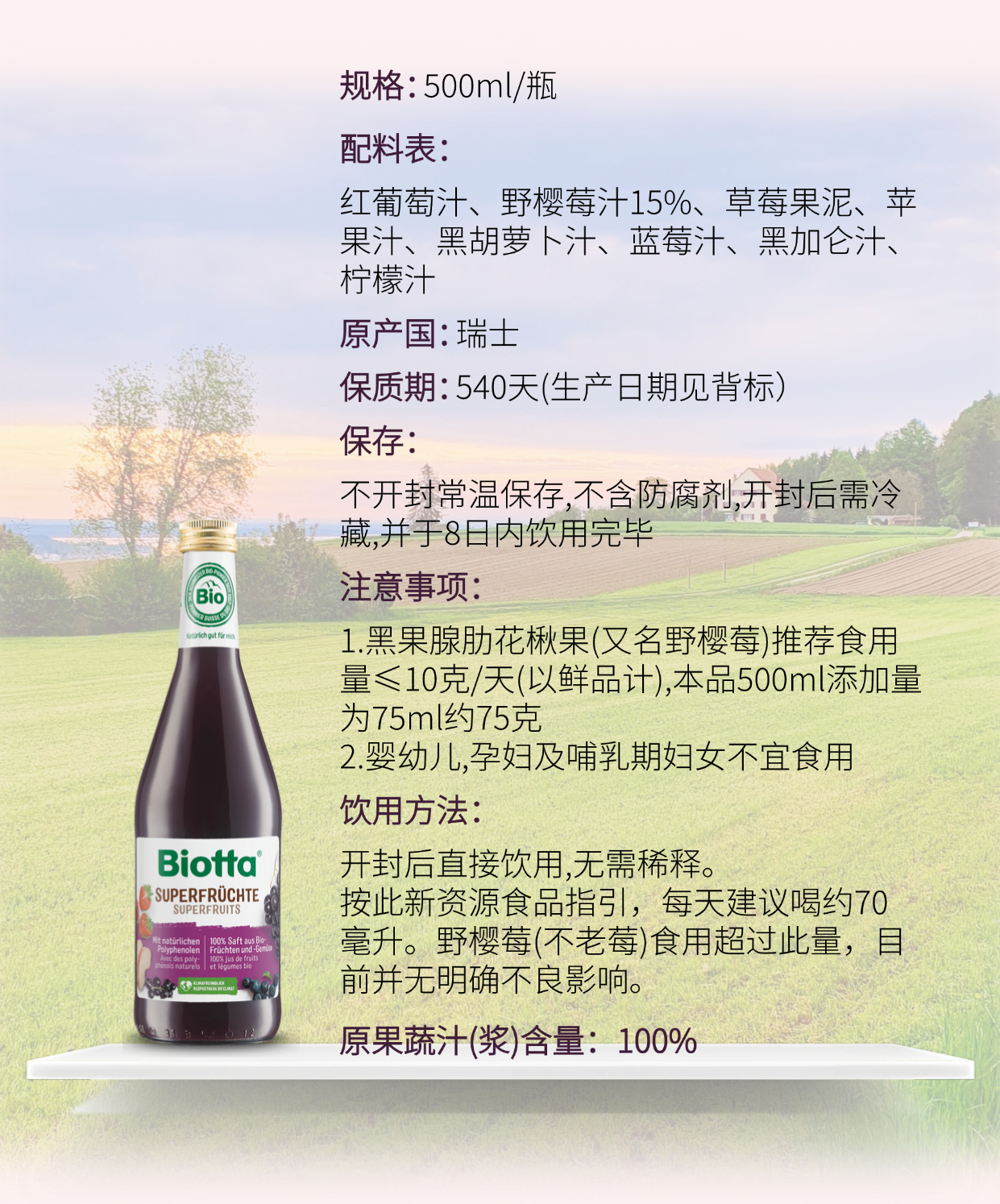 Biotta 莓果复合果蔬汁 | 500ml*2瓶/4瓶/6瓶 野樱莓/黑胡萝卜/黑加仑/蓝莓 自然农法耕种 纸托环保包装
