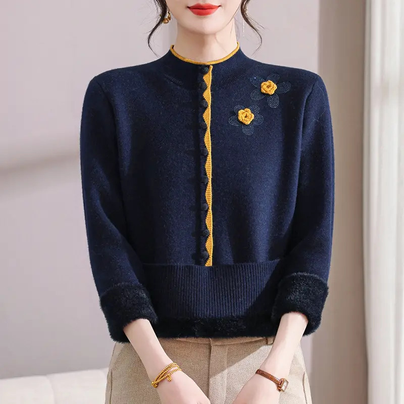 【高级材质面料❗️立体剪裁修饰身形】妈妈装冬装加绒保暖毛衣半高领打底中老年女装冬季必备。jb