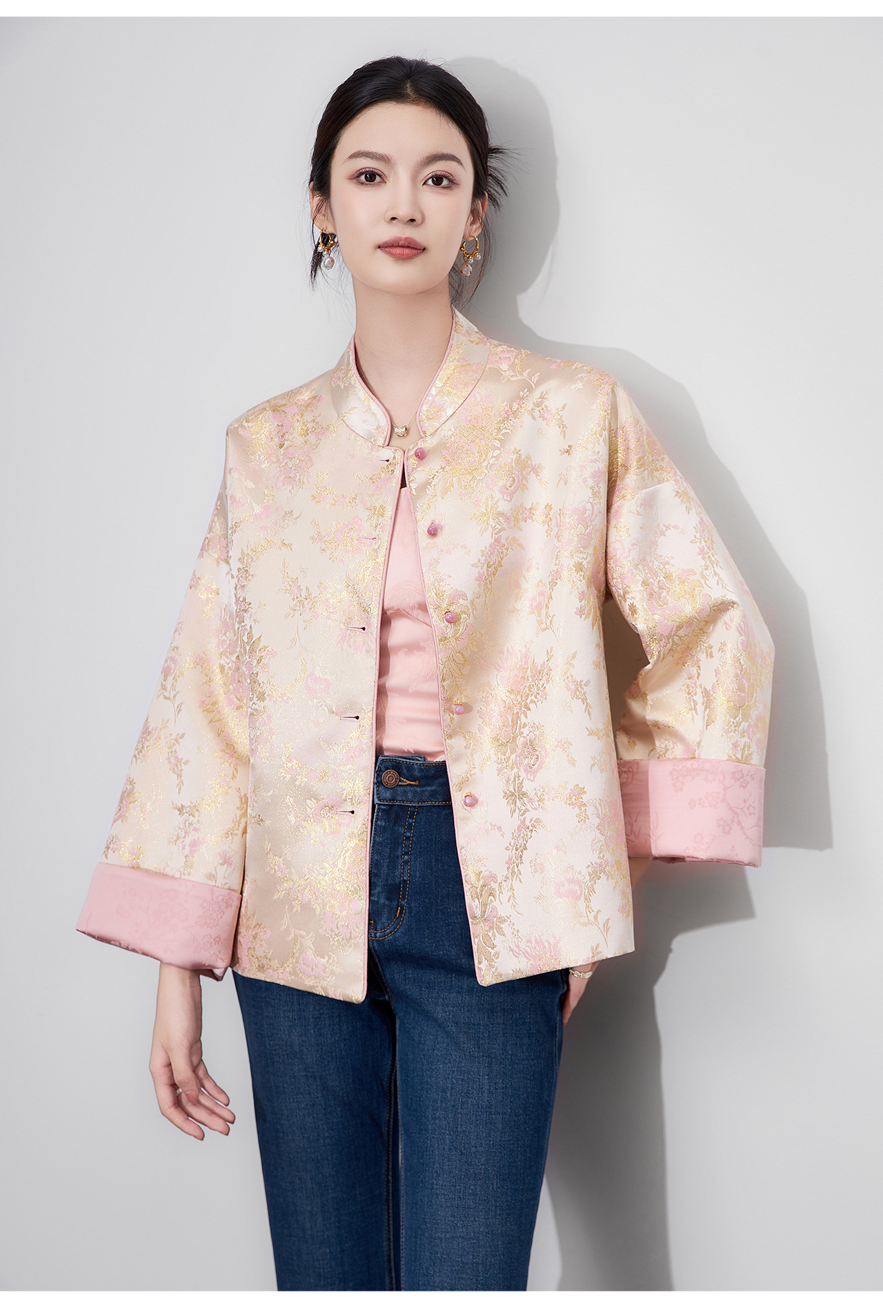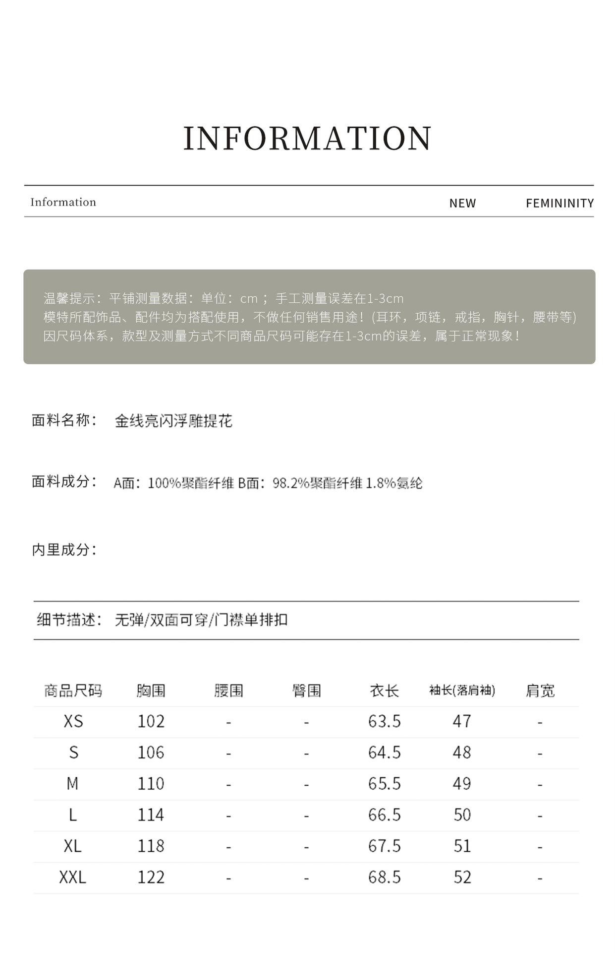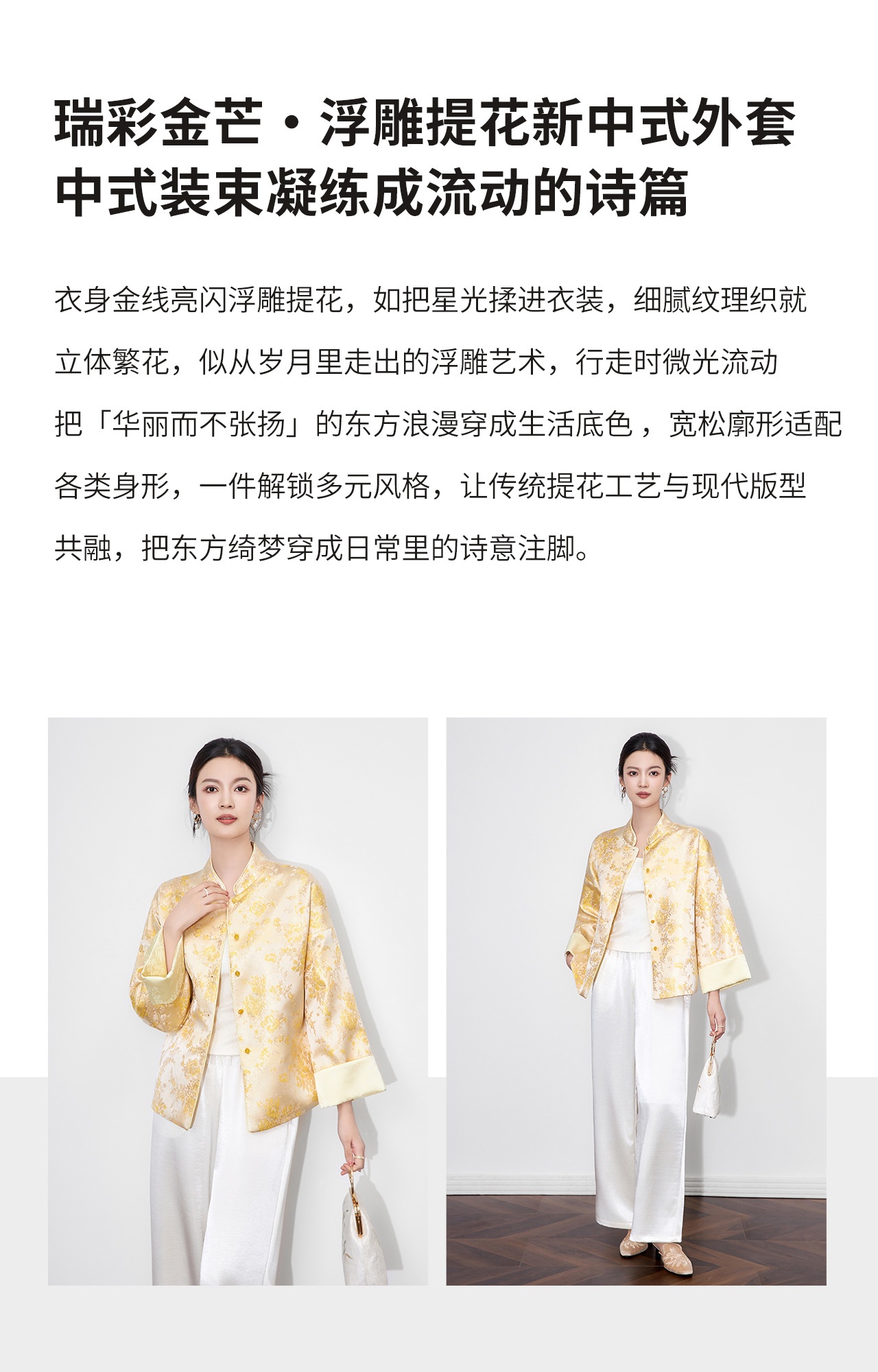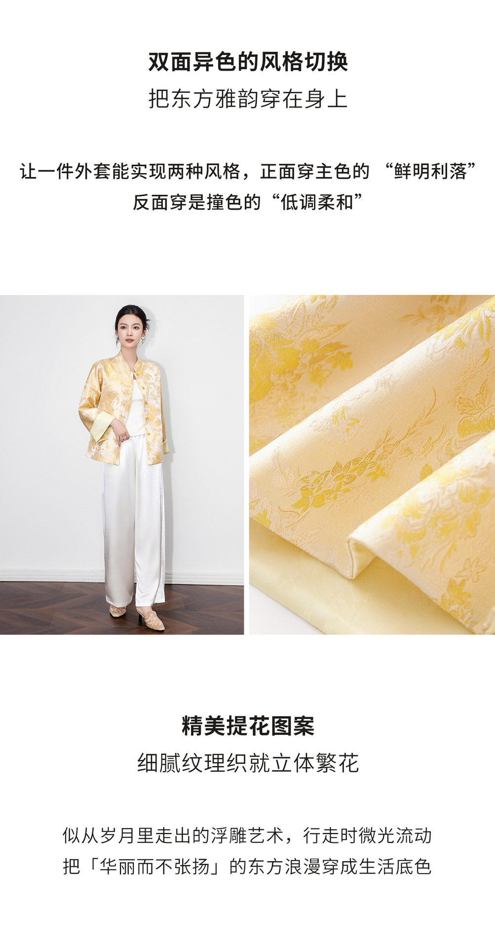 「高货wl」全新升级【铂金会员339/天猫459/差价120】(93717)洛诗琳瑞彩琼纹金线提花外套2025秋季国风两面穿上衣女