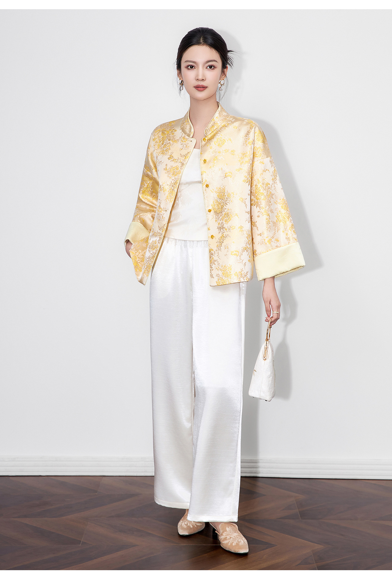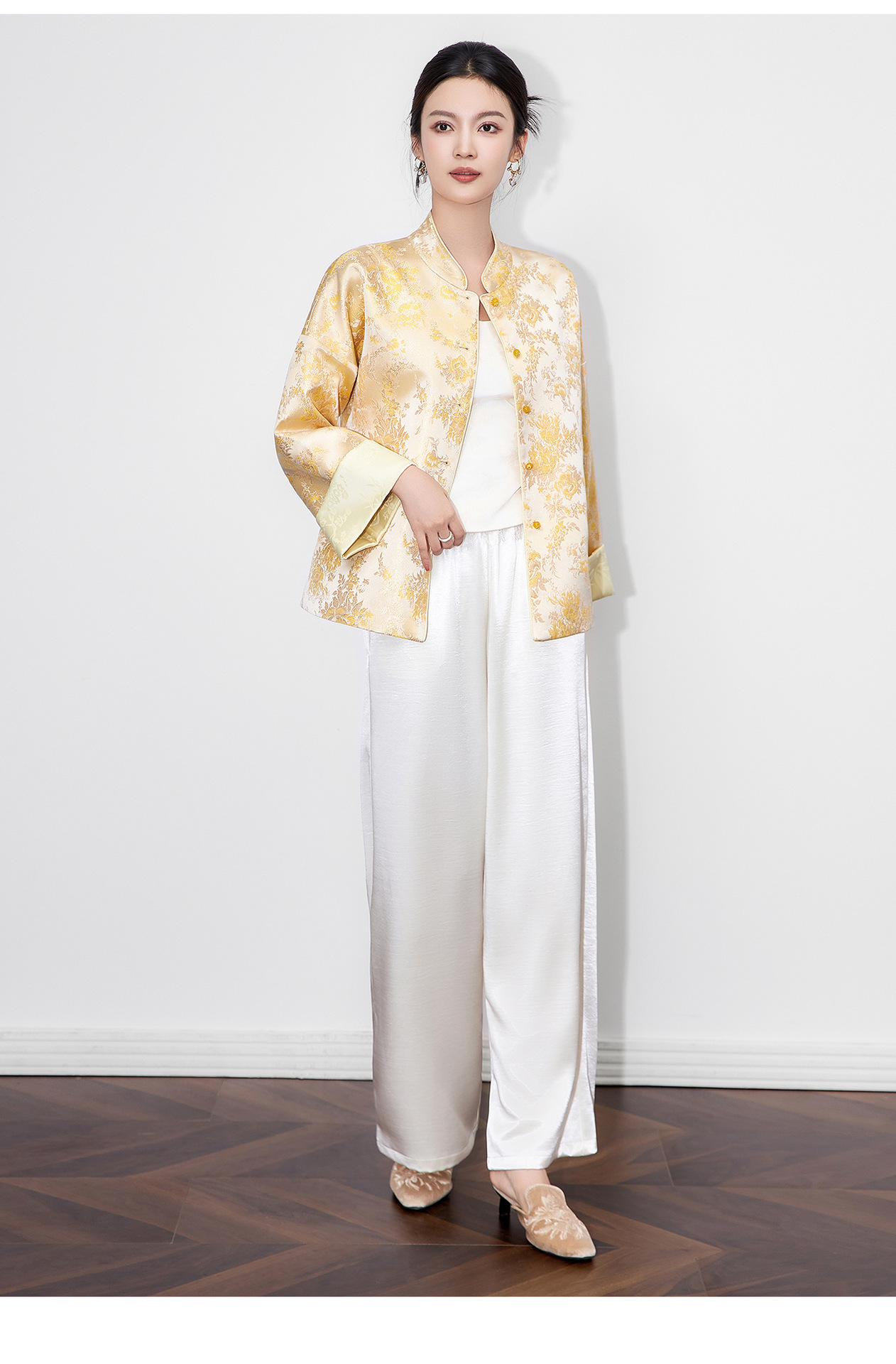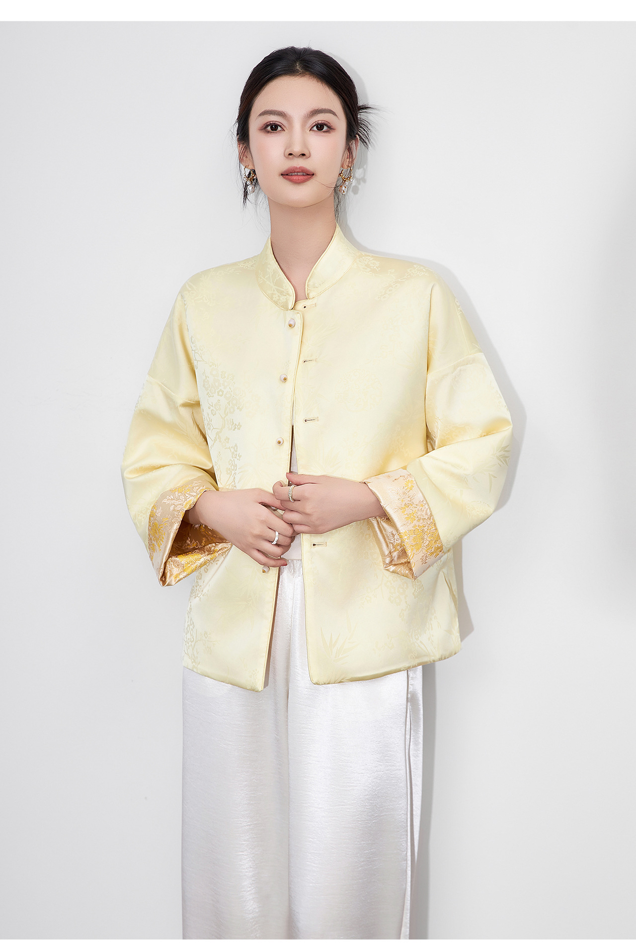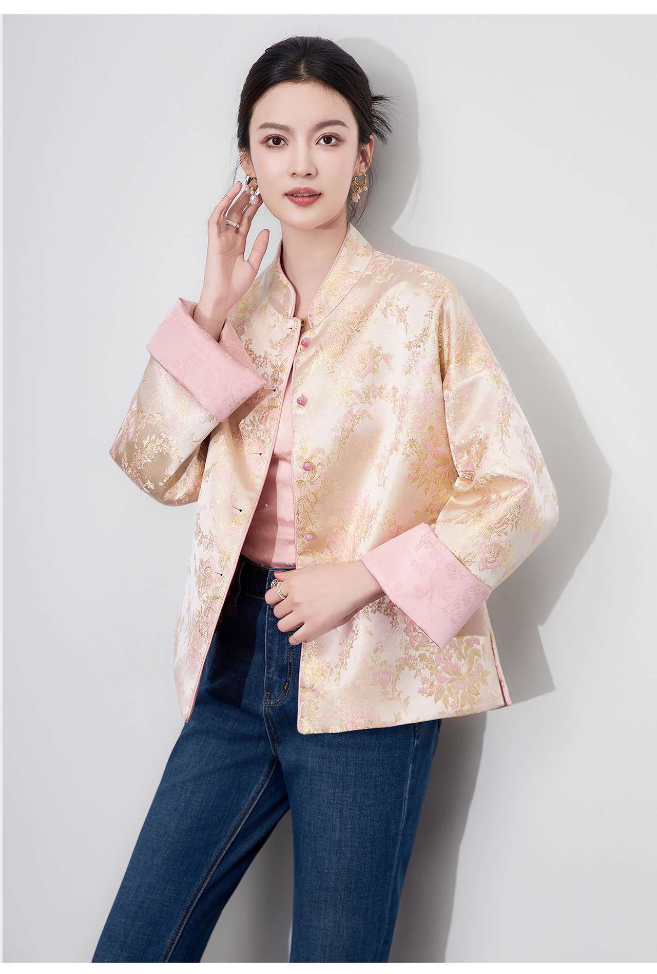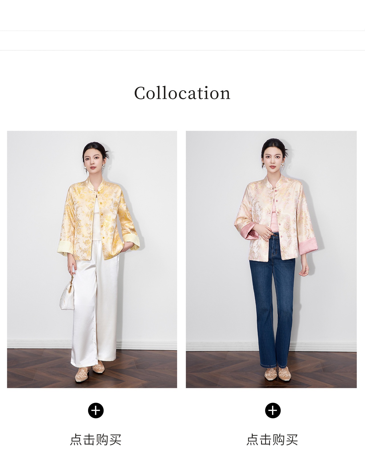 「高货wl」全新升级【铂金会员339/天猫459/差价120】(93717)洛诗琳瑞彩琼纹金线提花外套2025秋季国风两面穿上衣女