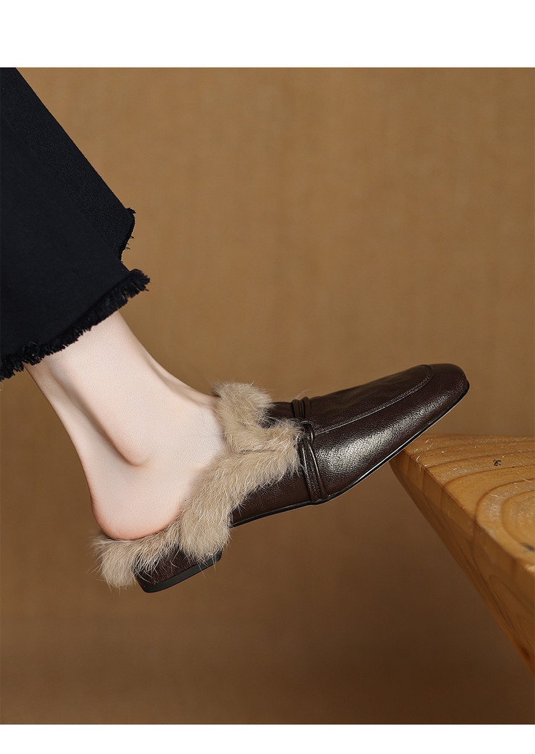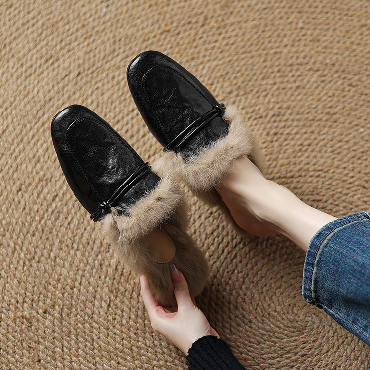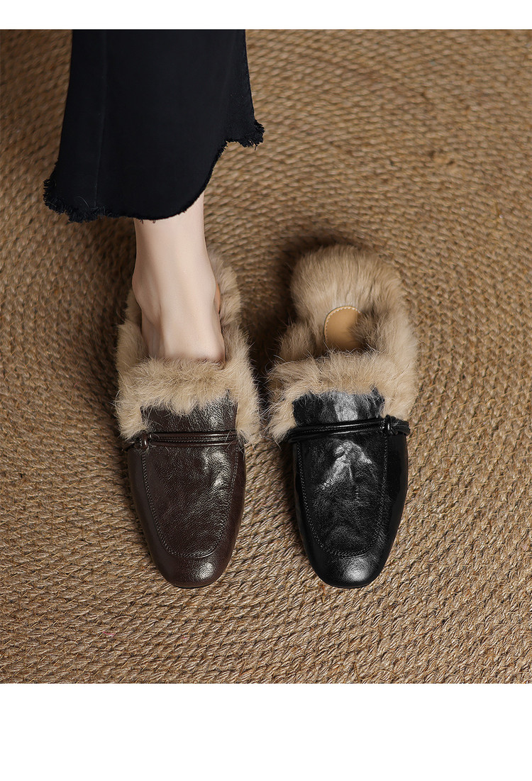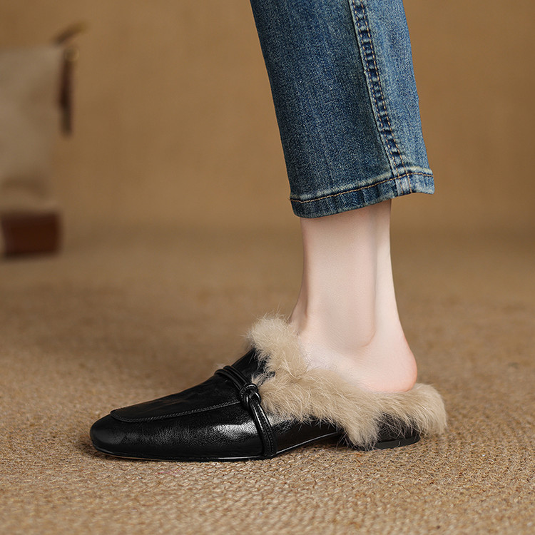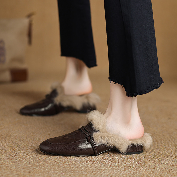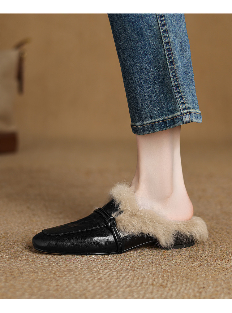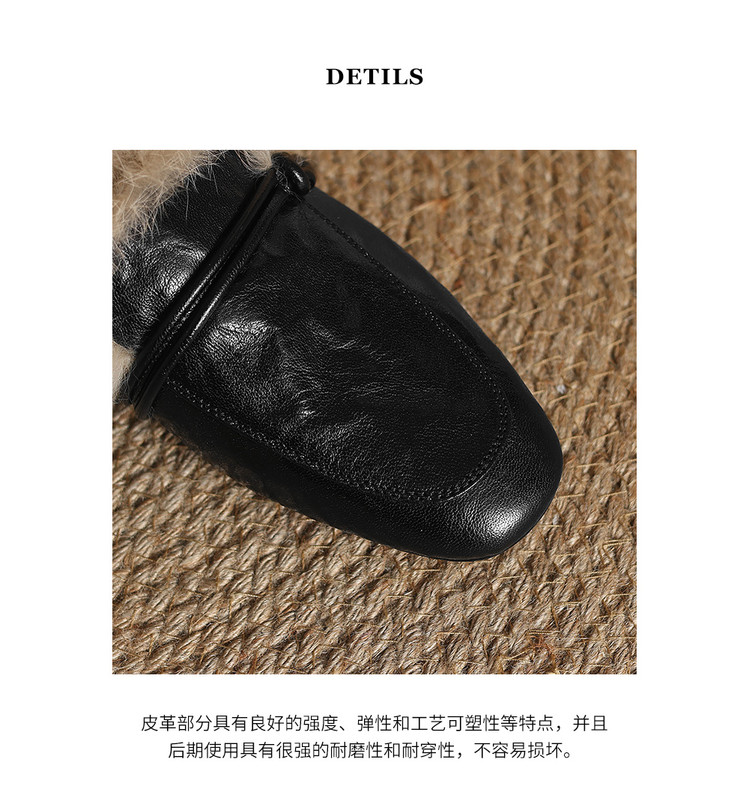 【预售5天】羊皮兔毛毛拖鞋女外穿秋冬英伦复古加绒保暖包头半拖鞋粗跟穆勒鞋NGMZR&7955