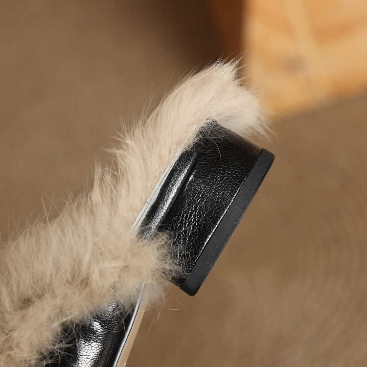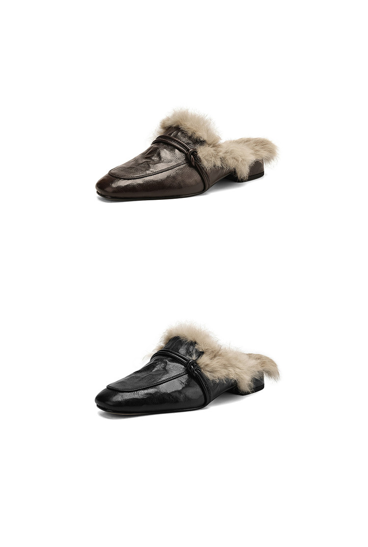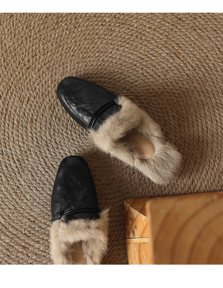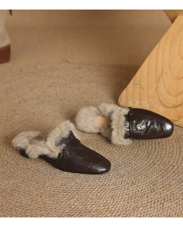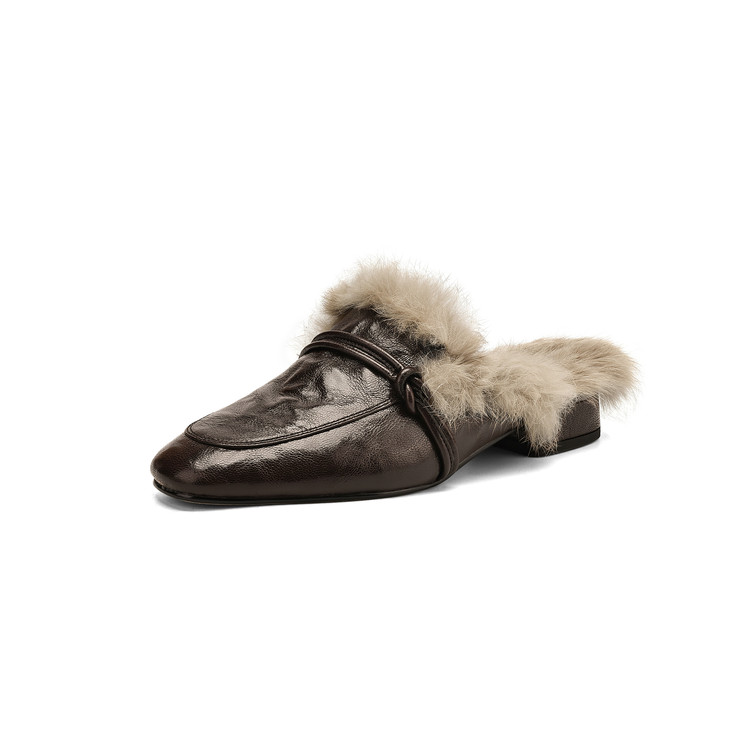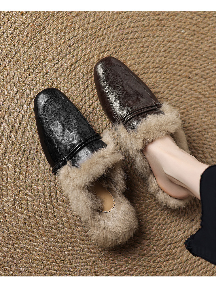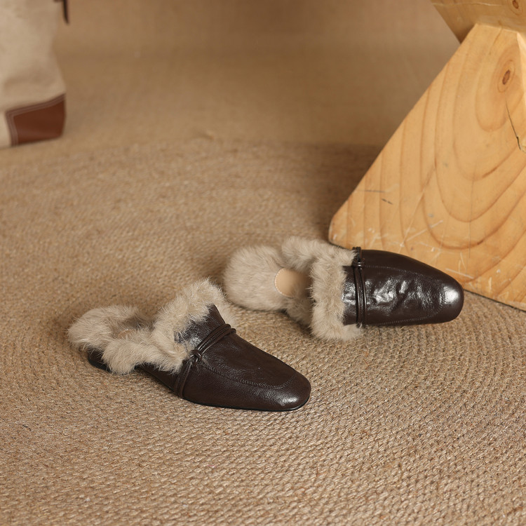 【预售5天】羊皮兔毛毛拖鞋女外穿秋冬英伦复古加绒保暖包头半拖鞋粗跟穆勒鞋NGMZR&7955