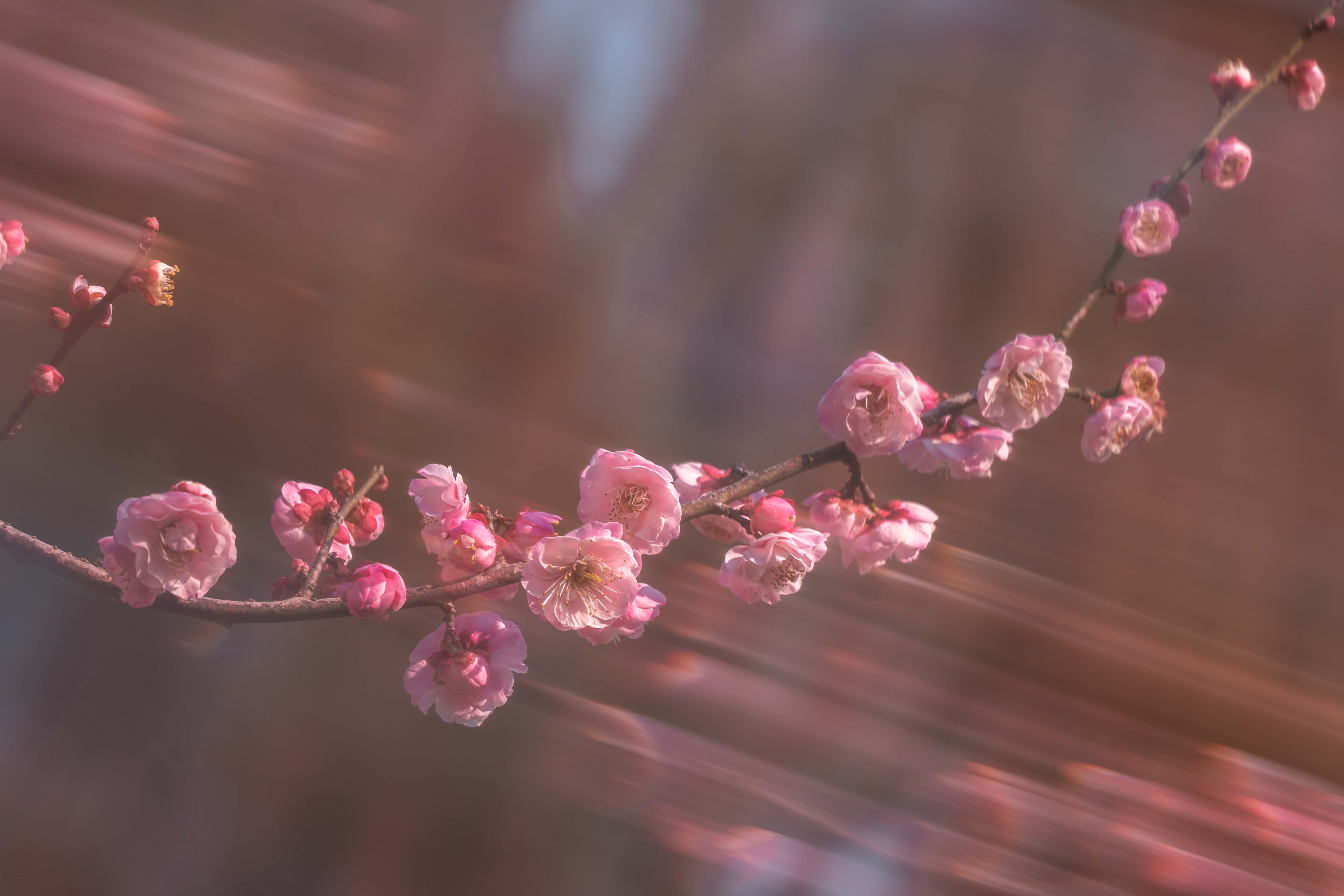 早上乘车前往木兰梅花谷创作,300亩梅花沿着一整个山坡蔓延,在航拍视角下,整个山都是梅红色,非常震撼。