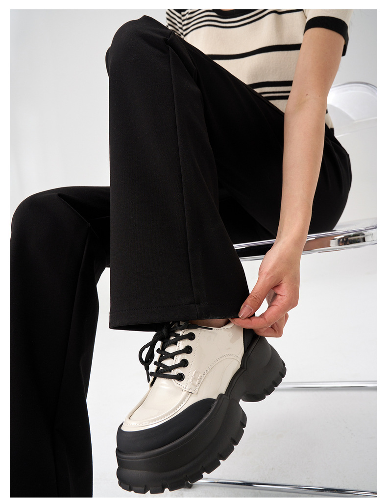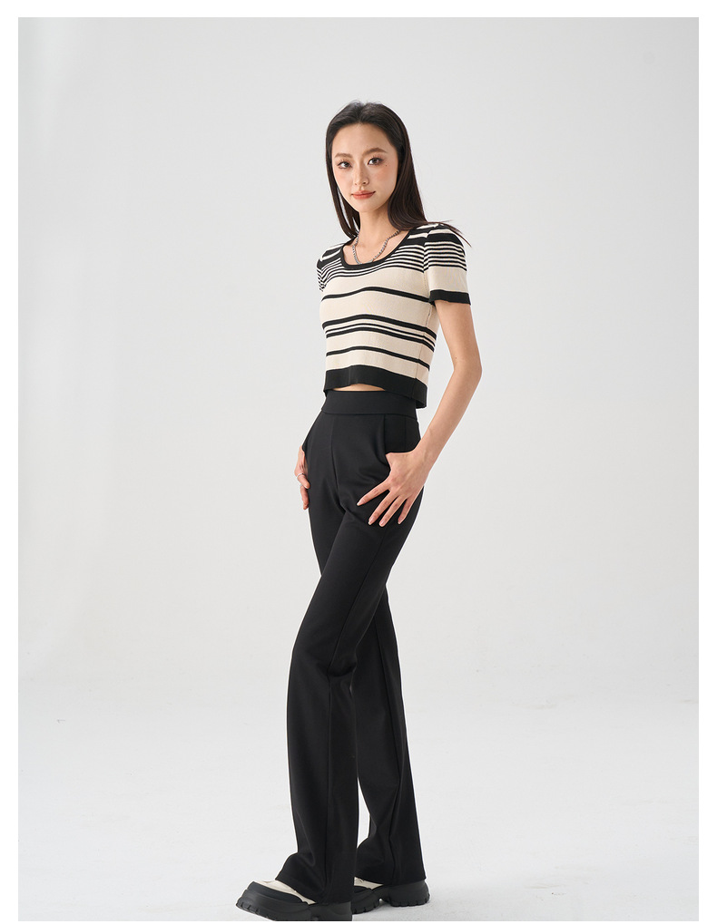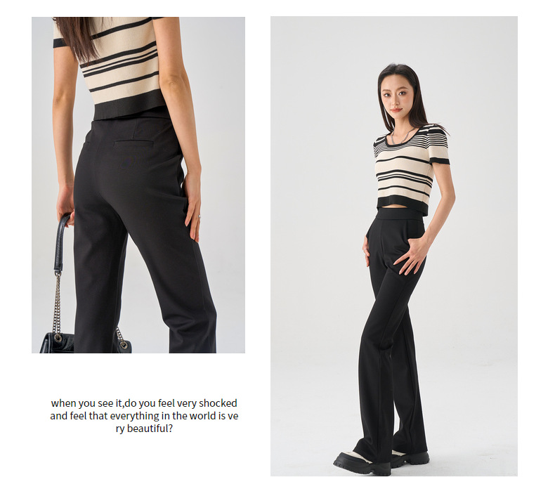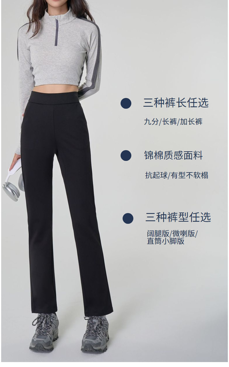 丁摩 【高腰小黑裤】哥弟面料三种裤型春女装黑色阔腿烟管休闲弹力微喇休闲女裤5ZF-4215