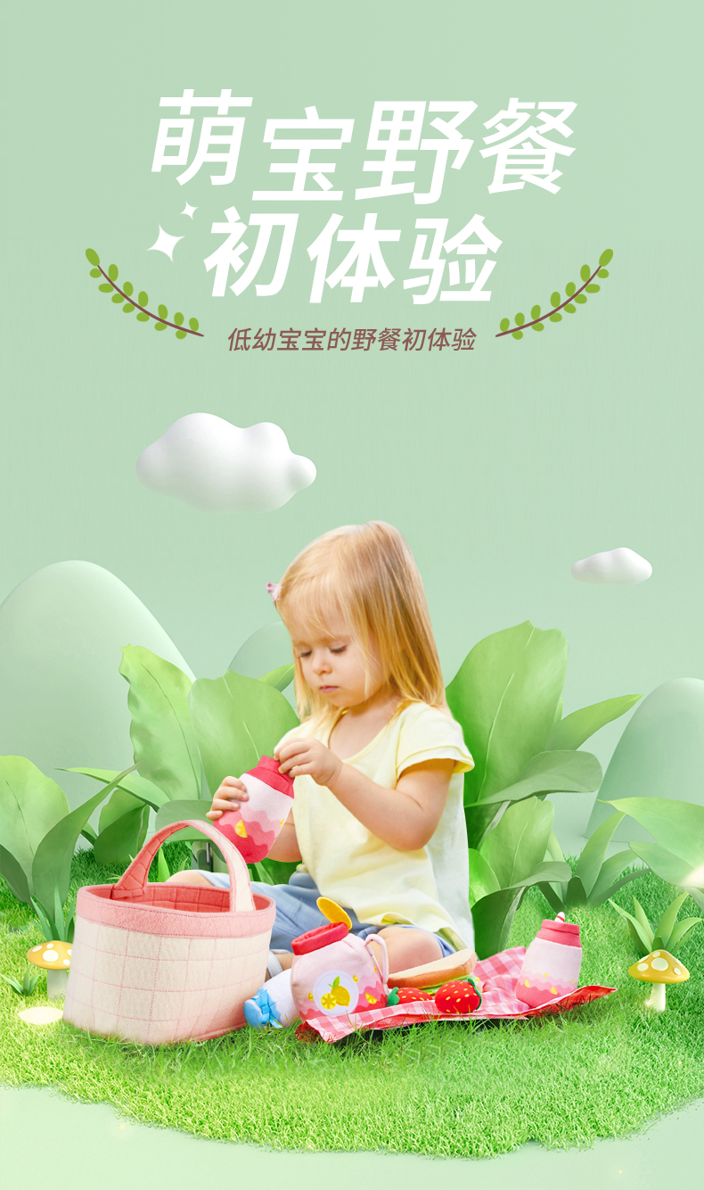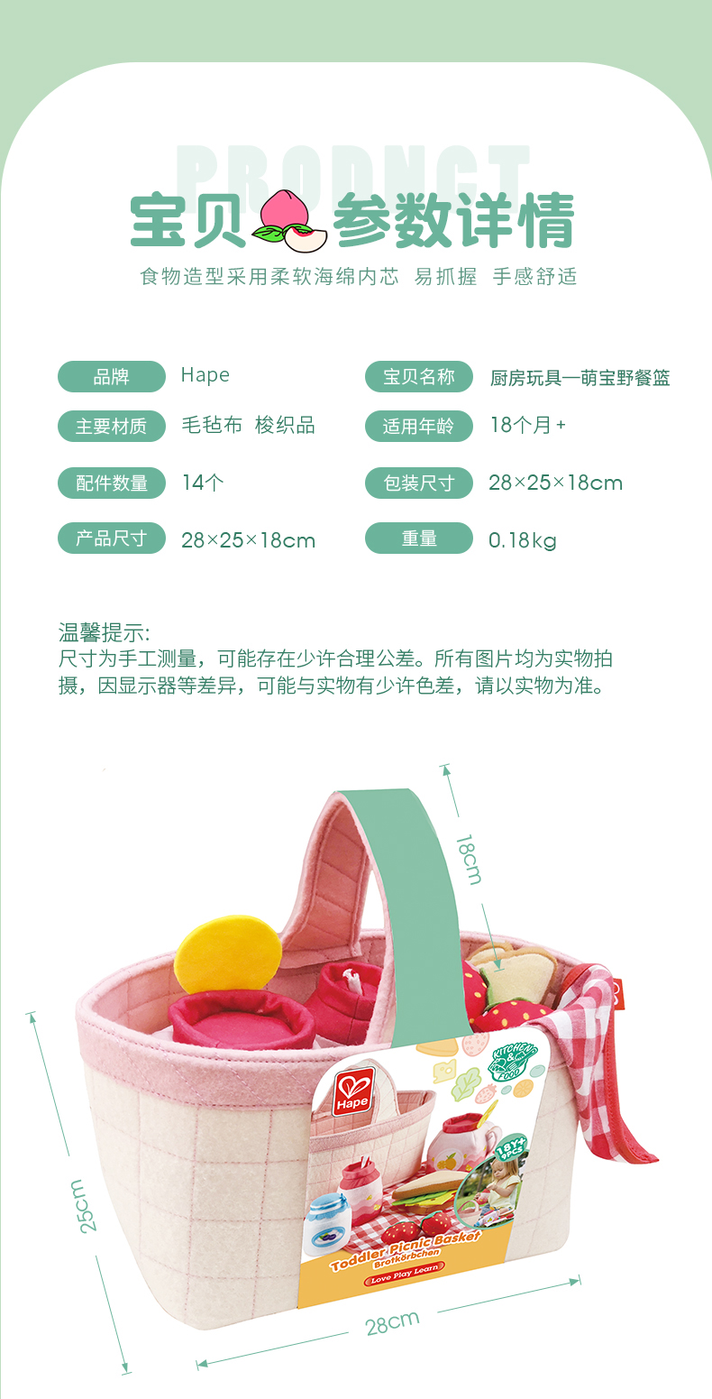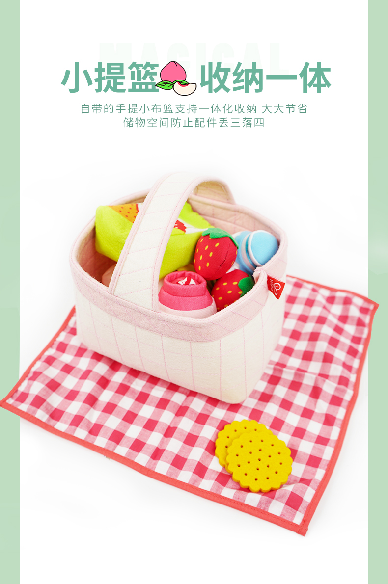 Hape过家家玩具 布艺厨房玩具套装水果食物玩具1-3岁低幼宝宝角色扮演 萌宝野餐套E3179