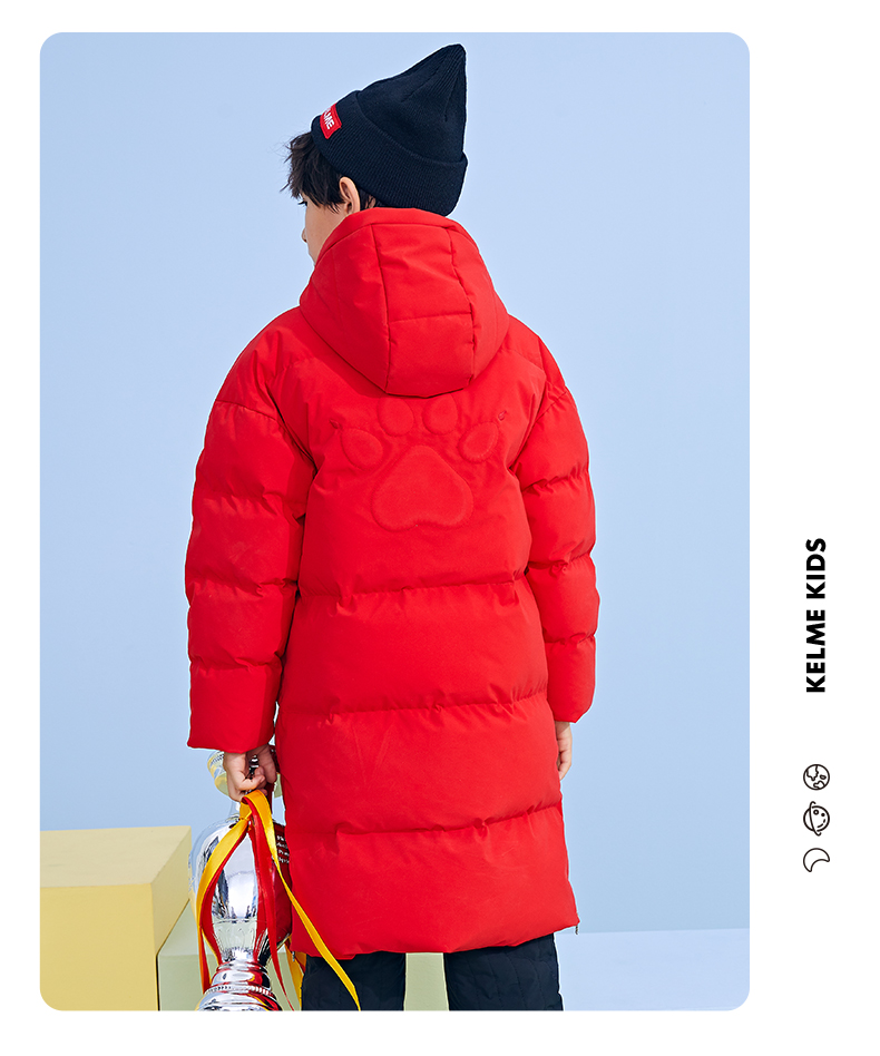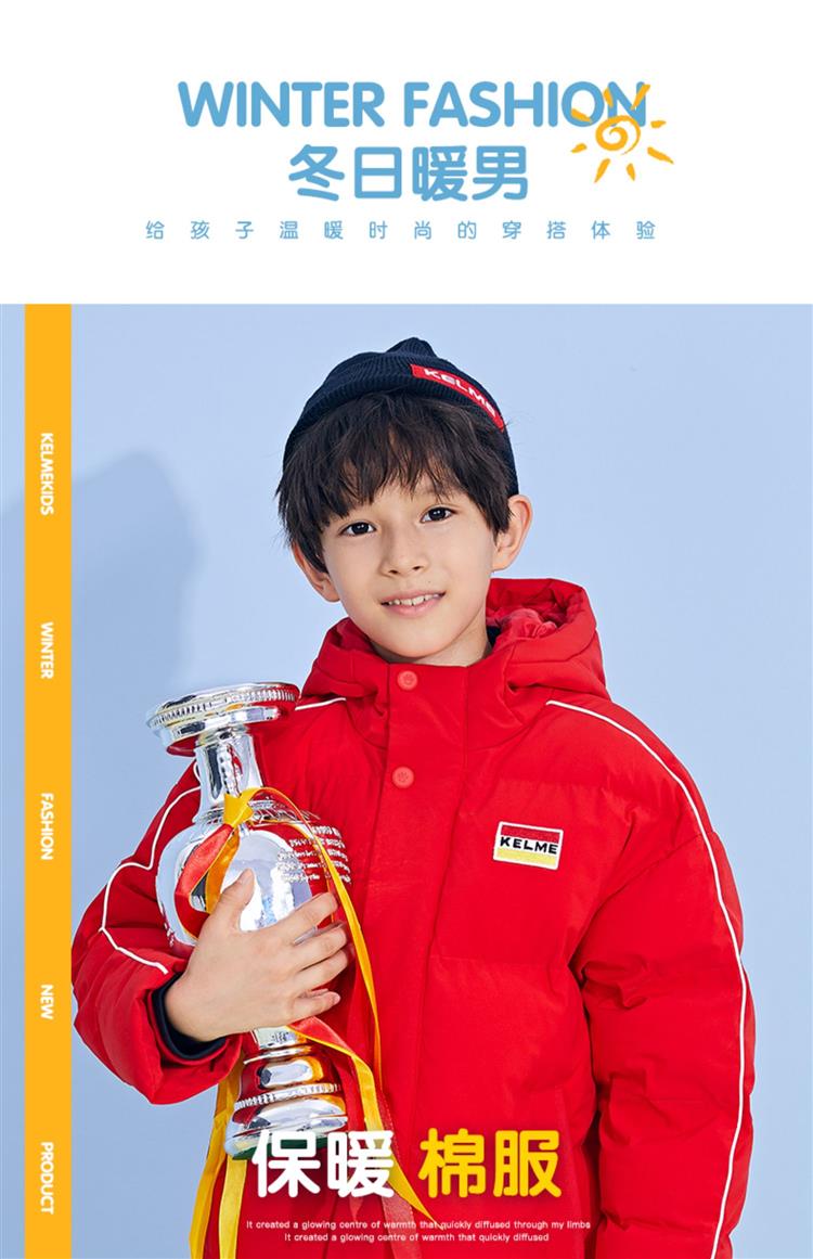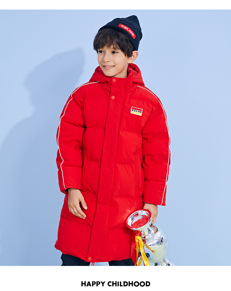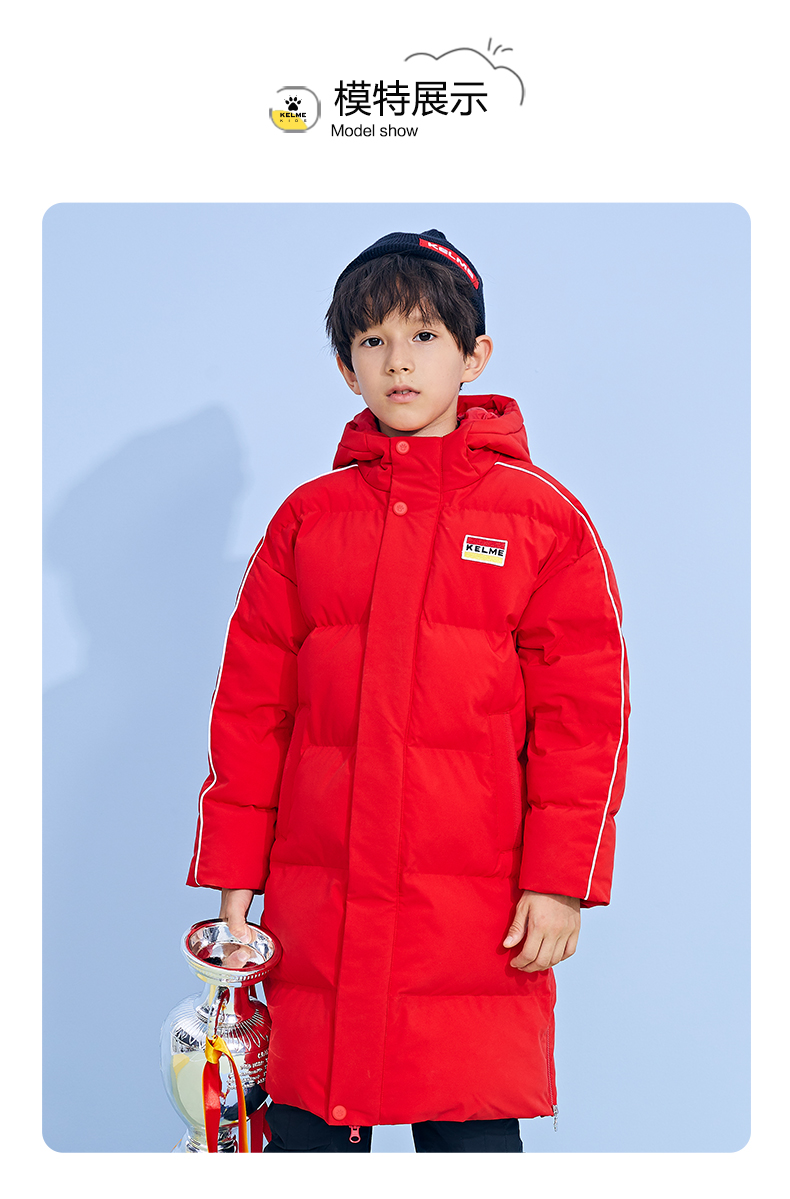 KELME卡尔美 正品儿童运动棉服男女中长款冬季加厚足球连帽棉衣新