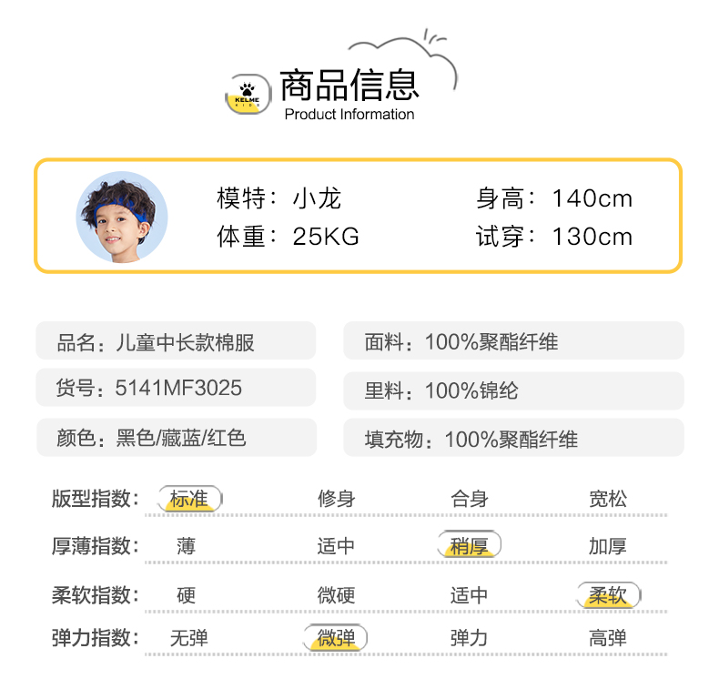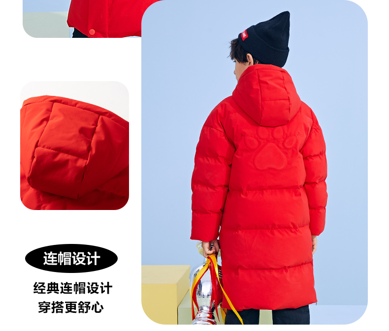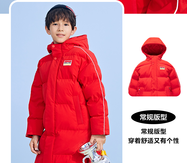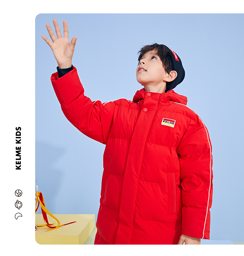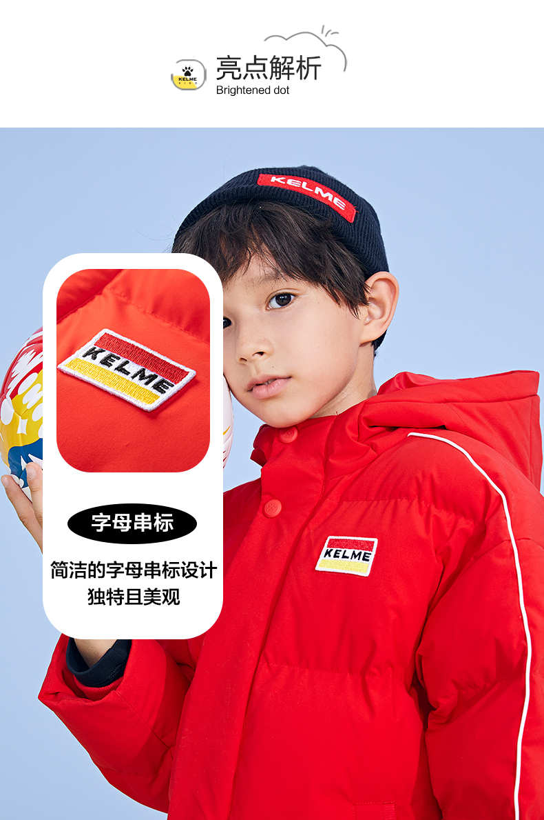 KELME卡尔美 正品儿童运动棉服男女中长款冬季加厚足球连帽棉衣新