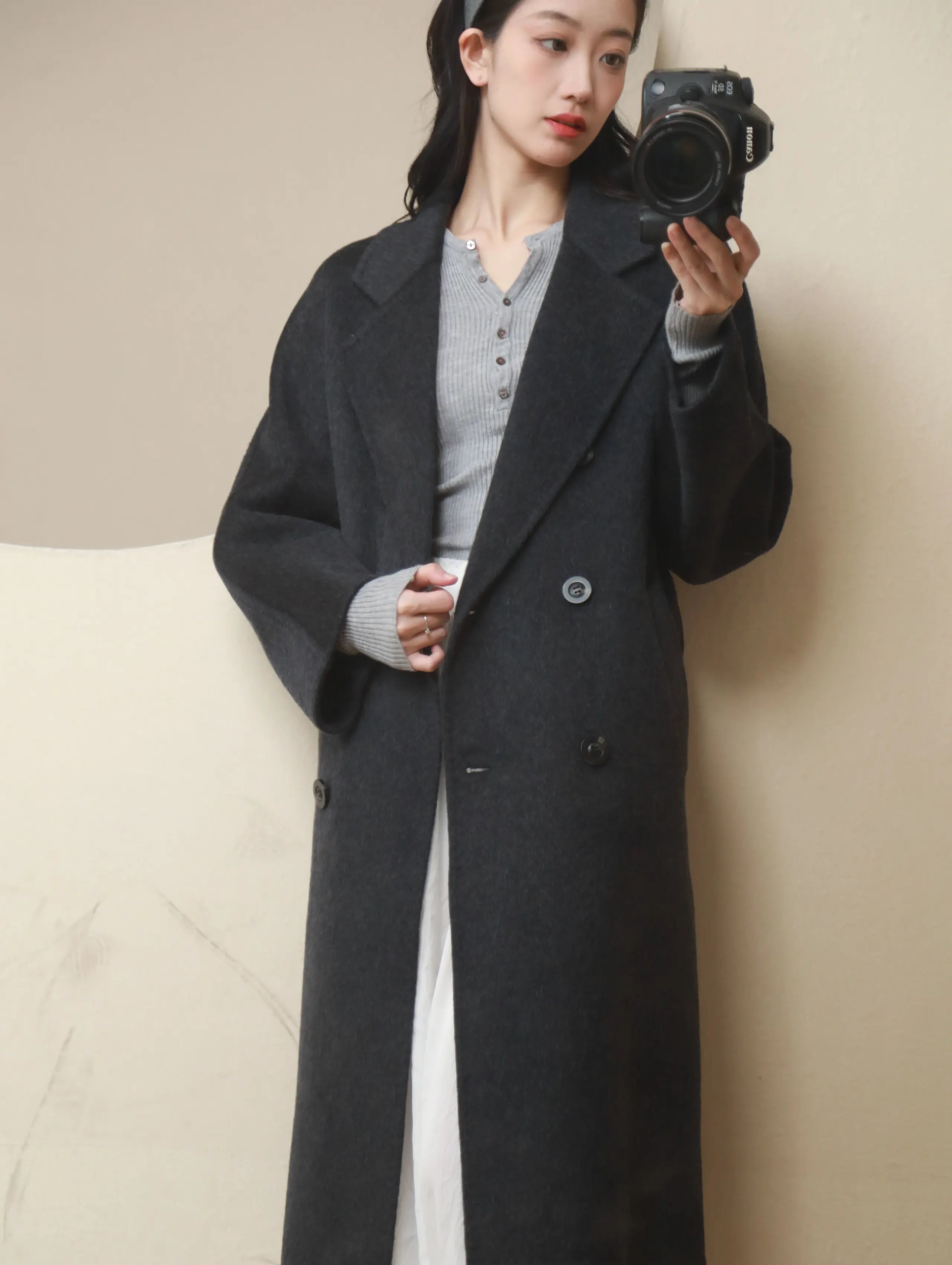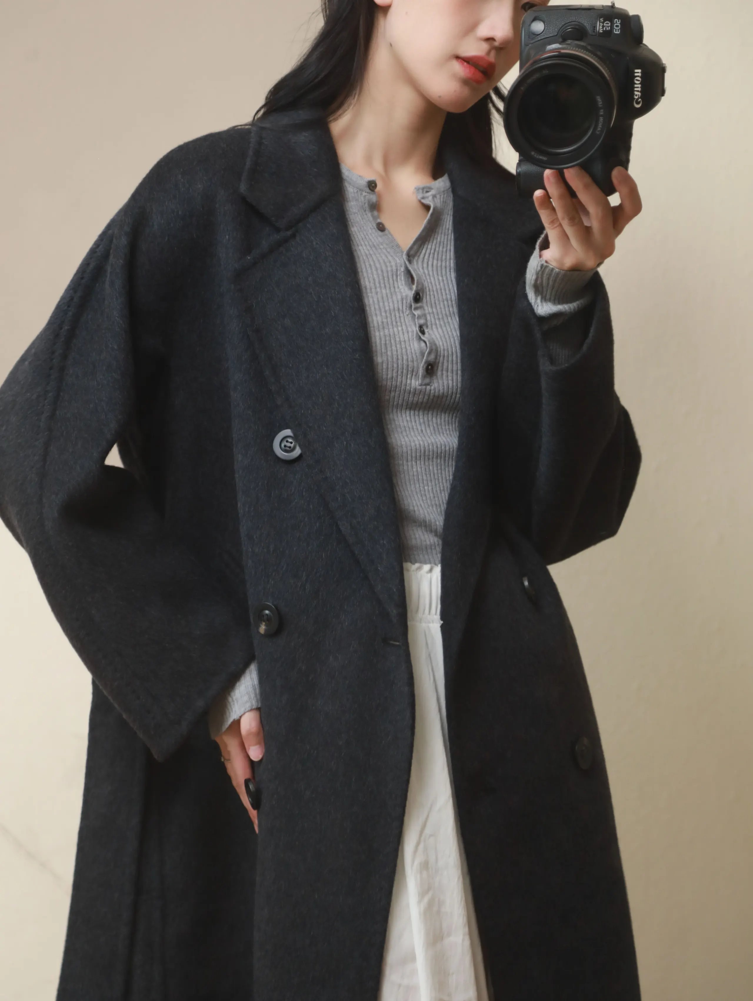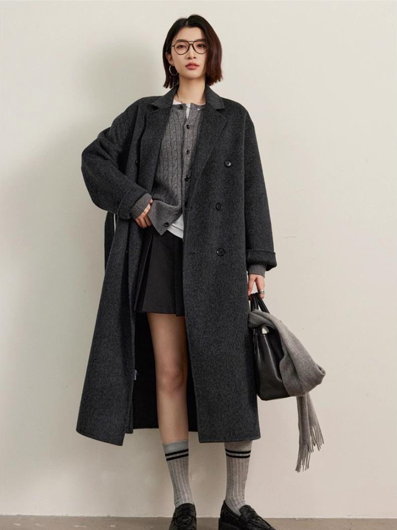 高定立体剪裁宽松廓形手工双面呢大衣