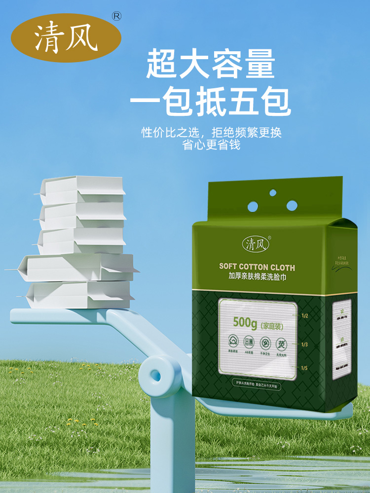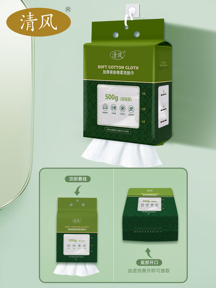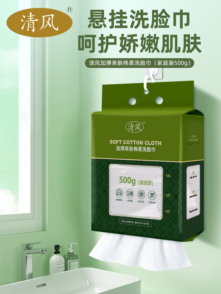 【上和文化】清风加厚亲肤绵柔洗脸巾 青木萄系列悬挂式500g