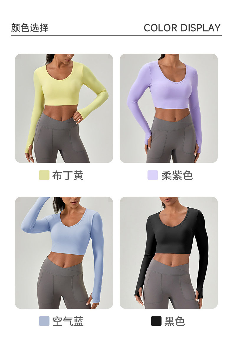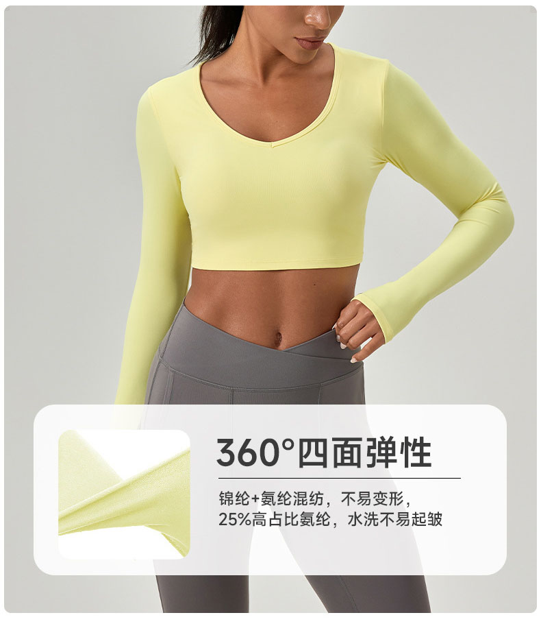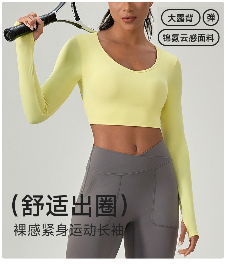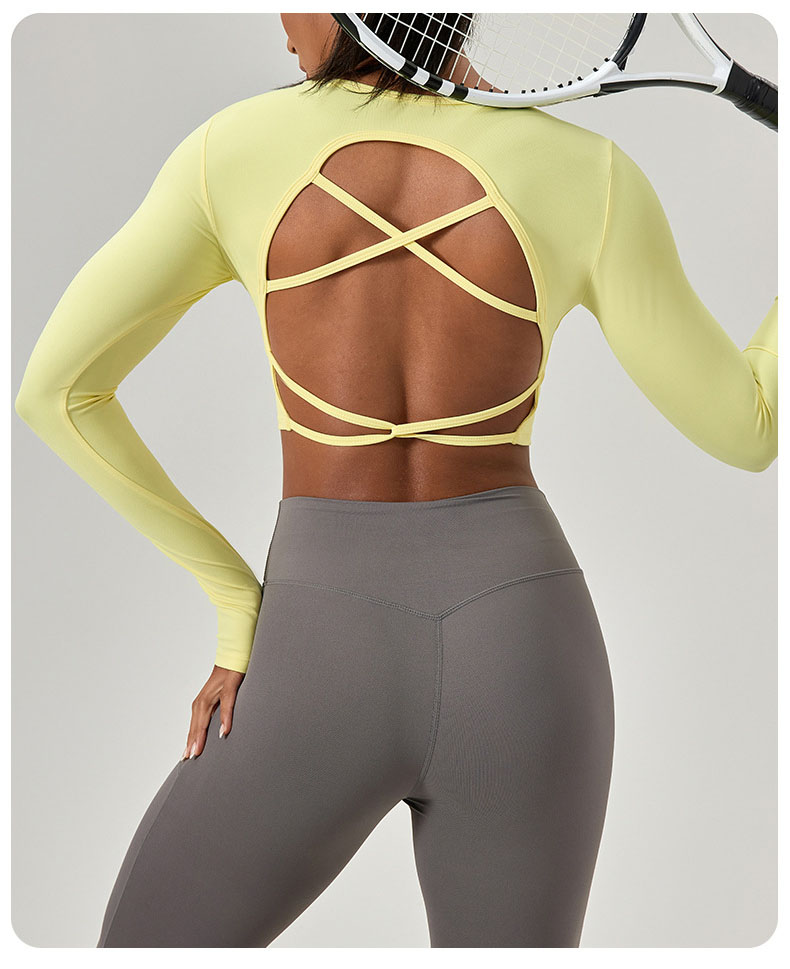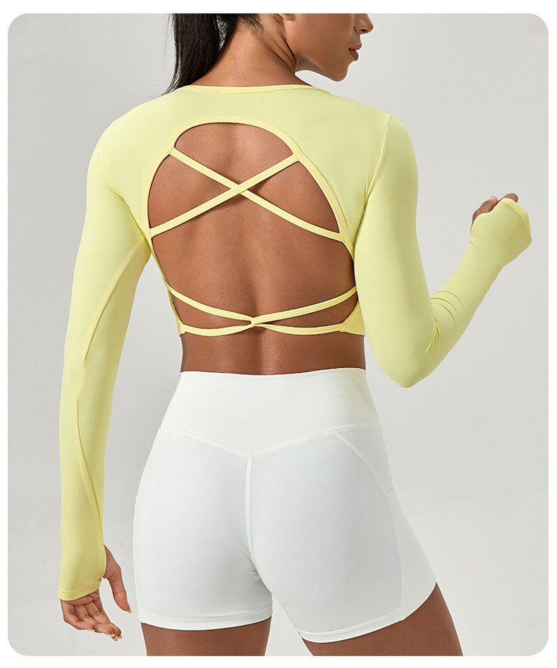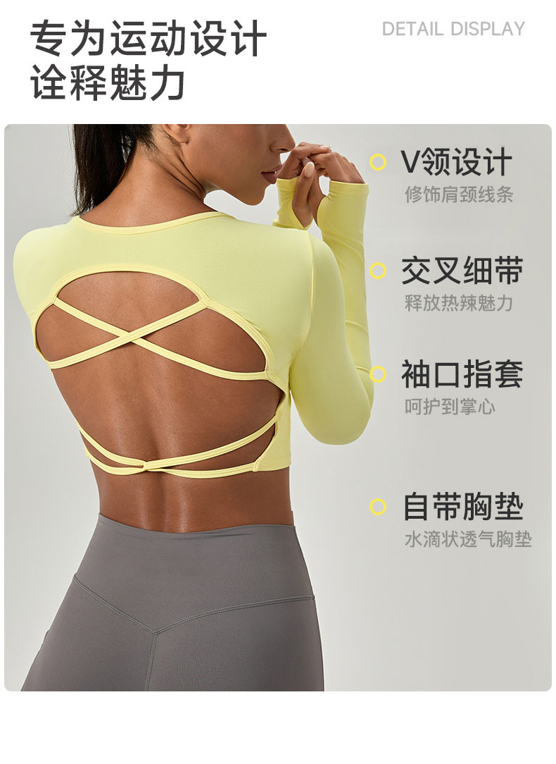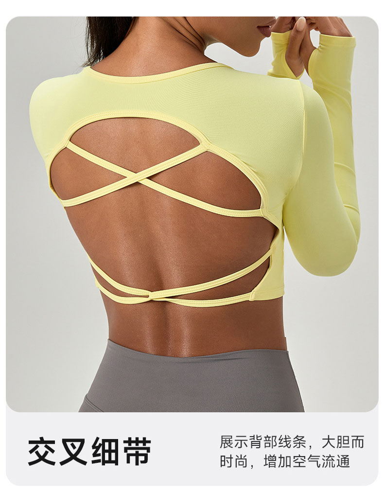 跃牌【欲动春风】系列 紧身长袖瑜伽服带胸垫交叉美背运动上衣52560