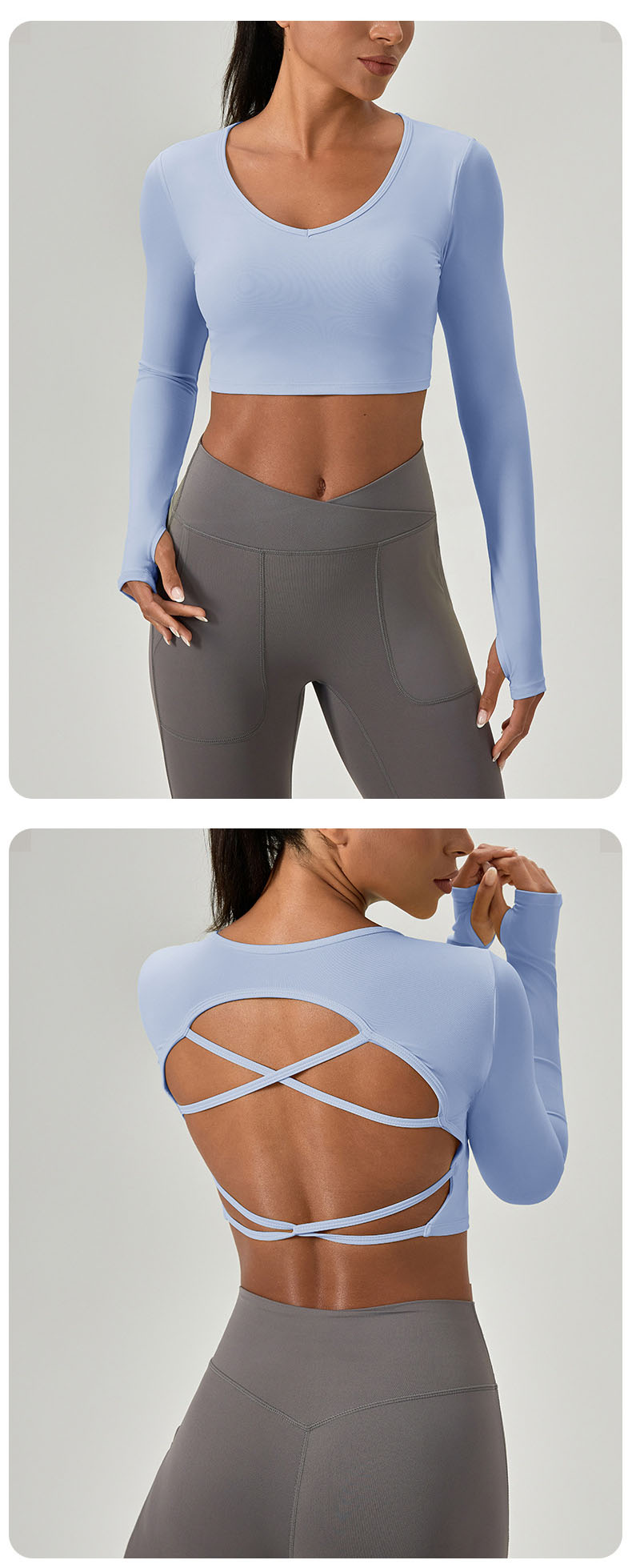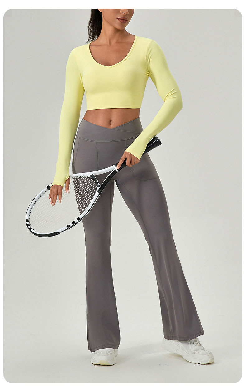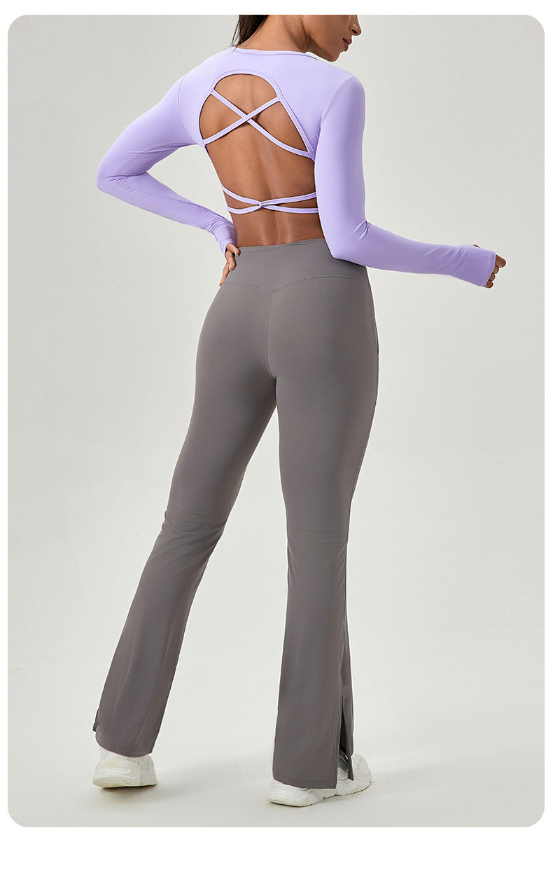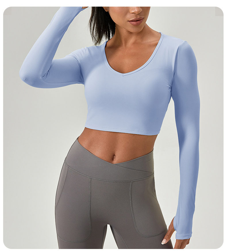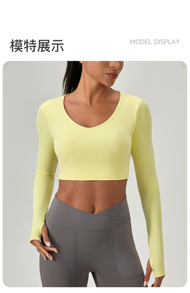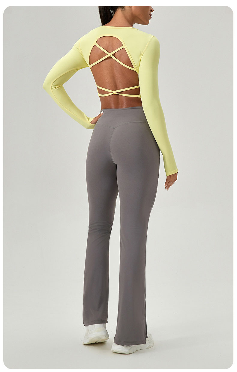 跃牌【欲动春风】系列 紧身长袖瑜伽服带胸垫交叉美背运动上衣52560