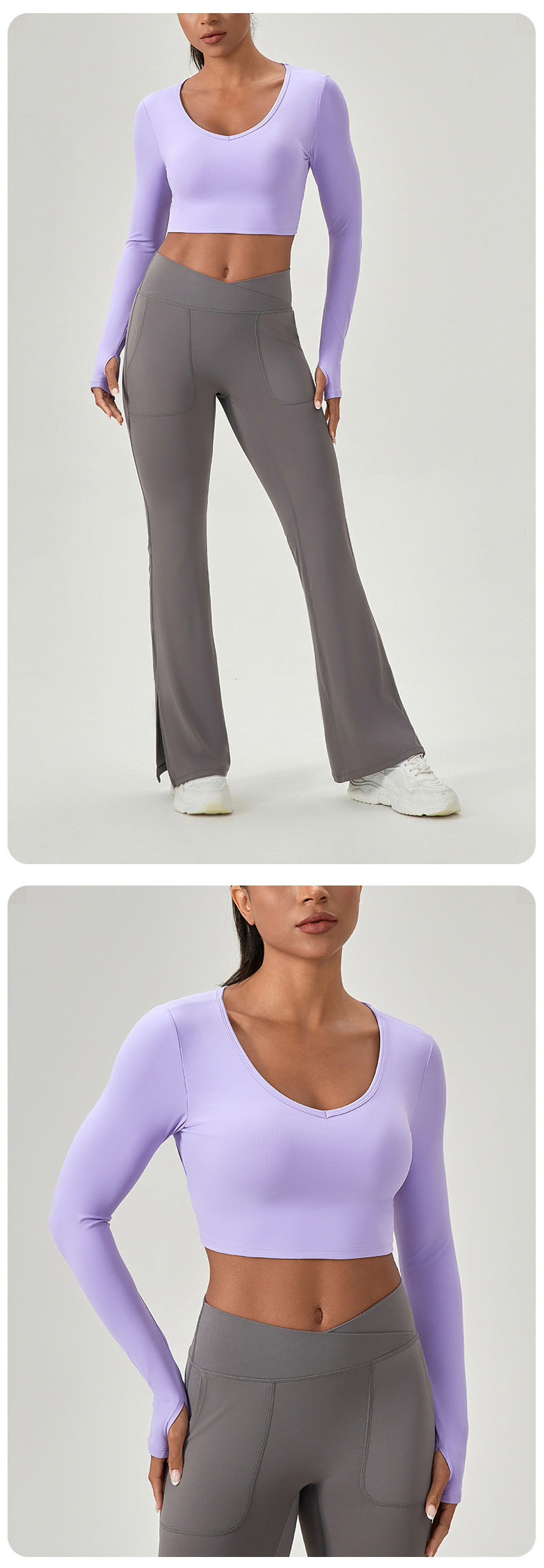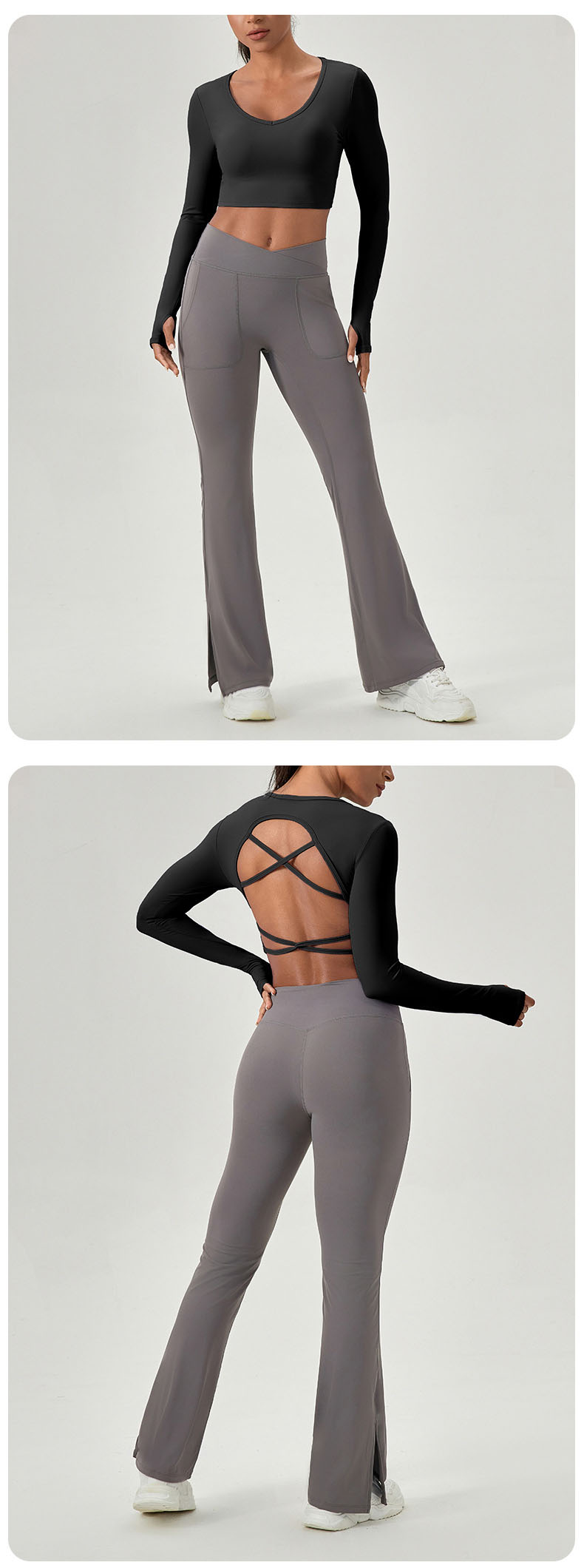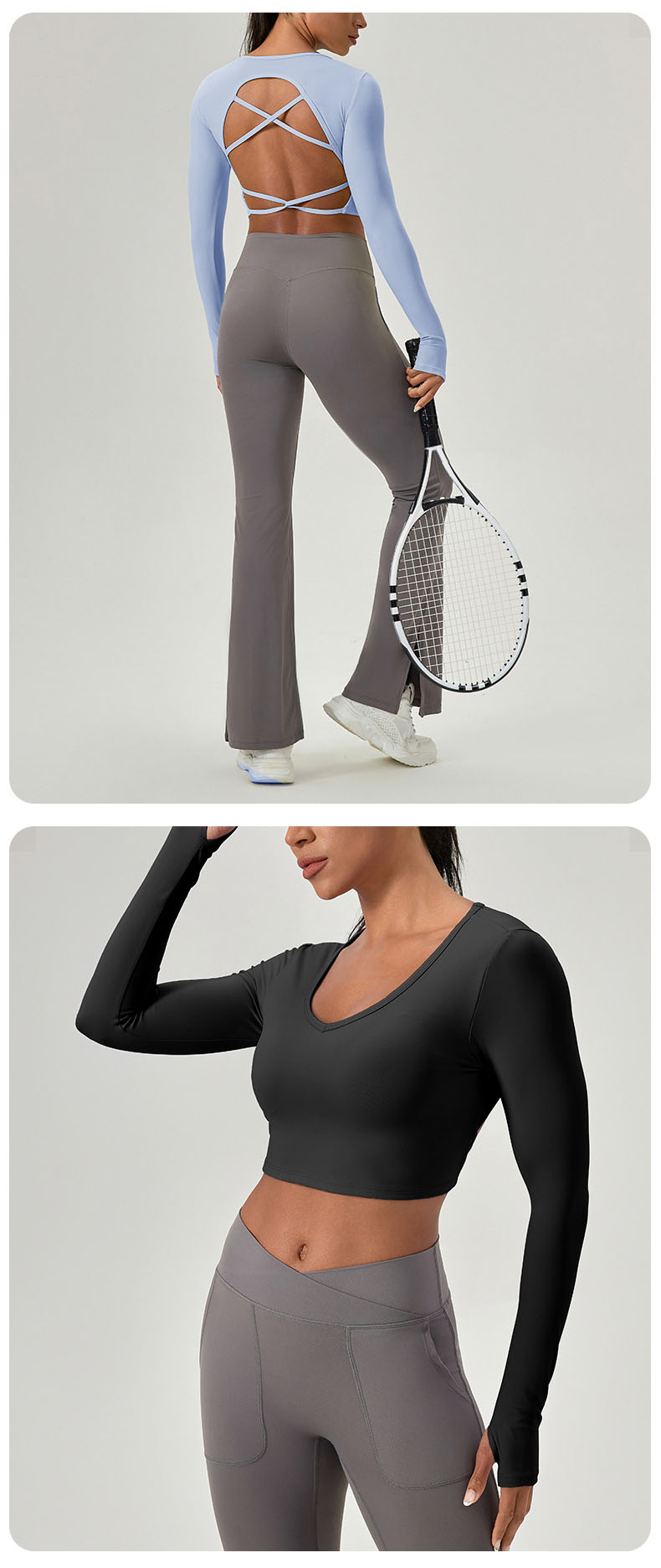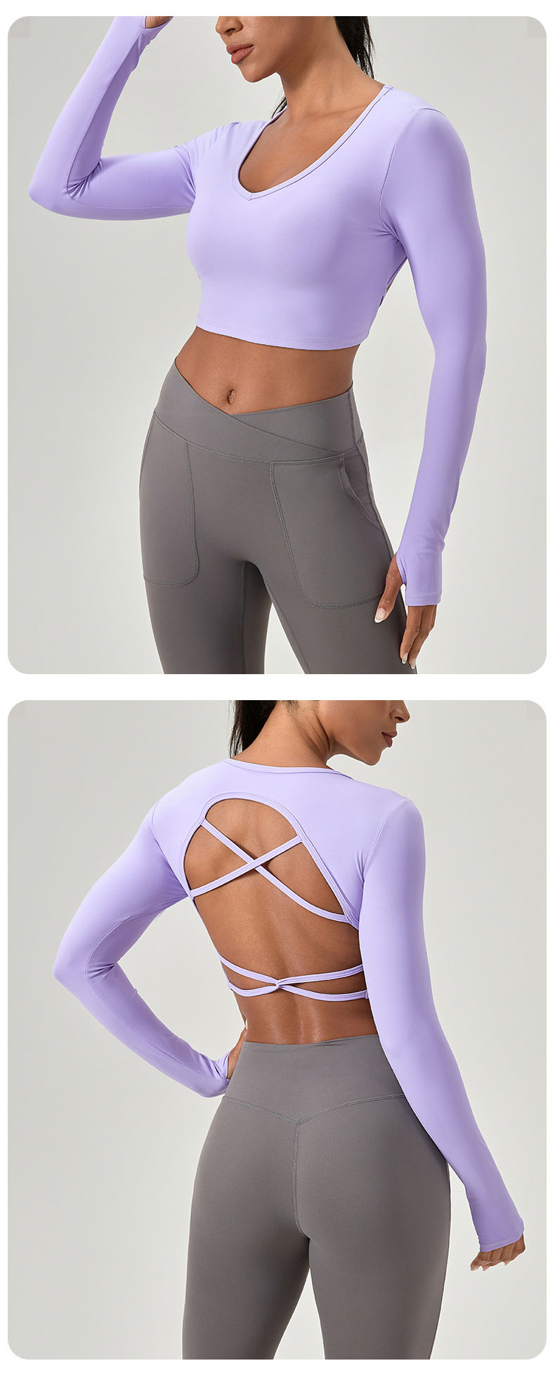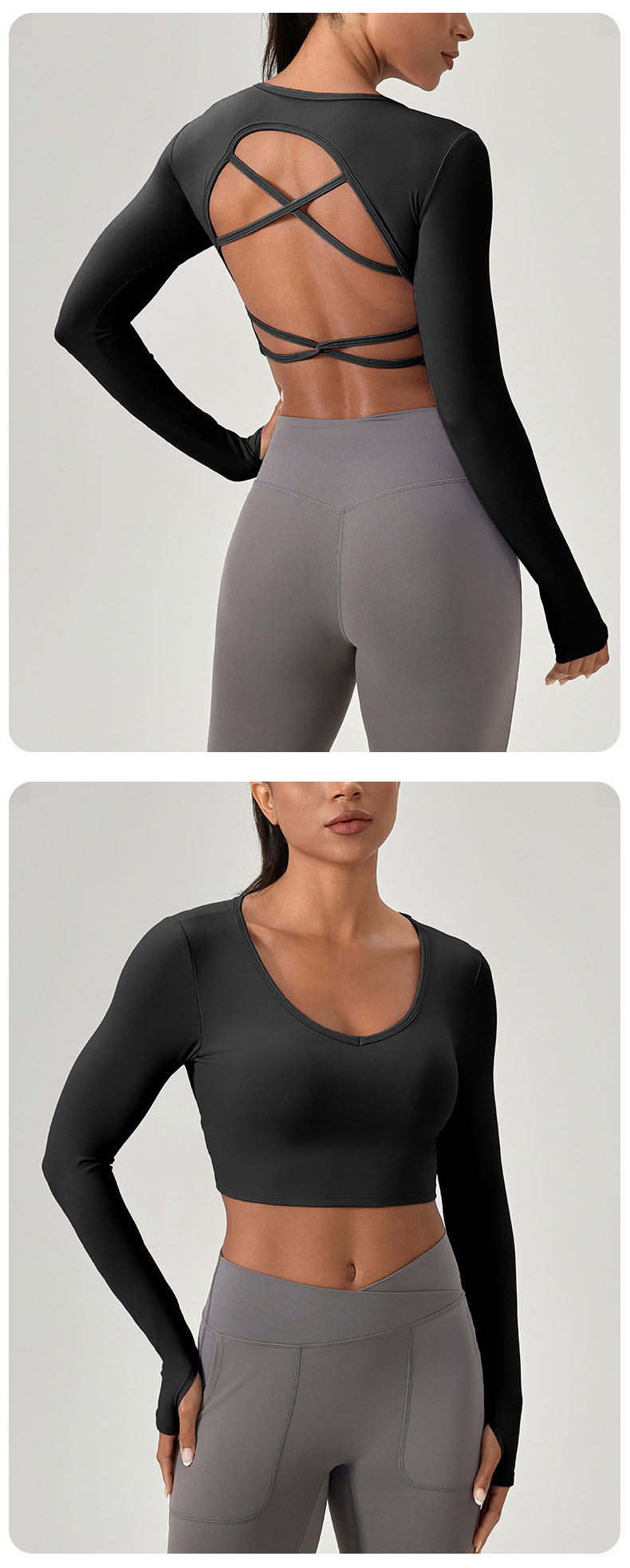 跃牌【欲动春风】系列 紧身长袖瑜伽服带胸垫交叉美背运动上衣52560