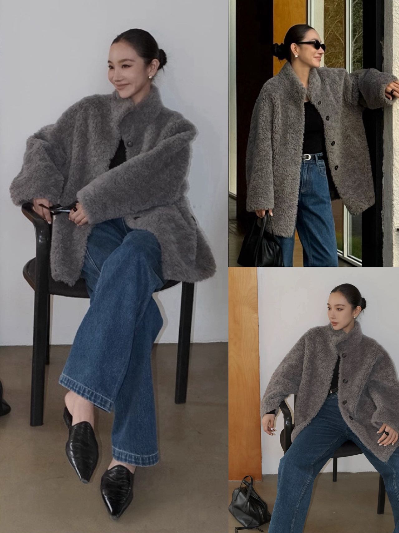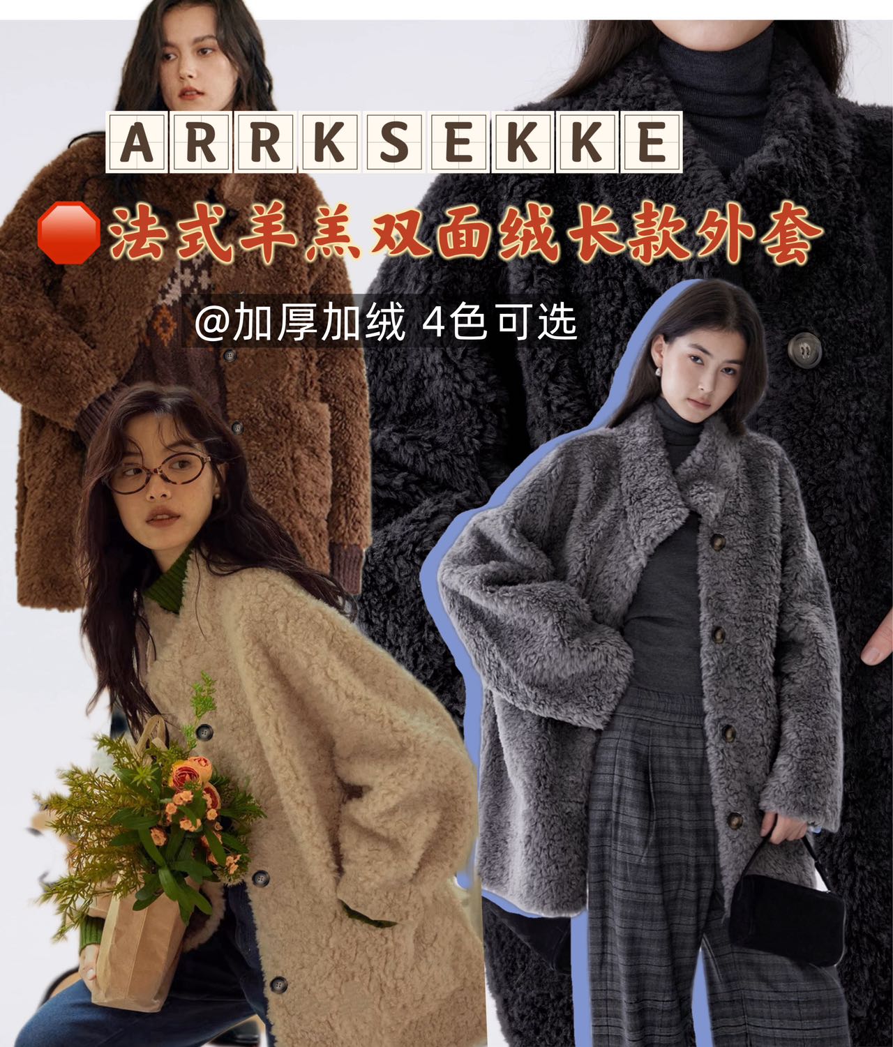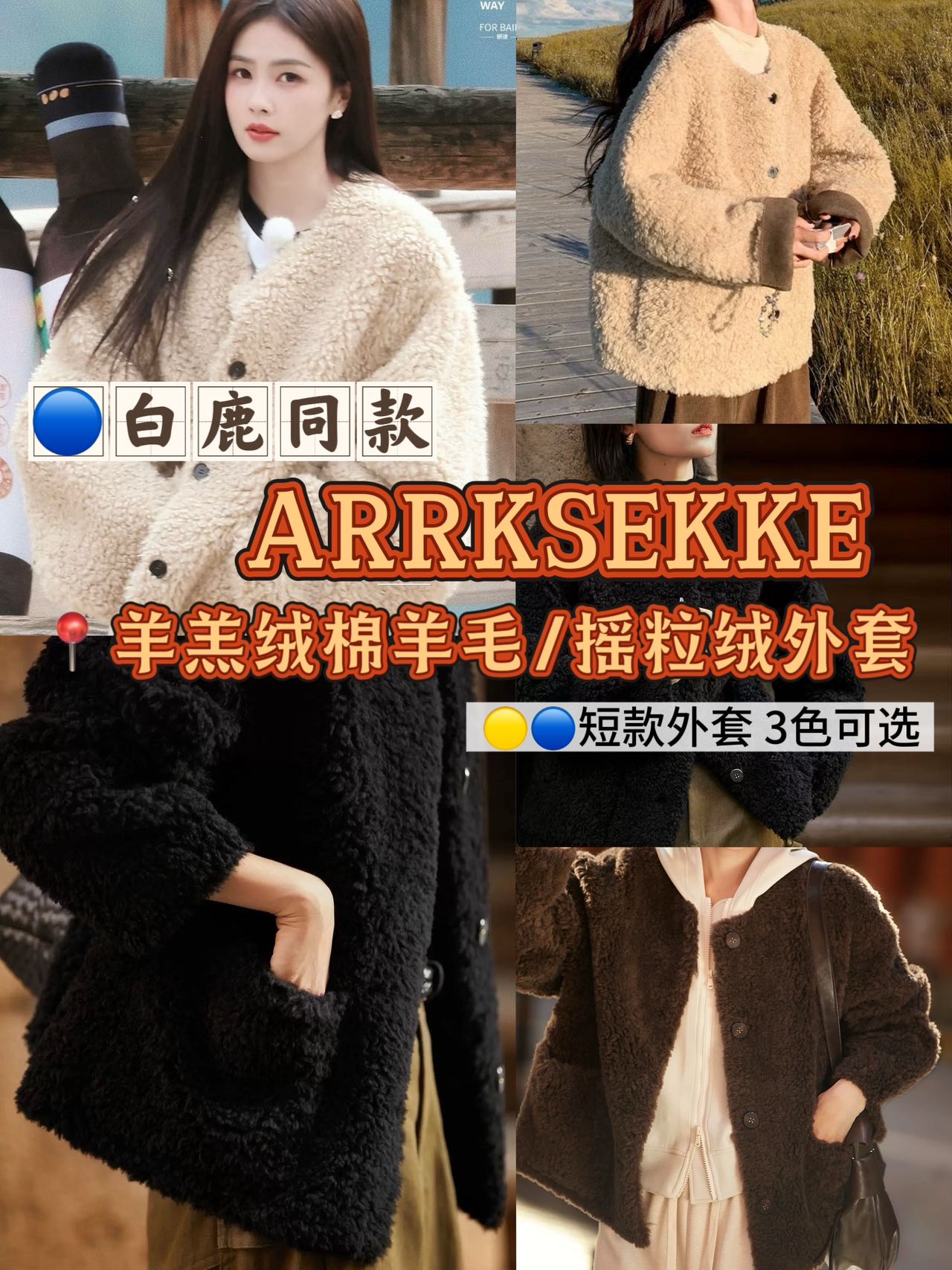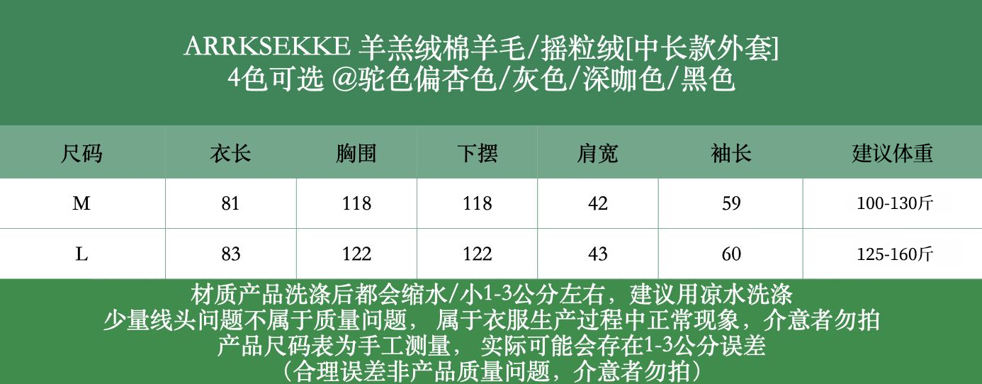 品名:ARRKSEKKE明星同款棉羊毛羊羔绒摇粒绒双层短款外套3色/中长款外套4色
