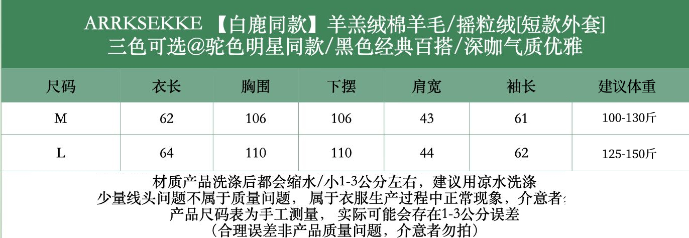限时赠送袜子两双【ARRKSEKKE 白鹿同款羊羔绒短款外套&羊羔绒羊棉毛中长款外套】棉羊毛/里衣摇粒绒外套短款&长款 时尚3色‼160斤也可穿保暖程度可抵一件羽绒服~