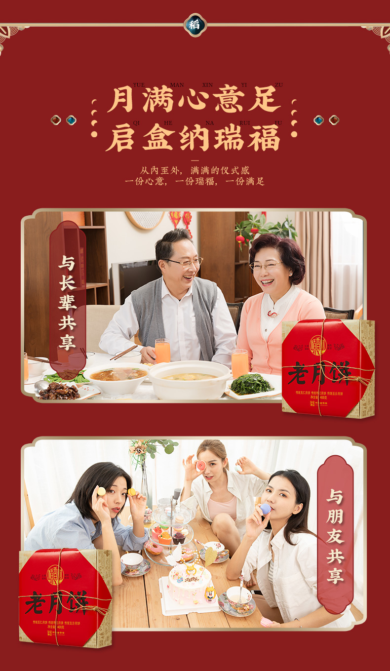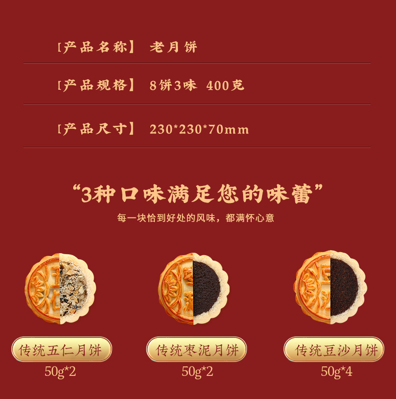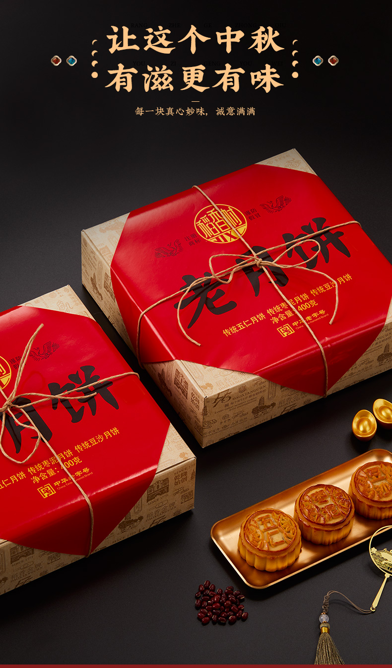 【稻香村月饼礼盒】老式五仁枣泥豆沙味中秋糕点 传统老月饼 400g