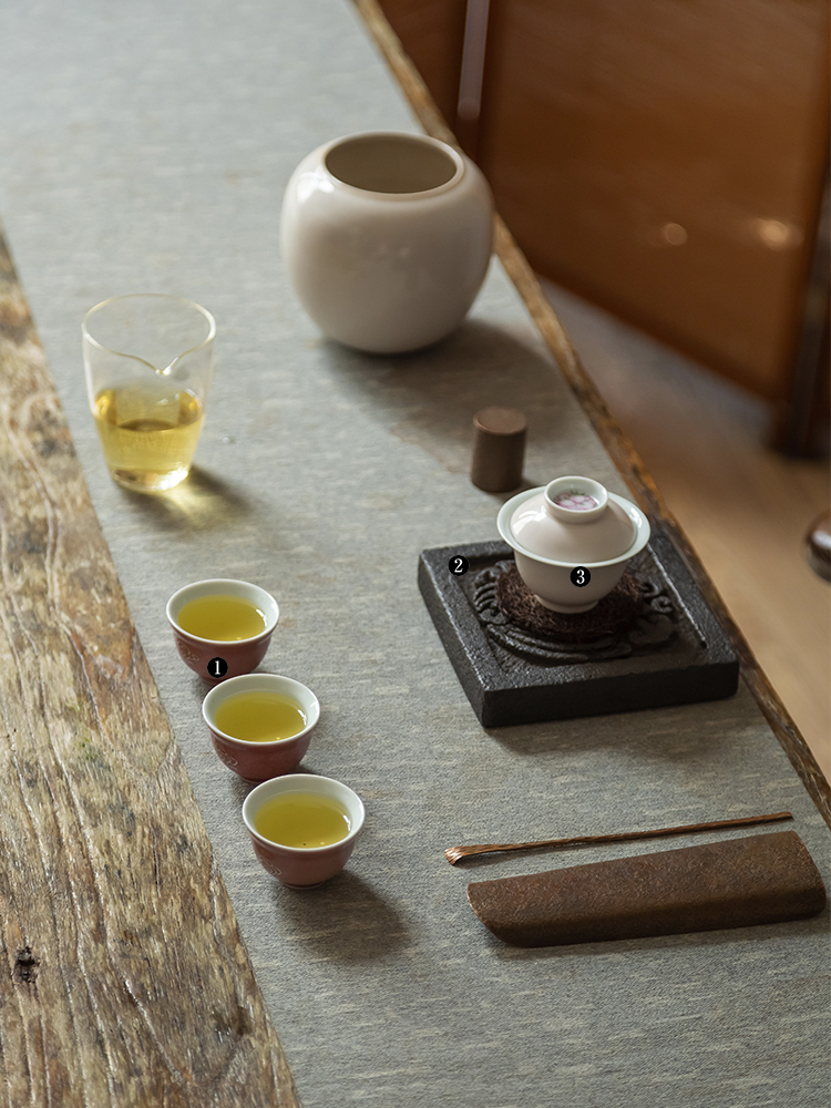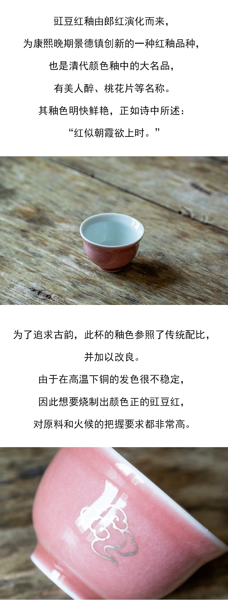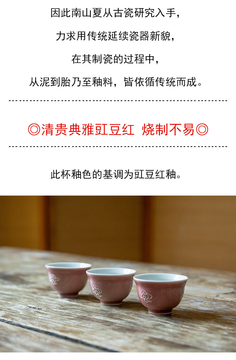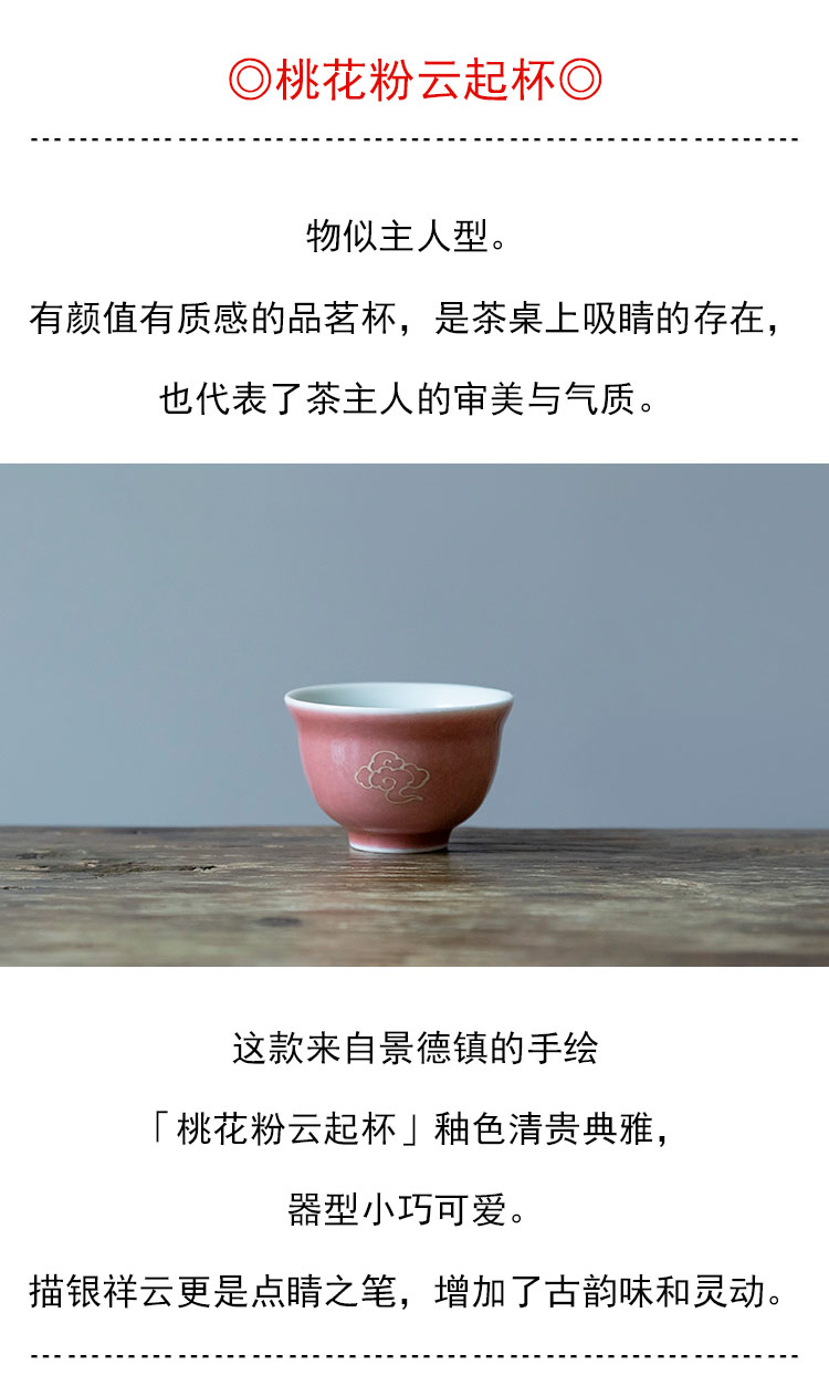 茶香记 桃花粉云起杯40ml釉色别致景德镇手工手绘描银陶瓷茶杯