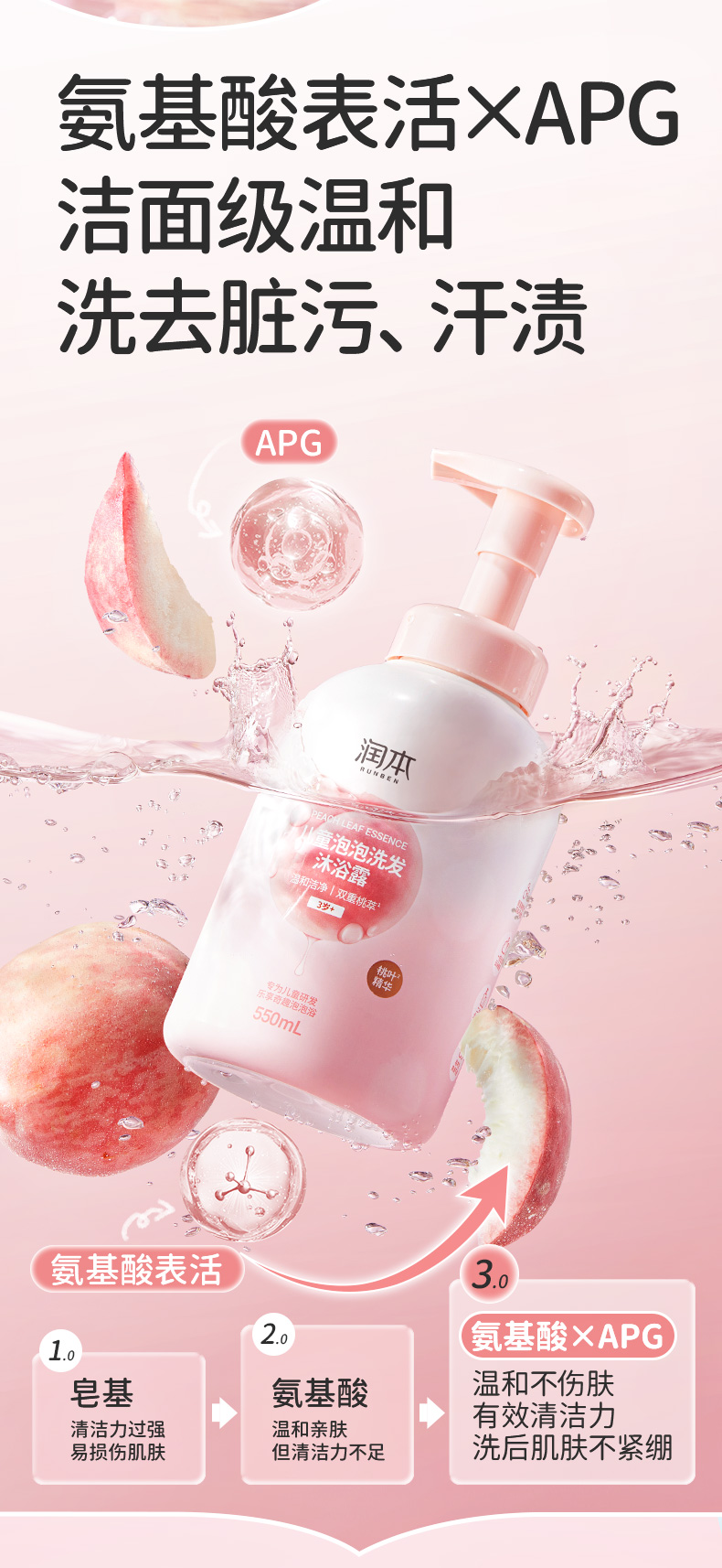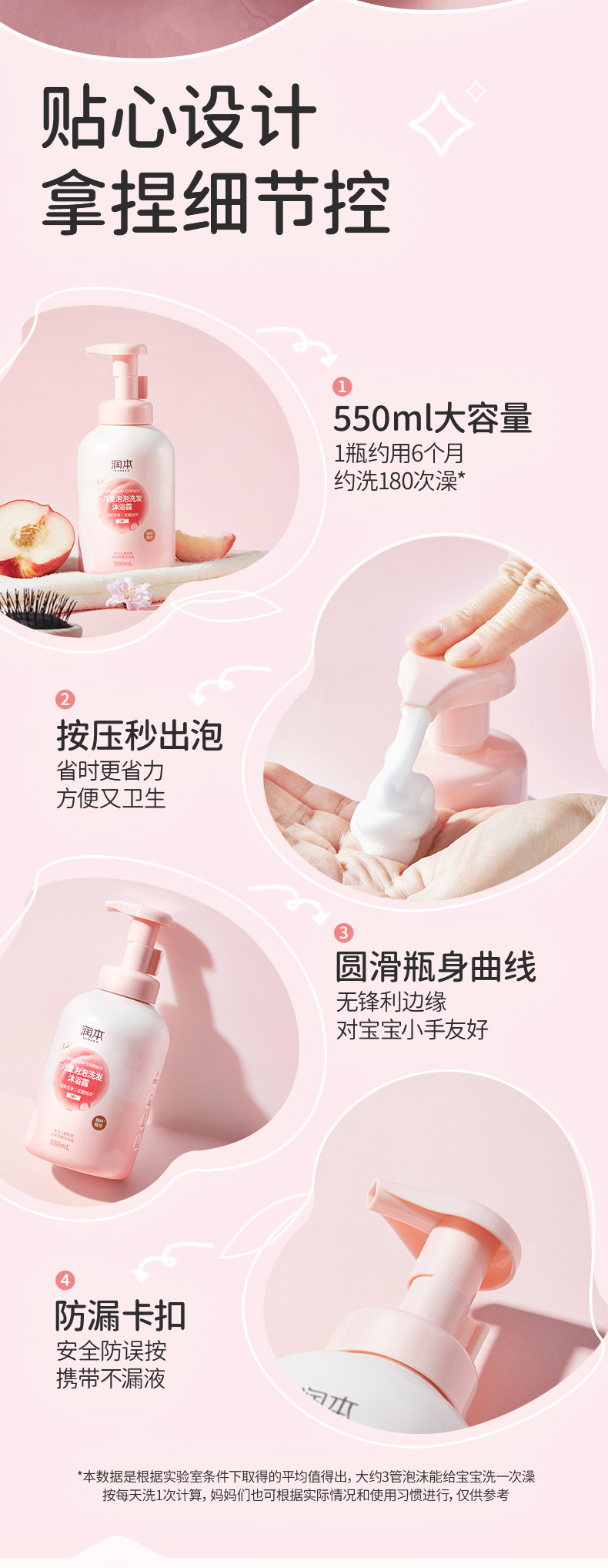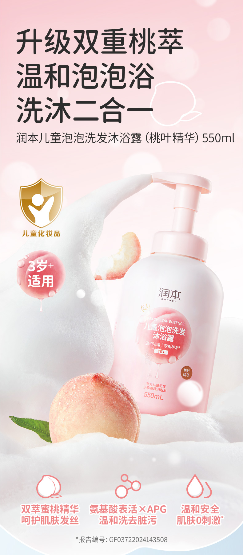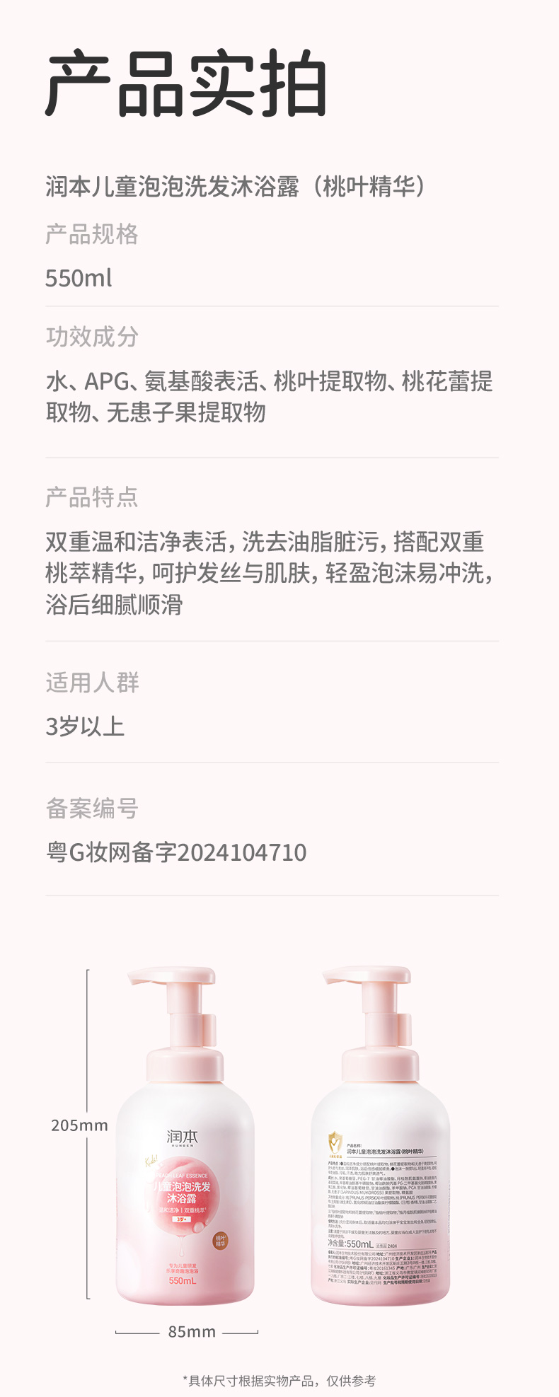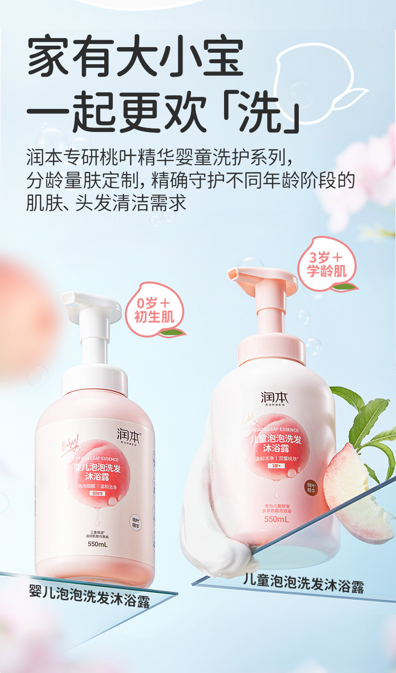 【品牌直发】润本儿童沐浴露洗发水二合一 桃叶精华沐浴露 0岁+ 3岁+可选 婴幼儿宝宝泡泡浴婴儿女童男童泡沫型