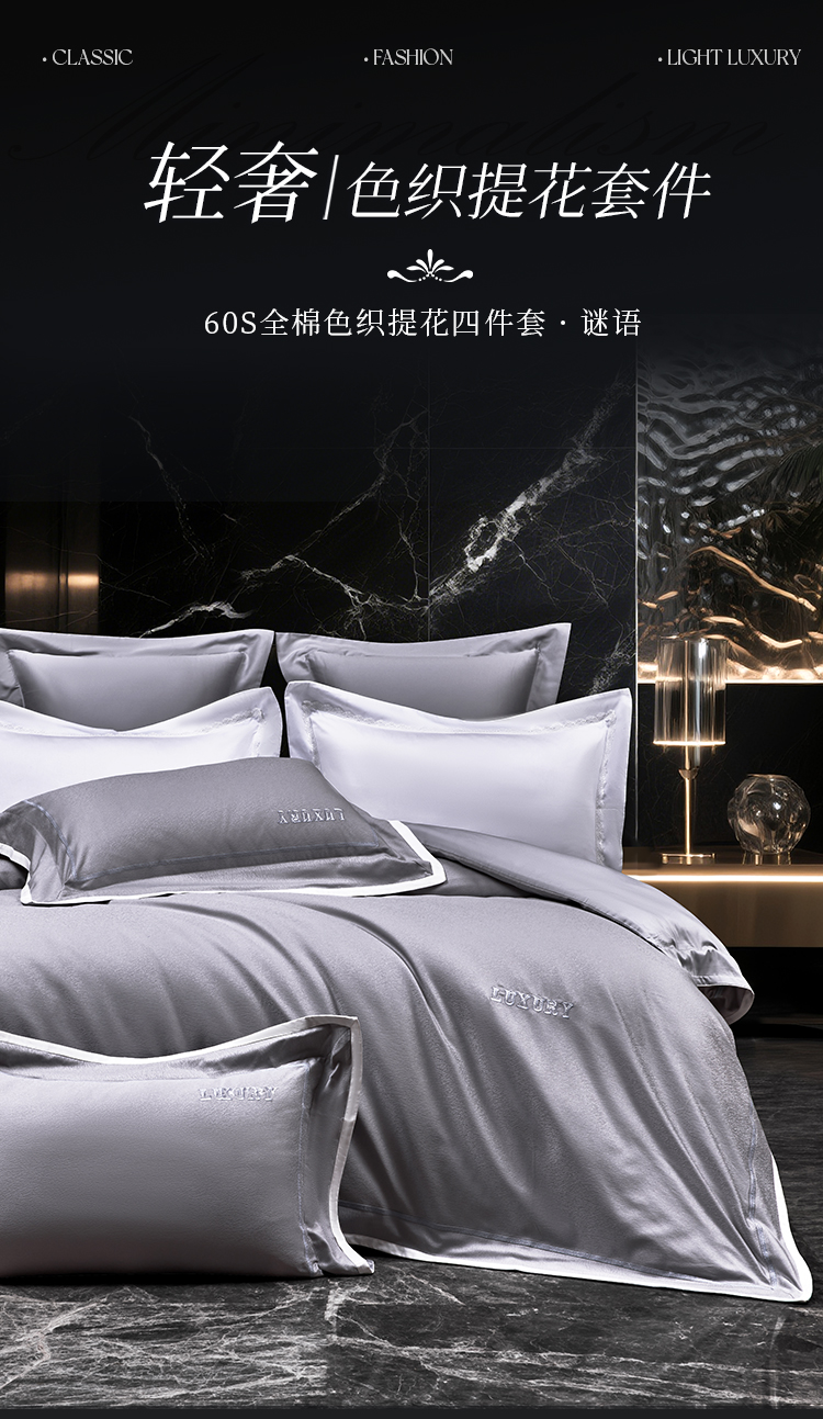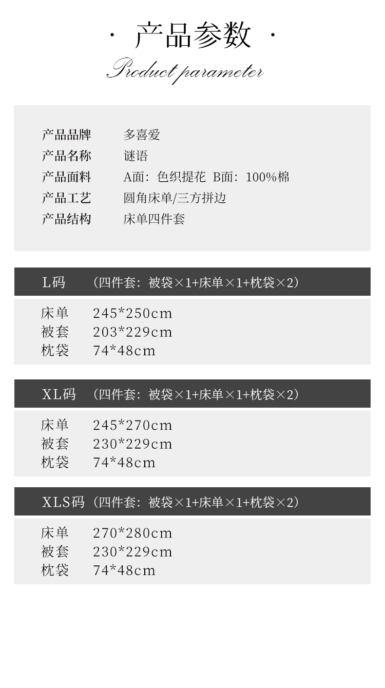 多喜爱 60S全棉色织提花四件套 谜语 【60S长绒棉】 【礼箱包装】【三方拼边设计】【宽边枕袋】轻奢品质 柔润丝光 质感柔滑 莹亮光泽 花型立体