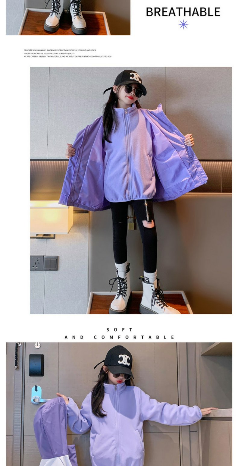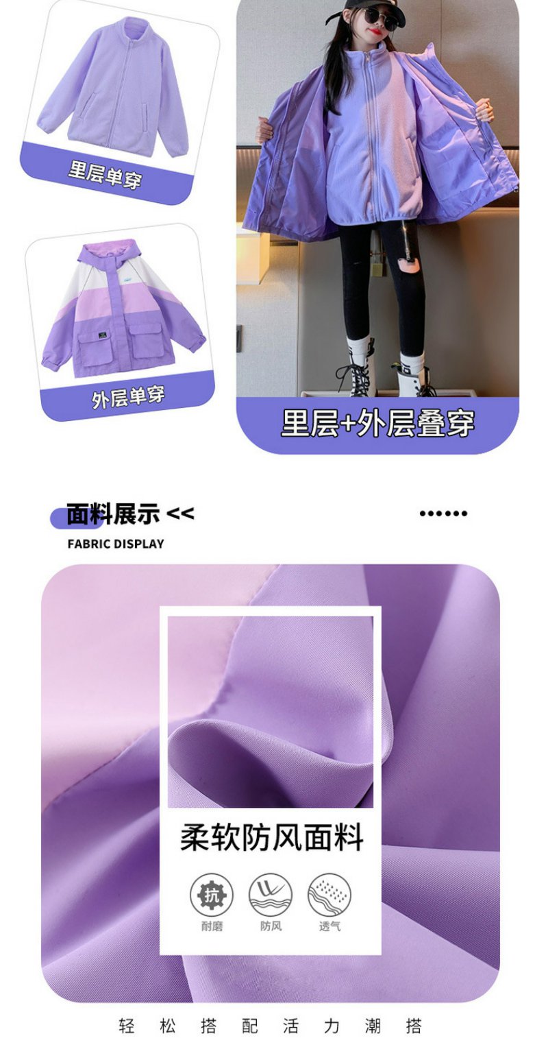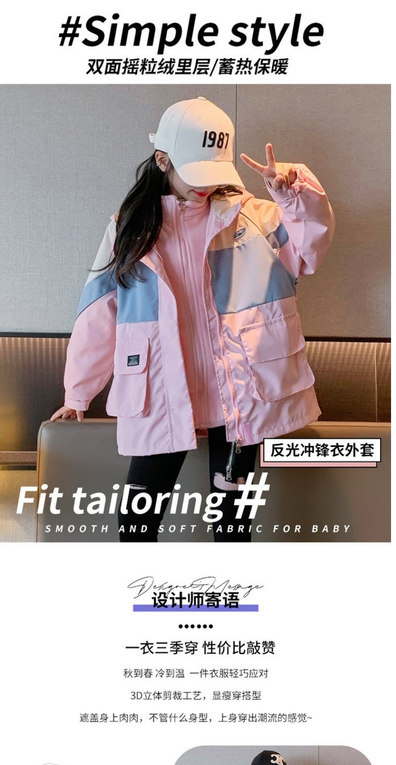 TZF-女童冲锋衣三合一可拆卸加厚外套中大童卡通洋气风衣儿童户外夹克