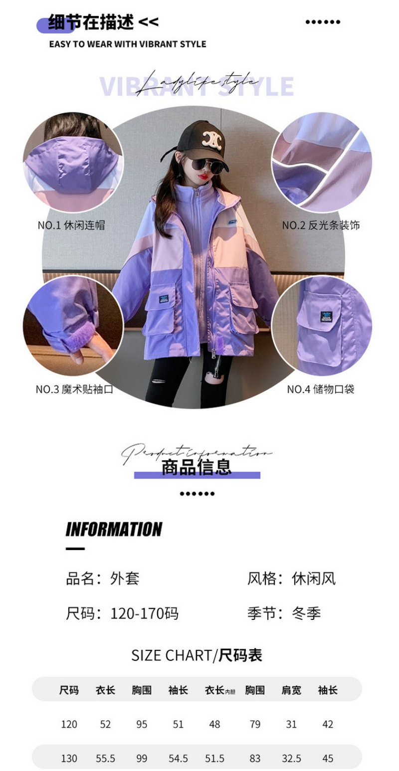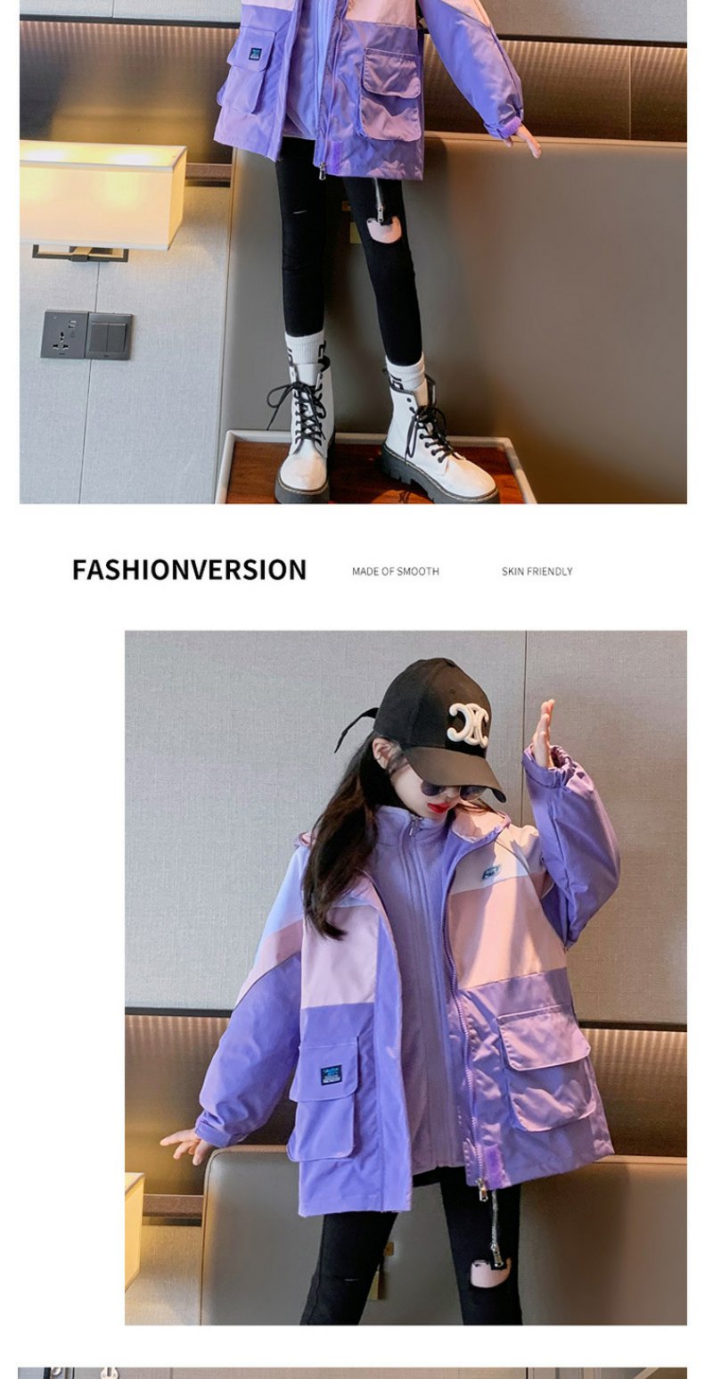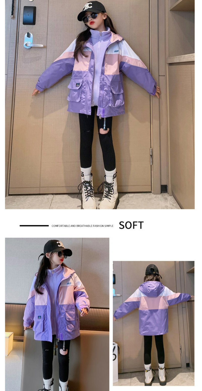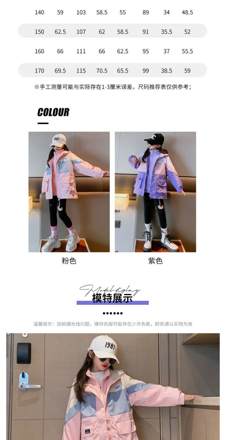 TZF-女童冲锋衣三合一可拆卸加厚外套中大童卡通洋气风衣儿童户外夹克