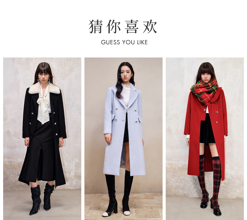 MAXRIENY极简复古通勤感大衣长款新年穿搭双面呢羊毛外套女澳毛(货号:MS88JA790)