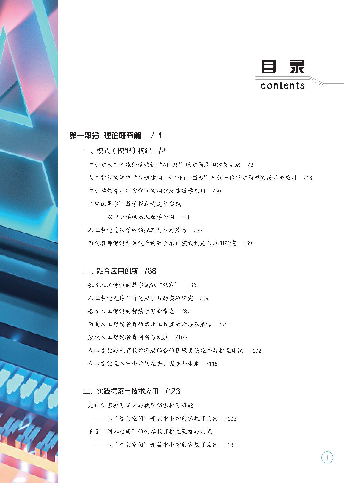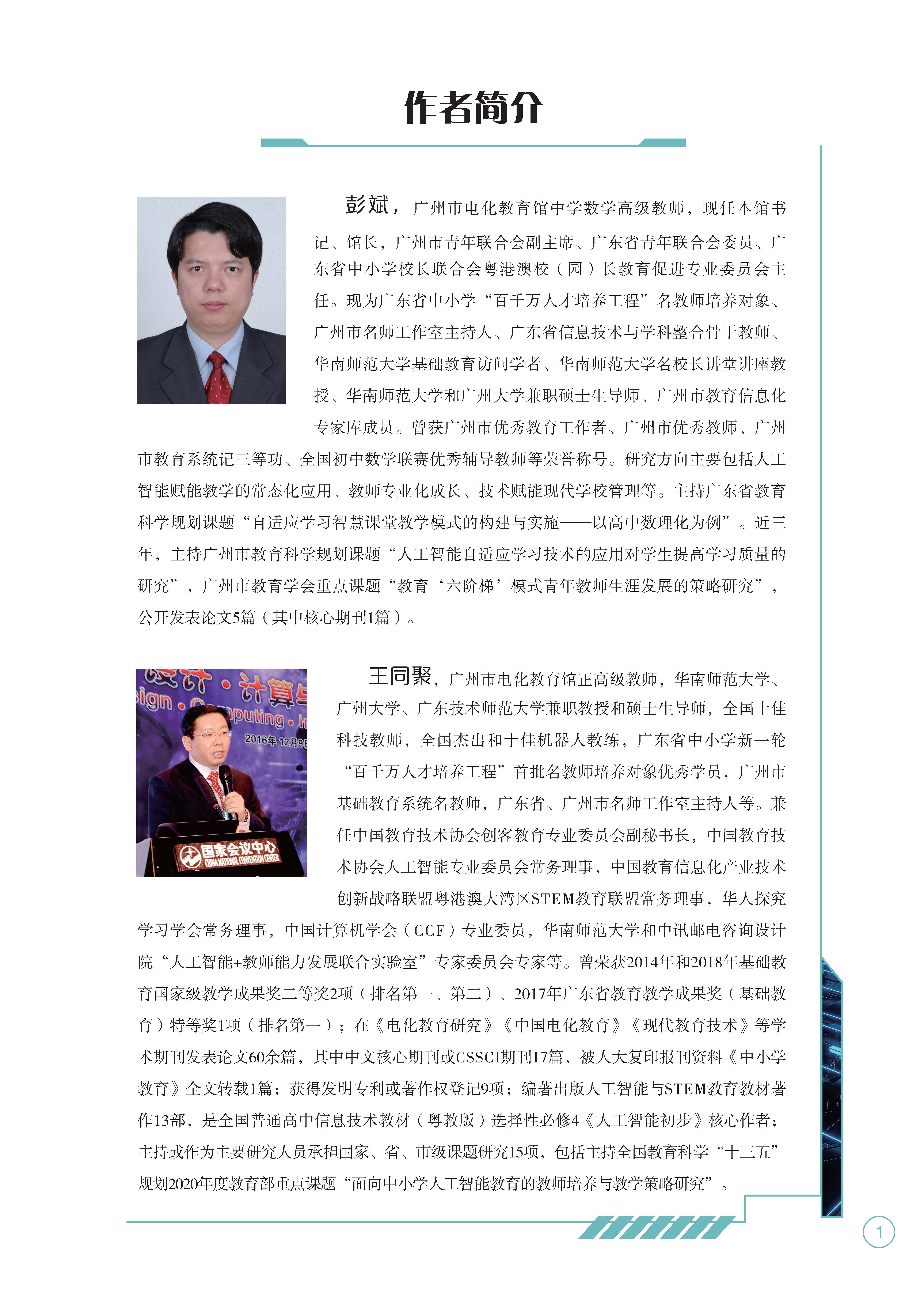 本书由理论研究篇、区域应用篇和学校应用篇共三部分组成,旨在探讨如何更好地将人工智能应用于教育教学中,以提升教育教学的质量。其中,理论研究篇主要从人工智能在教育教学中的模式(模型)、融合应用创新、实践探索、技术应用和研究热点追踪等内容进行研究和探索。区域应用篇主要从区域层面展示了广州市各区开展人工智能与教育教学深度融合的创新应用情况。学校应用篇主要从学校应用层面展示了各学校开展人工智能与教育教学深度融合的创新应用成效。