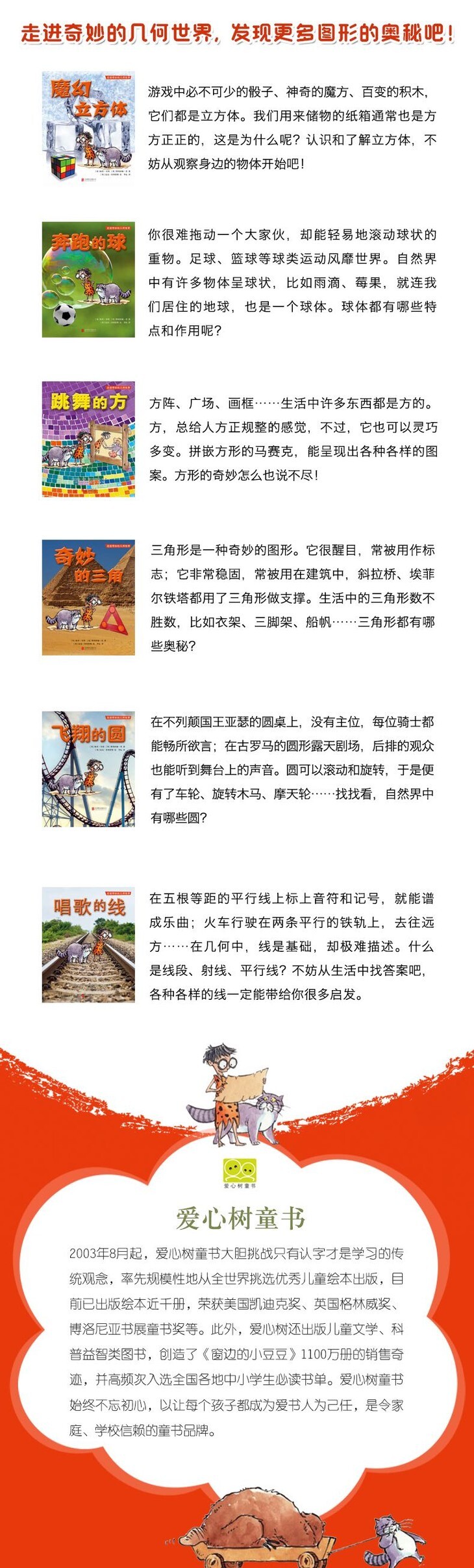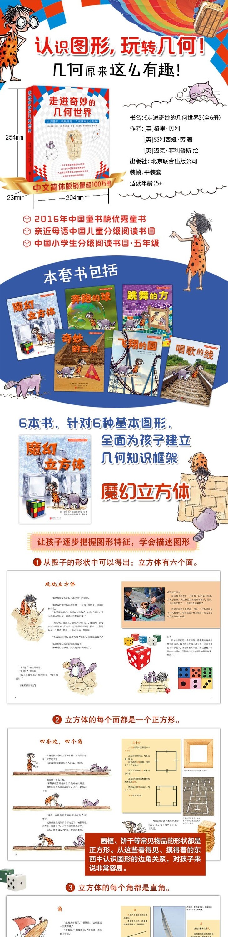 爬山时山洞冒险,聚会时要配食物,还有掷骰子,跳房子……《走进奇妙的几何世界》中讲述的是每个孩子都可能感同身受的生活故事,孩子们在被两个主人公耍宝卖萌逗笑时,不知不觉地就上了一堂堂几何课。