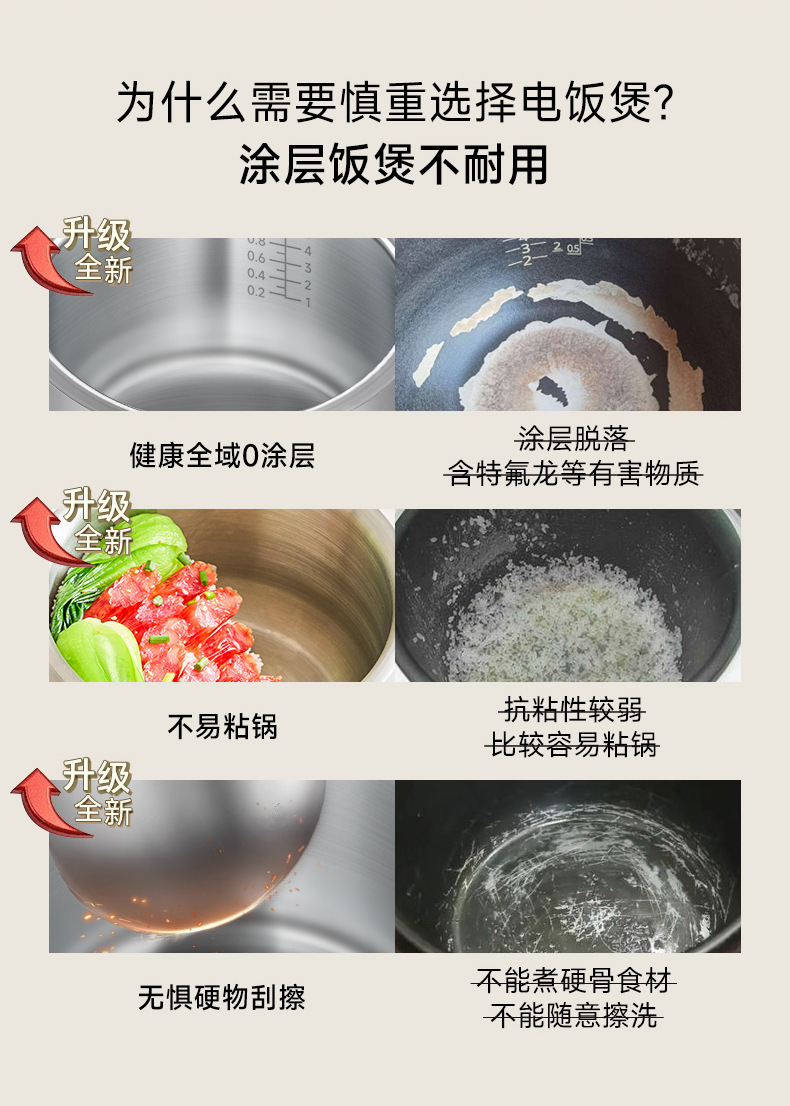 【20+分钟快煮好饭,即煮即吃不耽搁】家用多功能小型0涂层电饭煲 不锈钢3-4人迷你煮饭锅 家用2-3人电饭煲-QQ