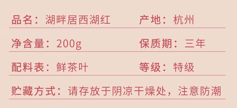 湖畔居西湖红茶双罐正宗特级西湖红杭州特产龙井所制工夫红茶叶