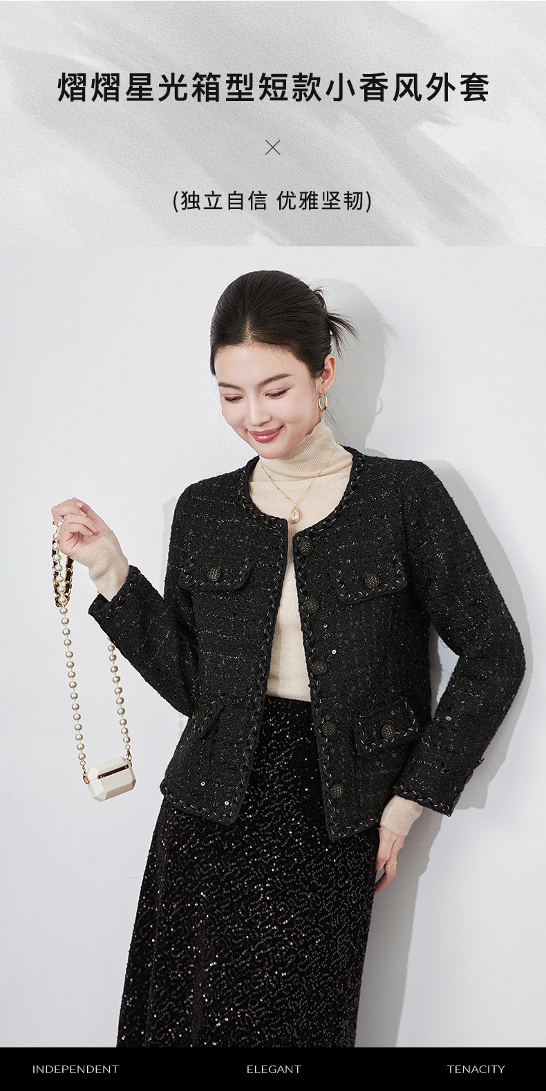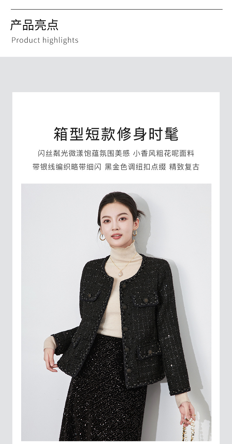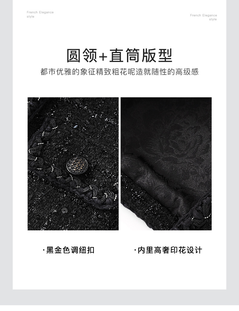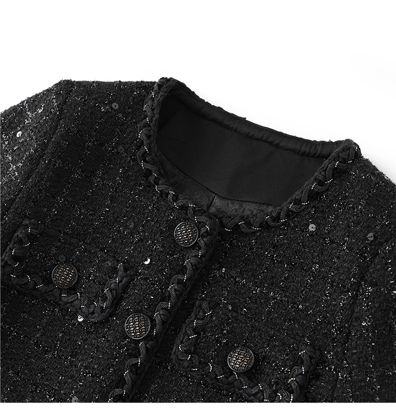 【高货wl】全新升级【铂金会员367/天猫499/差价132】(12149) 洛诗琳秋冬编织花边格子扣圆领小香风外套经典箱型短外套