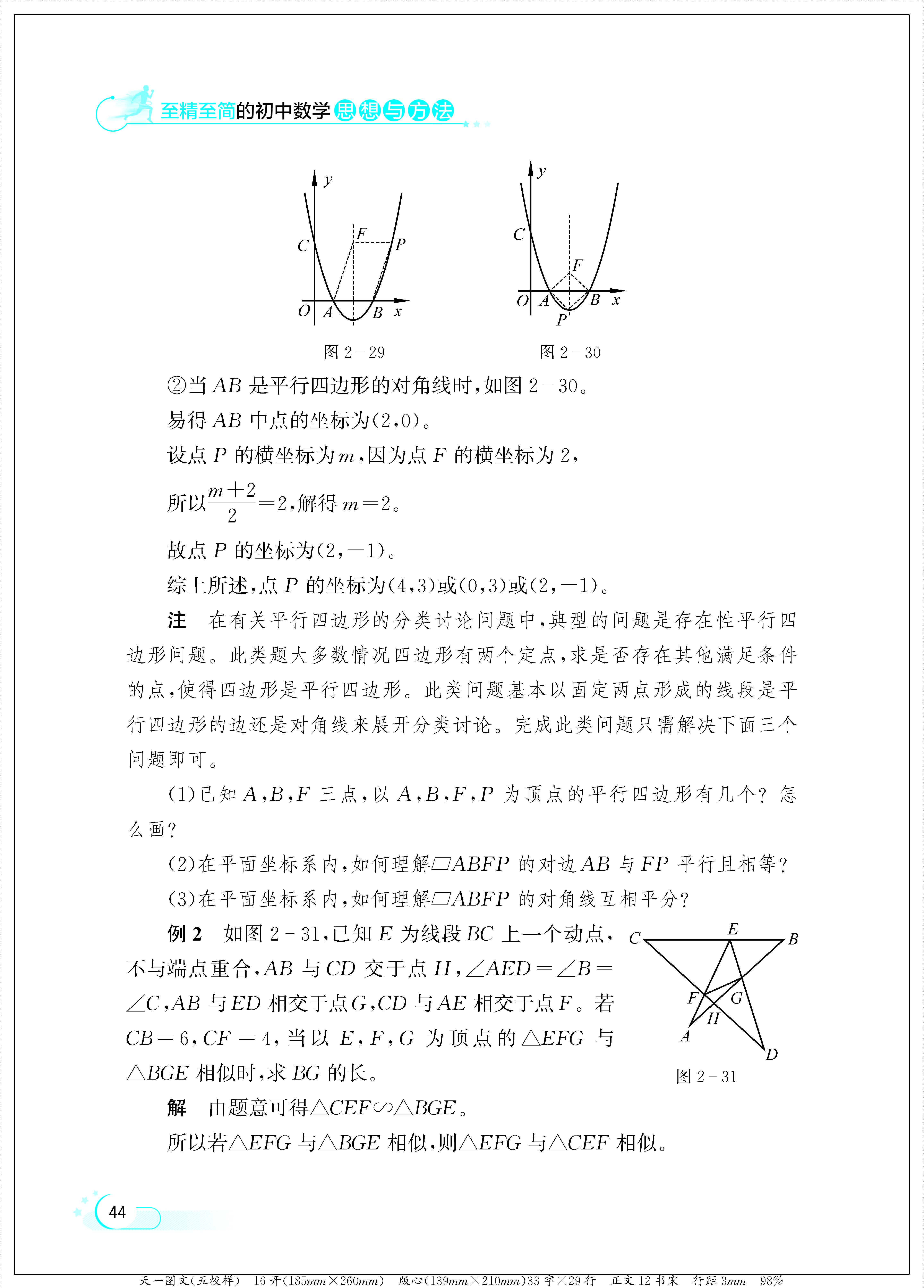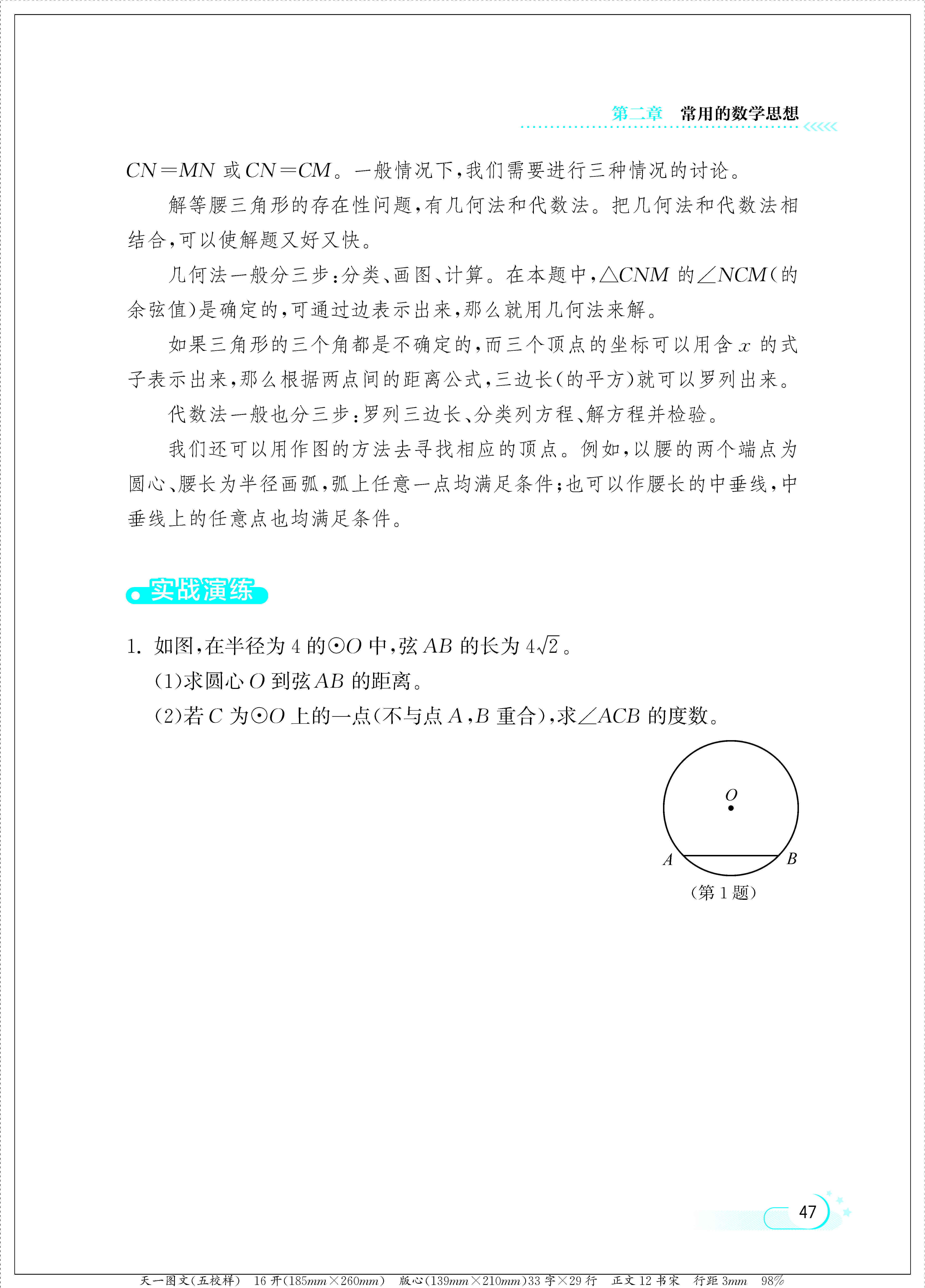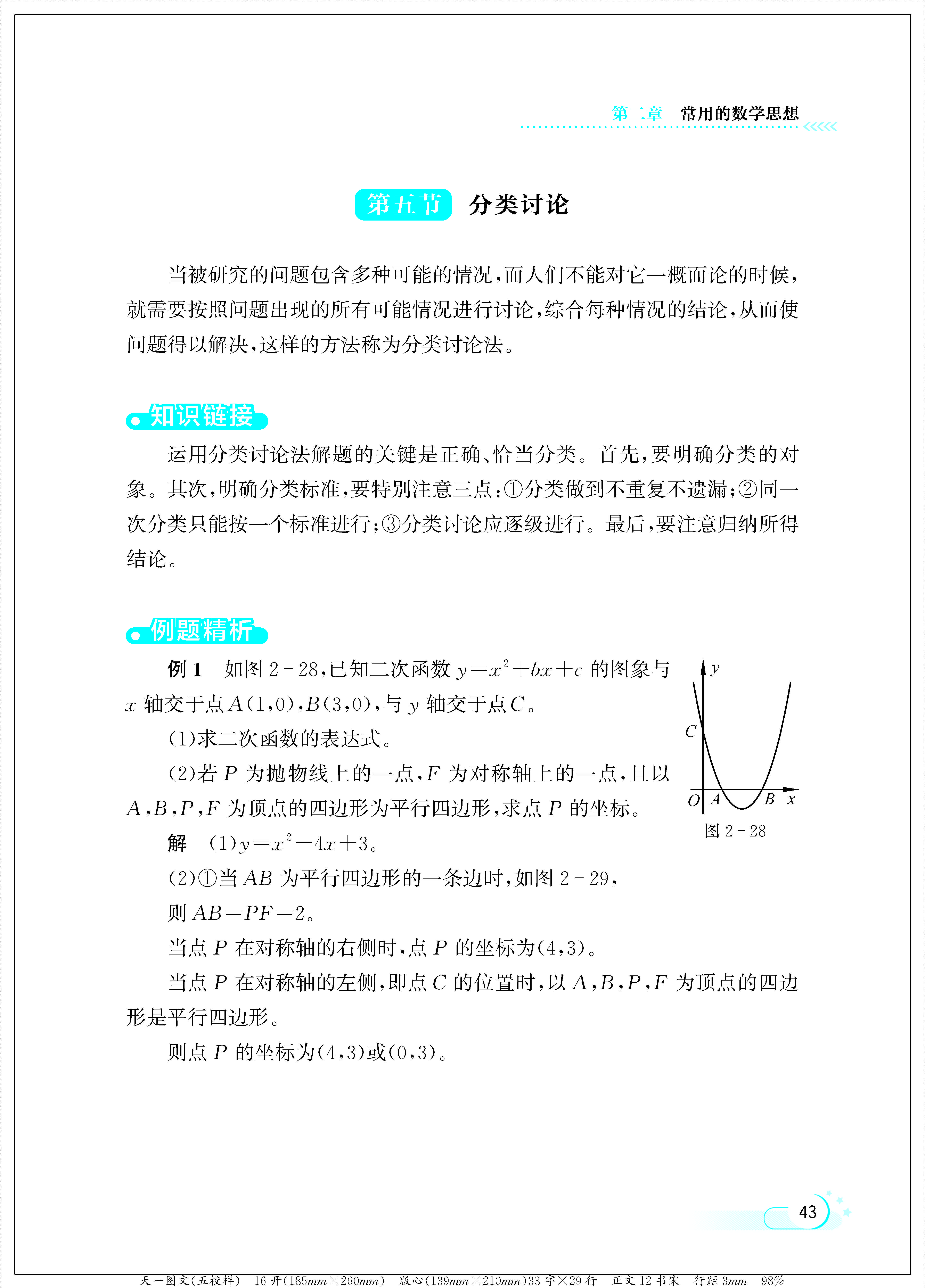 每节设置知识链接、例题精析、实战演练三个栏目,知识链接简要介绍知识脉络;例题精析详细给出例题的解答过程,并对题目涉及的思想方法加以说明,让学生能够举一反三;实战演练给学生配备适量练习题,并配有参考答案,让学生巩固所学知识,自主学习,查漏补缺。栏目设置简单明了,旨在让学生用最少的时间高效掌握初中数学常用的数学思想和方法,轻松应对初中数学的学习。同时,本书也可作为教师日常教学的参考用书,帮助教师更好地进行初中数学教学。
