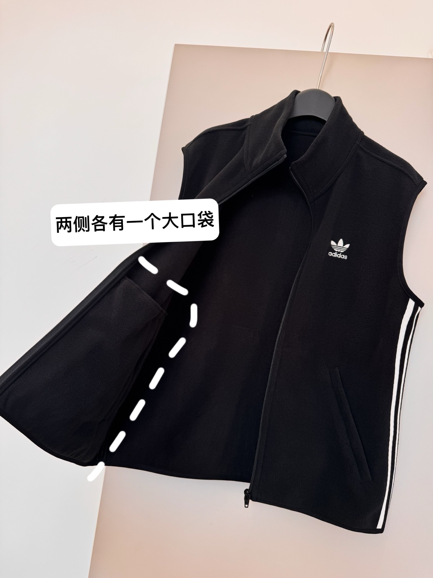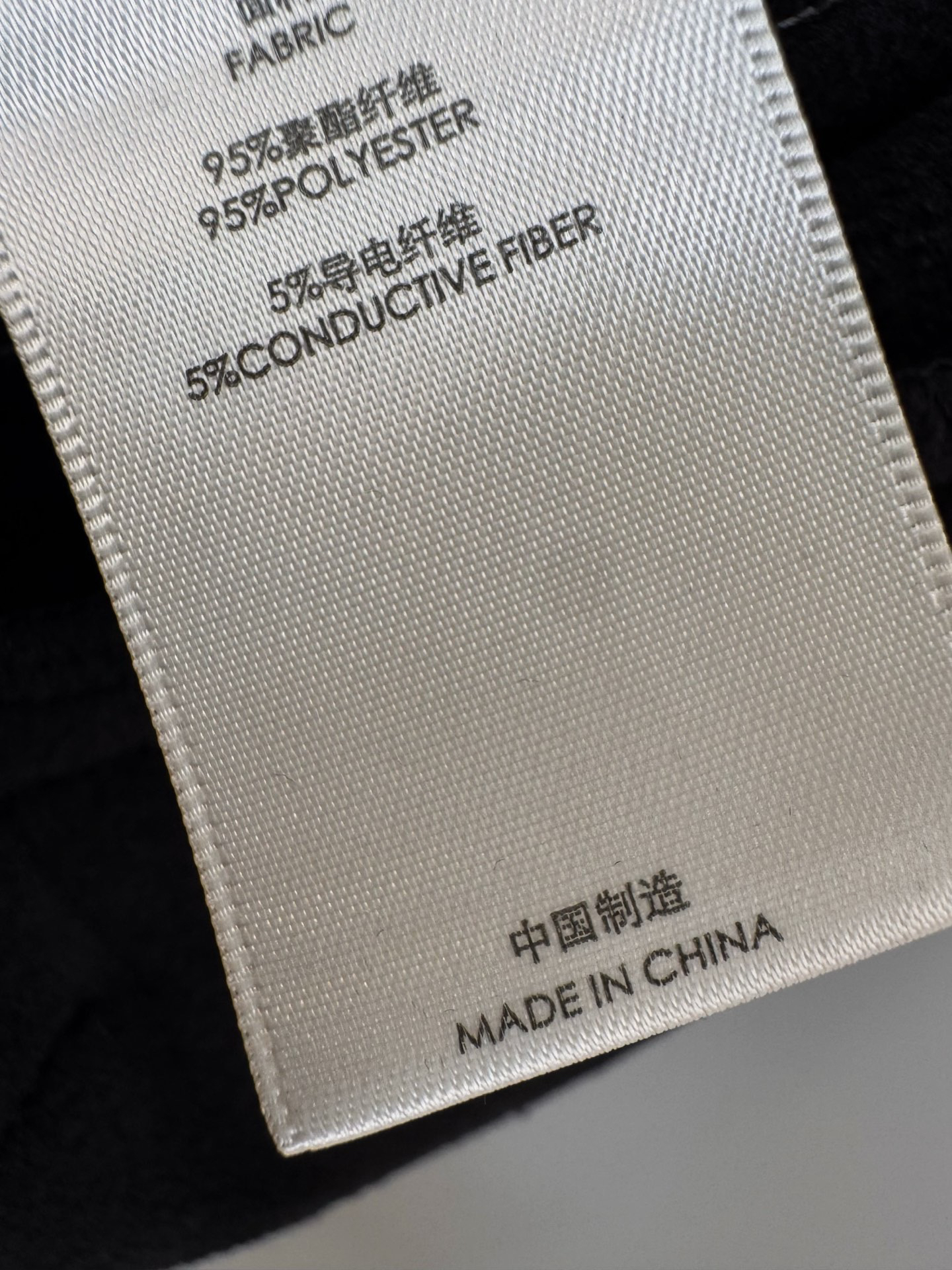 细节图参考。含有百分之五导电丝。这款马甲的面料属于中高端功能性面料,结合导电丝和优质绒面的特性,成本要比普通绒面面料高很多,
