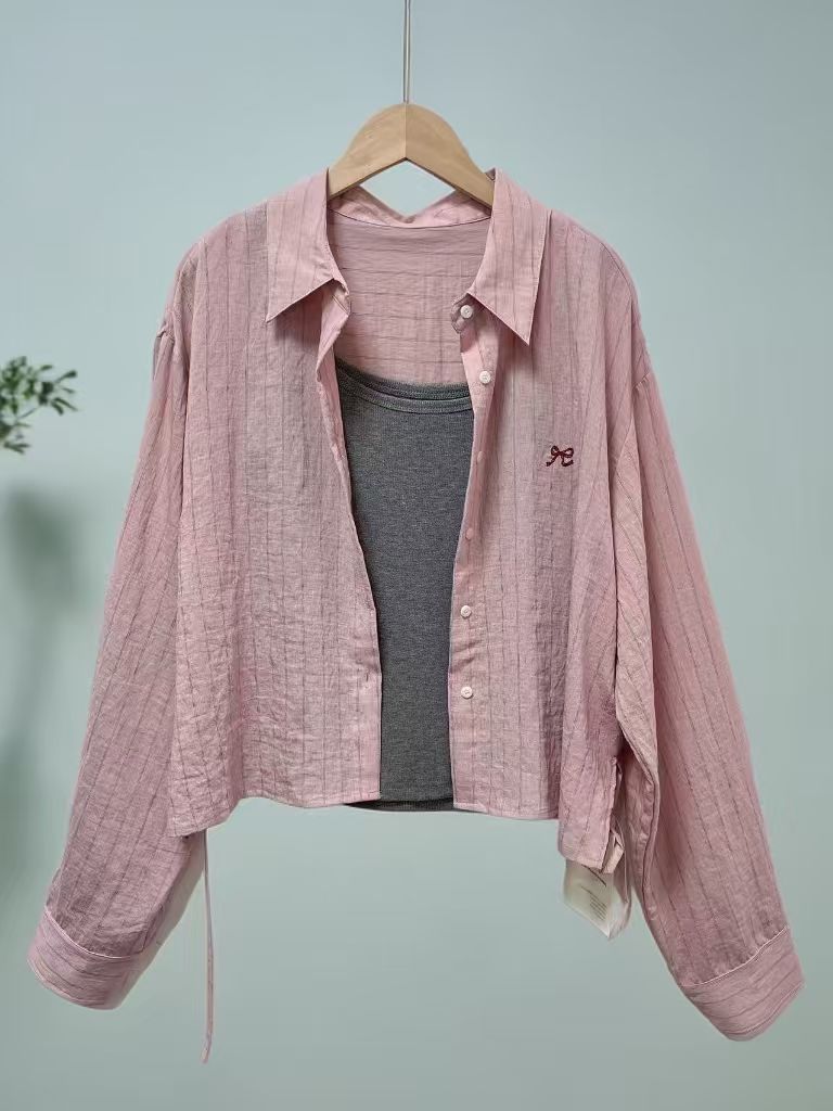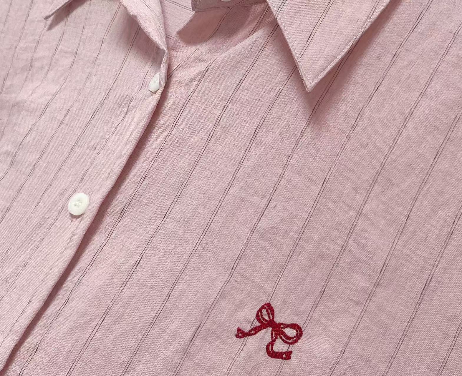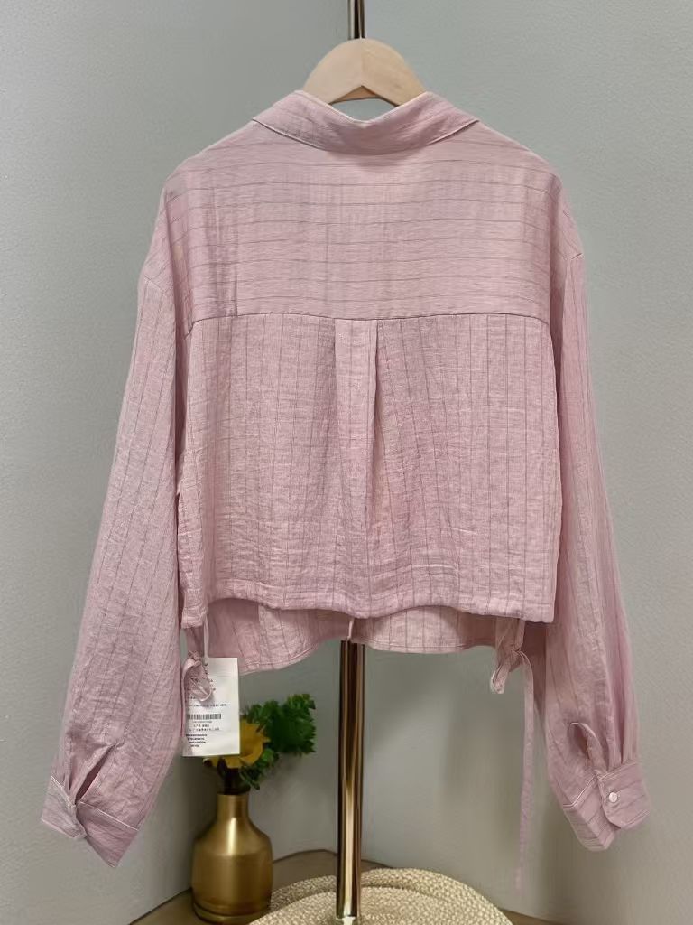 冰点价!仅限11.11!退货勿拍【时装系列】ME TOWN'S 1006粉色11%亚麻短款前长后短单件衬衫M1-4-喜出