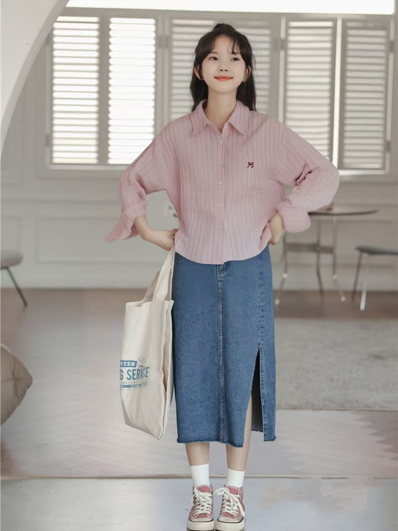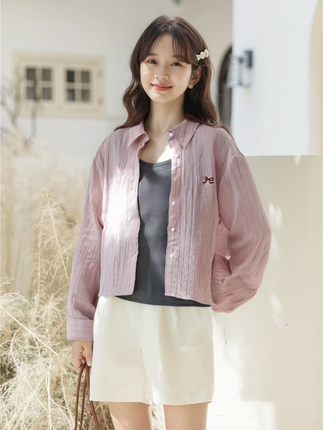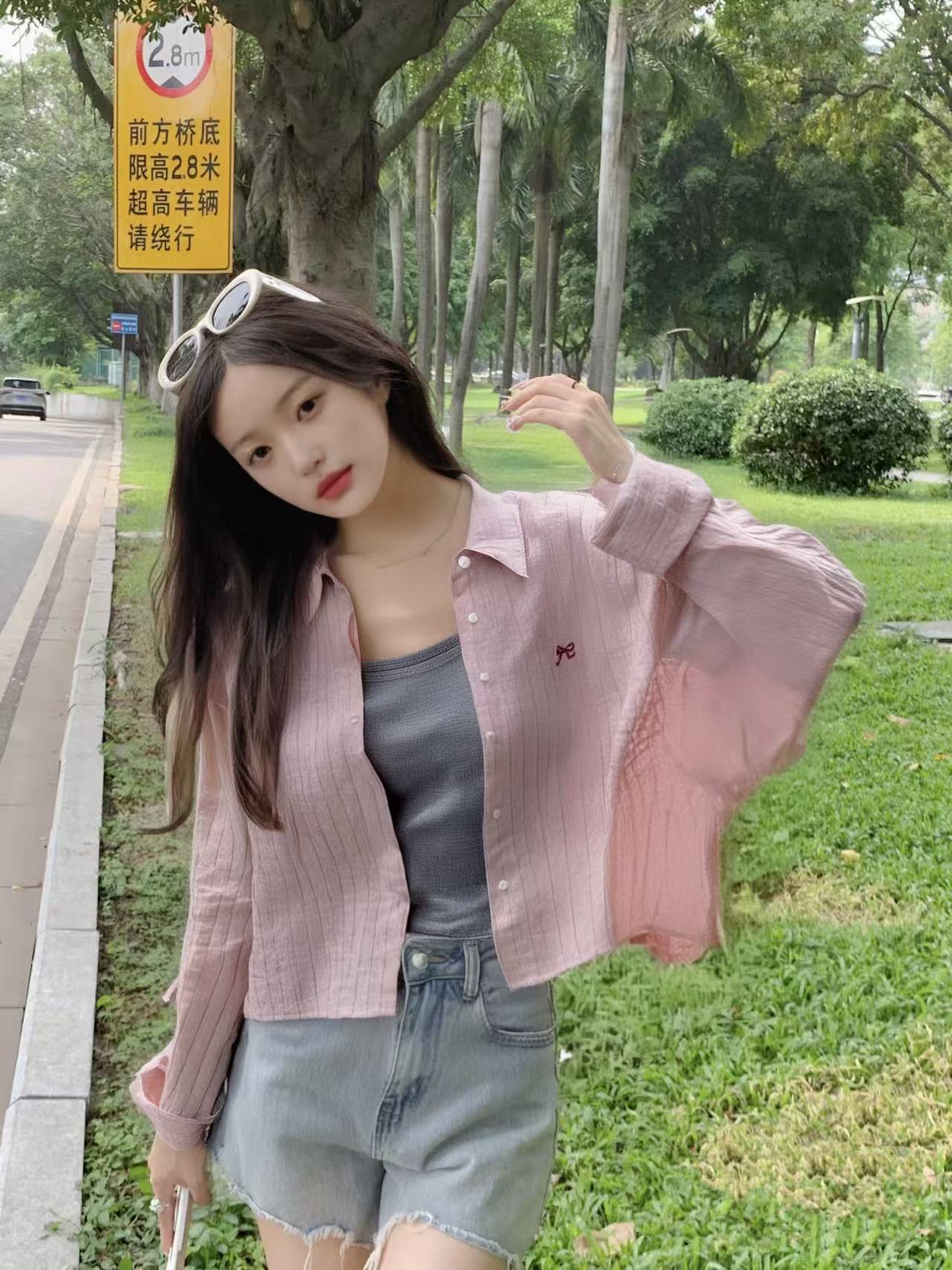 冰点价!仅限11.11!退货勿拍【时装系列】ME TOWN'S 1006粉色11%亚麻短款前长后短单件衬衫M1-4-喜出