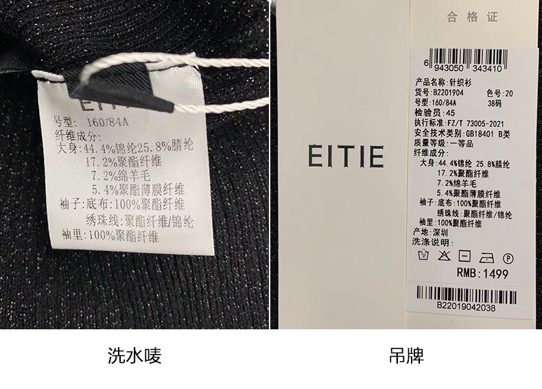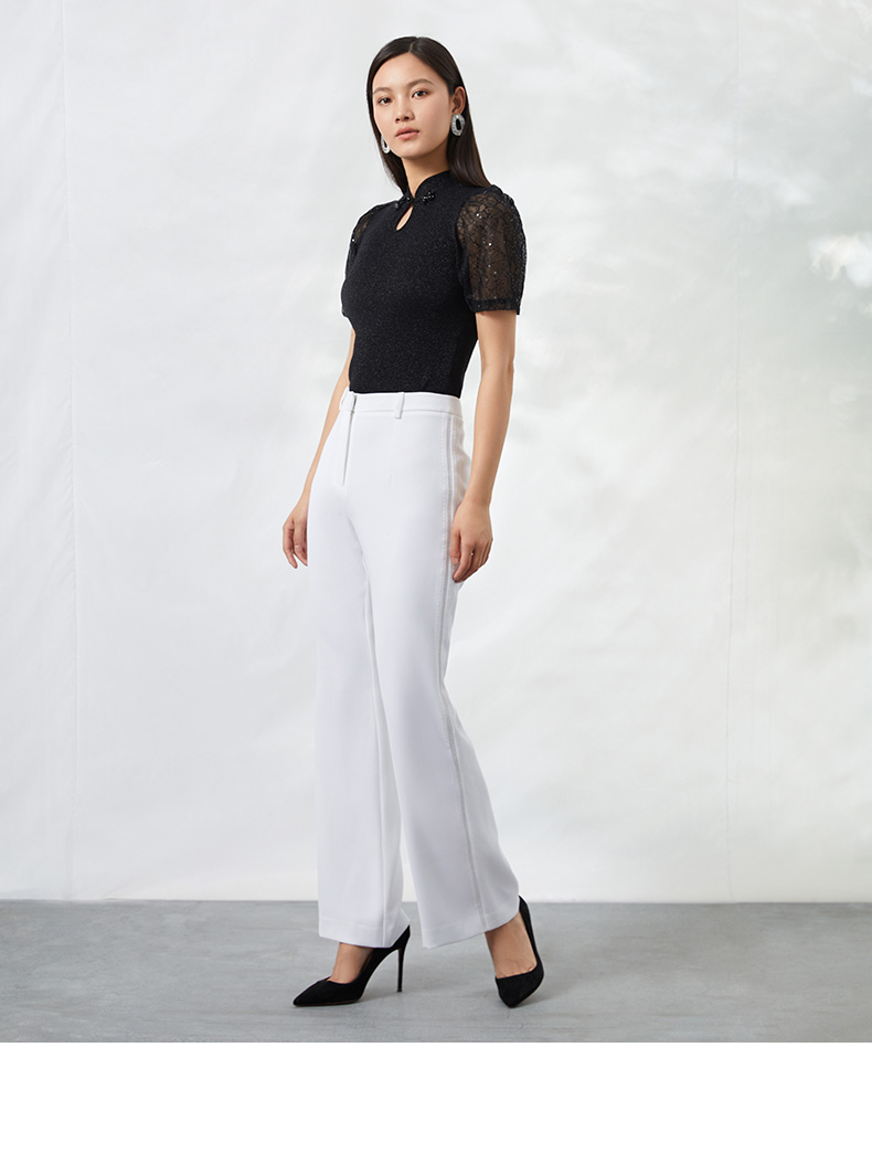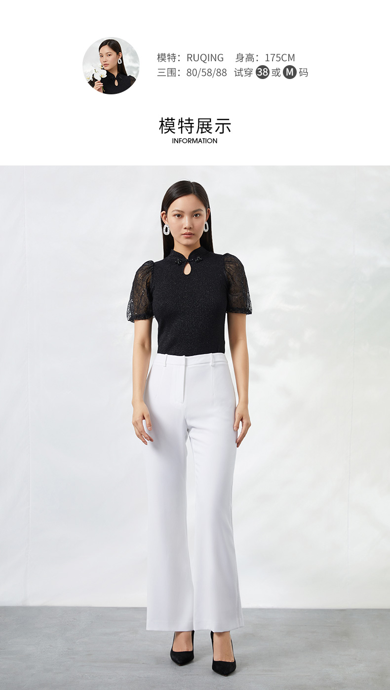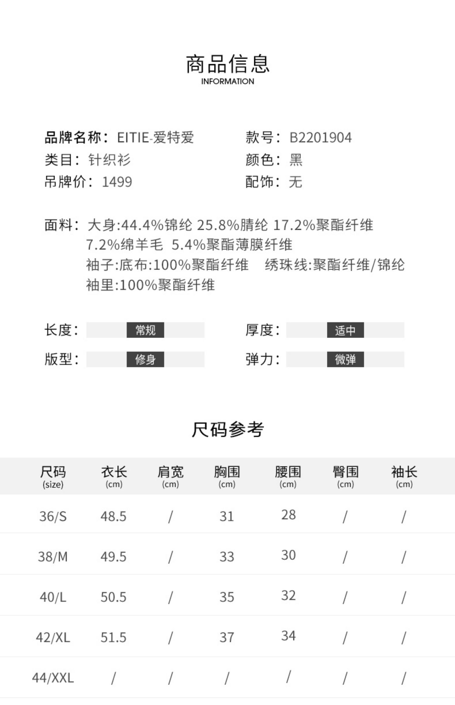 EITIE爱特爱夏季新款气质显瘦立领黑色中式盘扣修身针织上衣B2201904