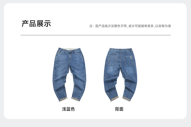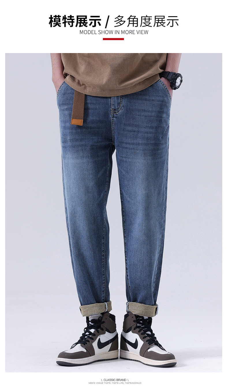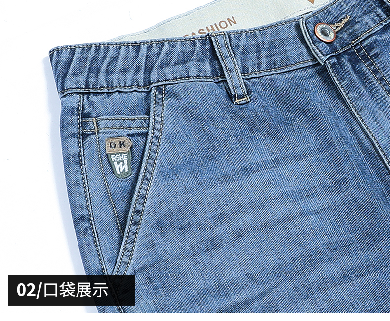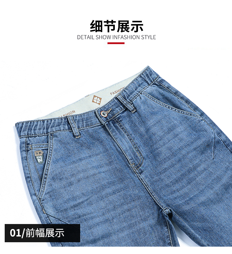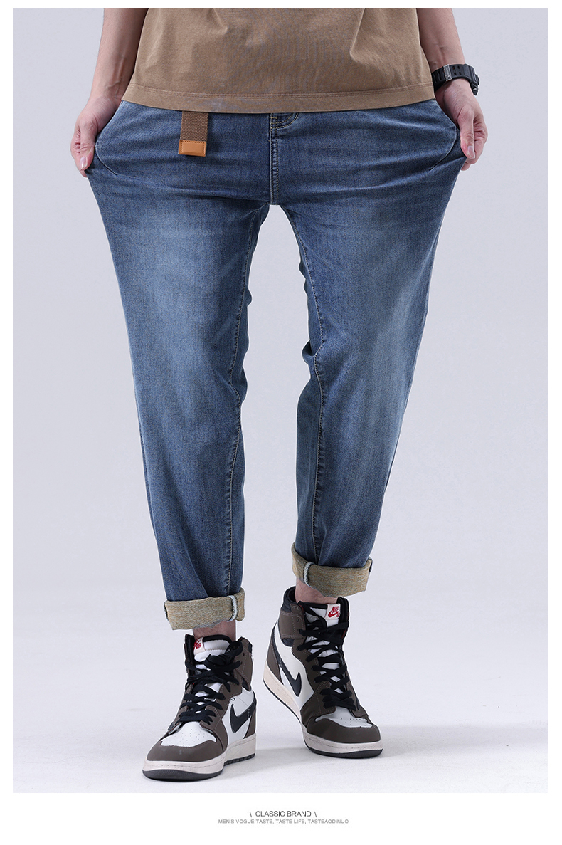 【Q】【夏款】【新款DQ】大依优型大码松紧腰牛仔裤长裤男舒适弹力休闲简约薄款加肥加大男装潮款