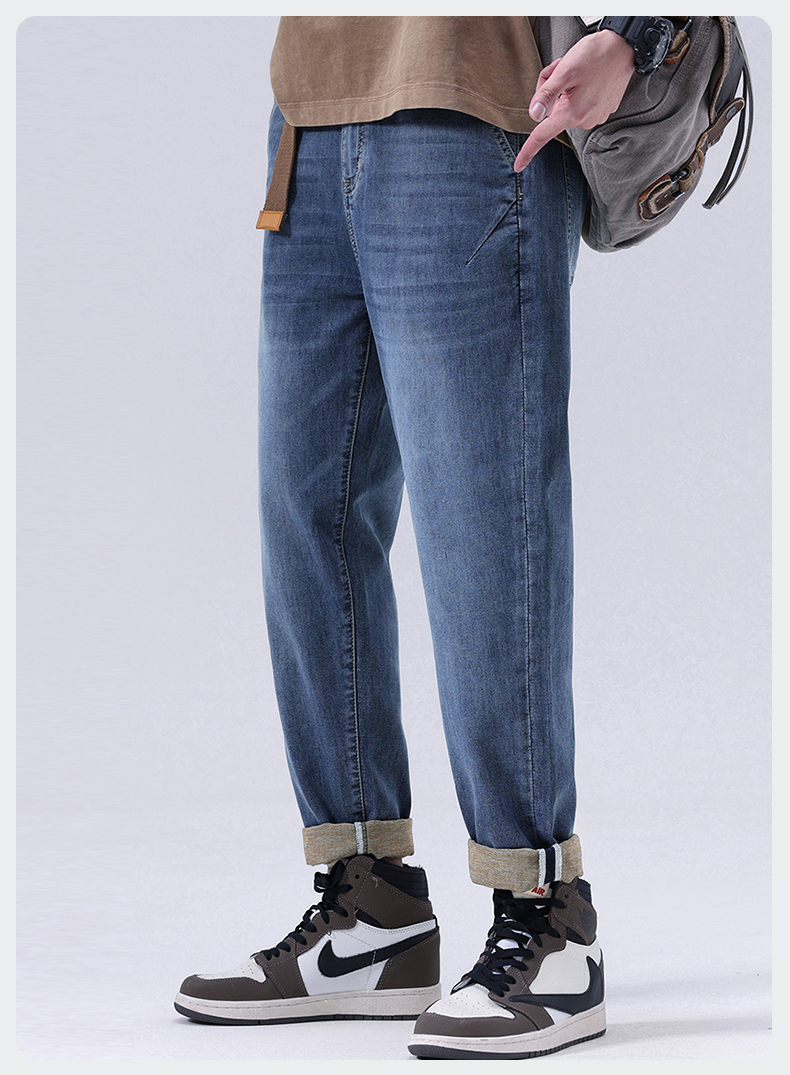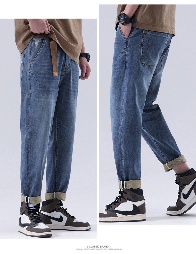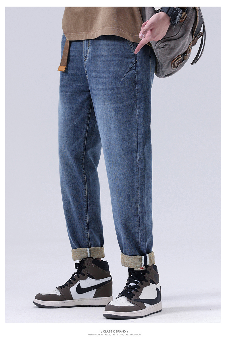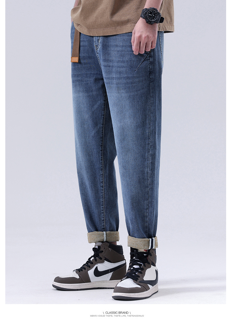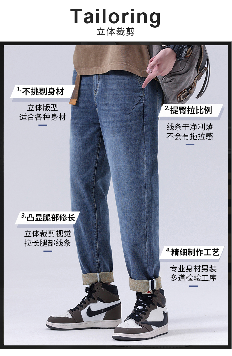 【Q】【夏款】【新款DQ】大依优型大码松紧腰牛仔裤长裤男舒适弹力休闲简约薄款加肥加大男装潮款