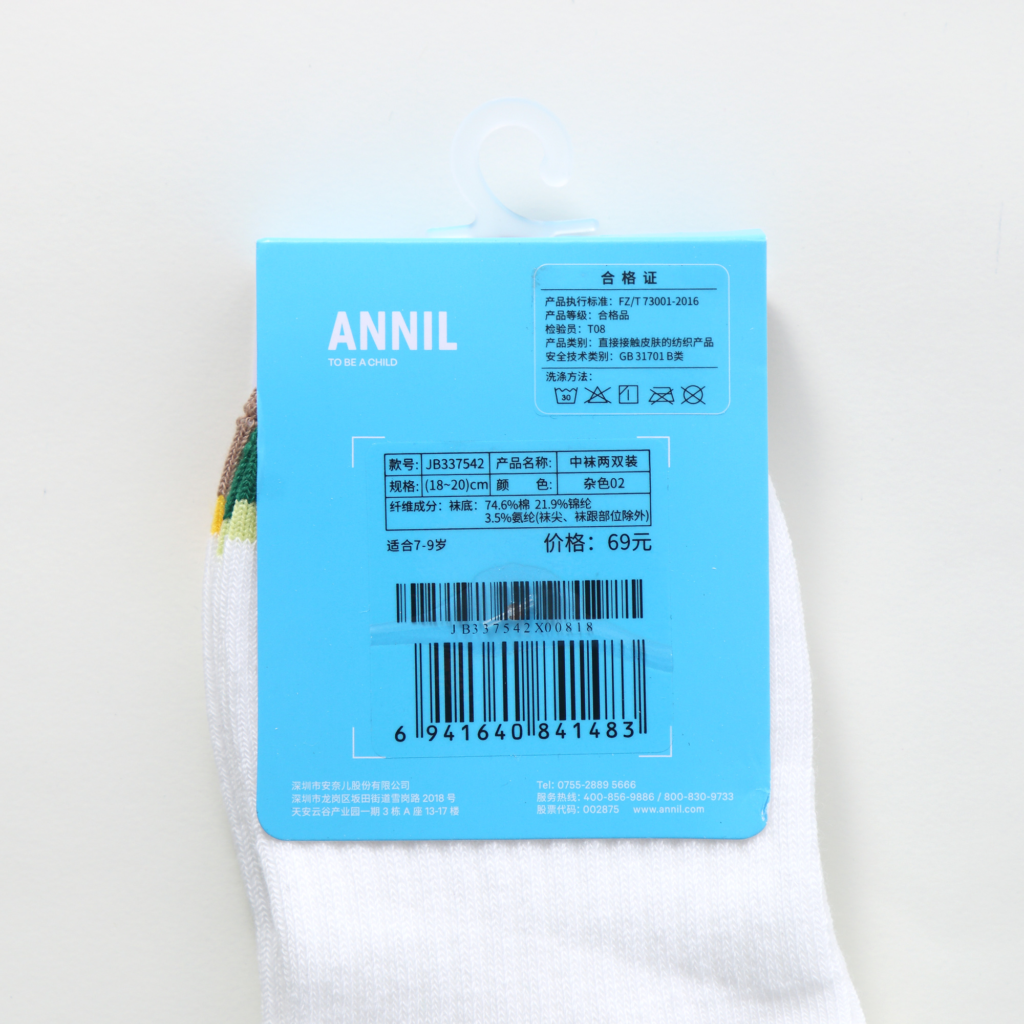 【实体店同款】男童中袜两双装2023年秋季新款安奈儿童装JB337542