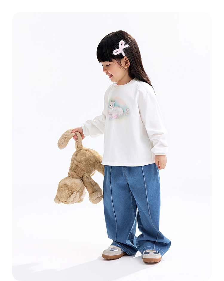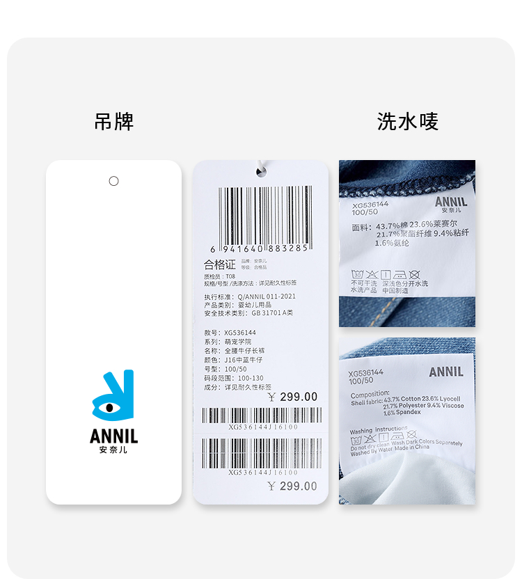 【实体店同款】女童全腰牛仔长裤秋季新款安奈儿童装XG536144