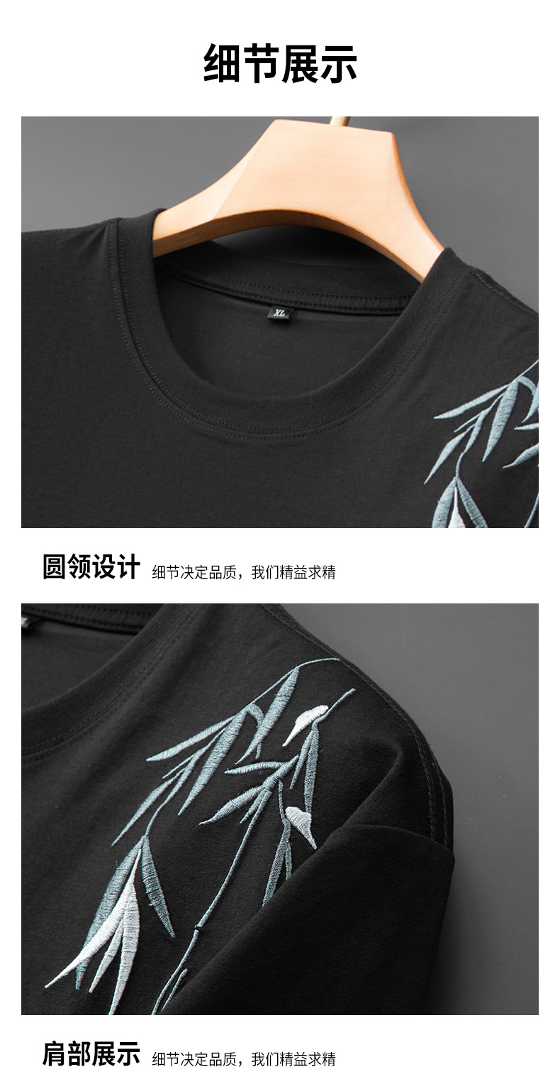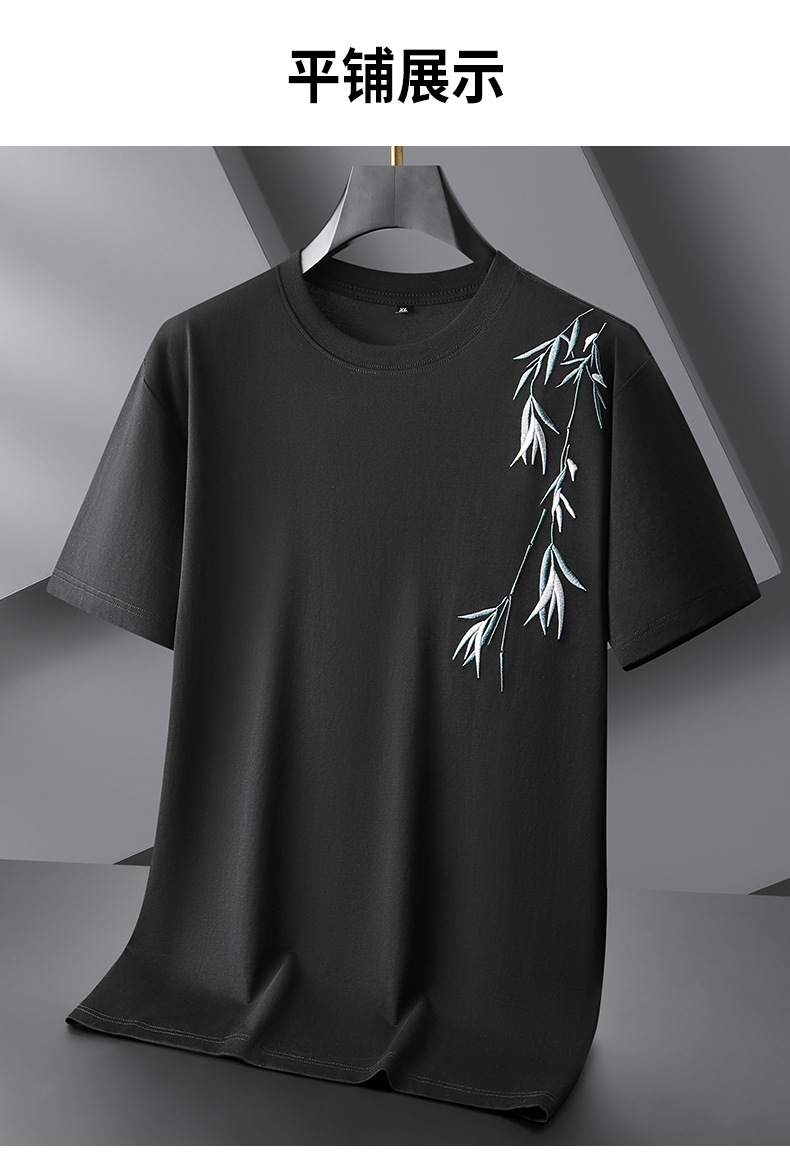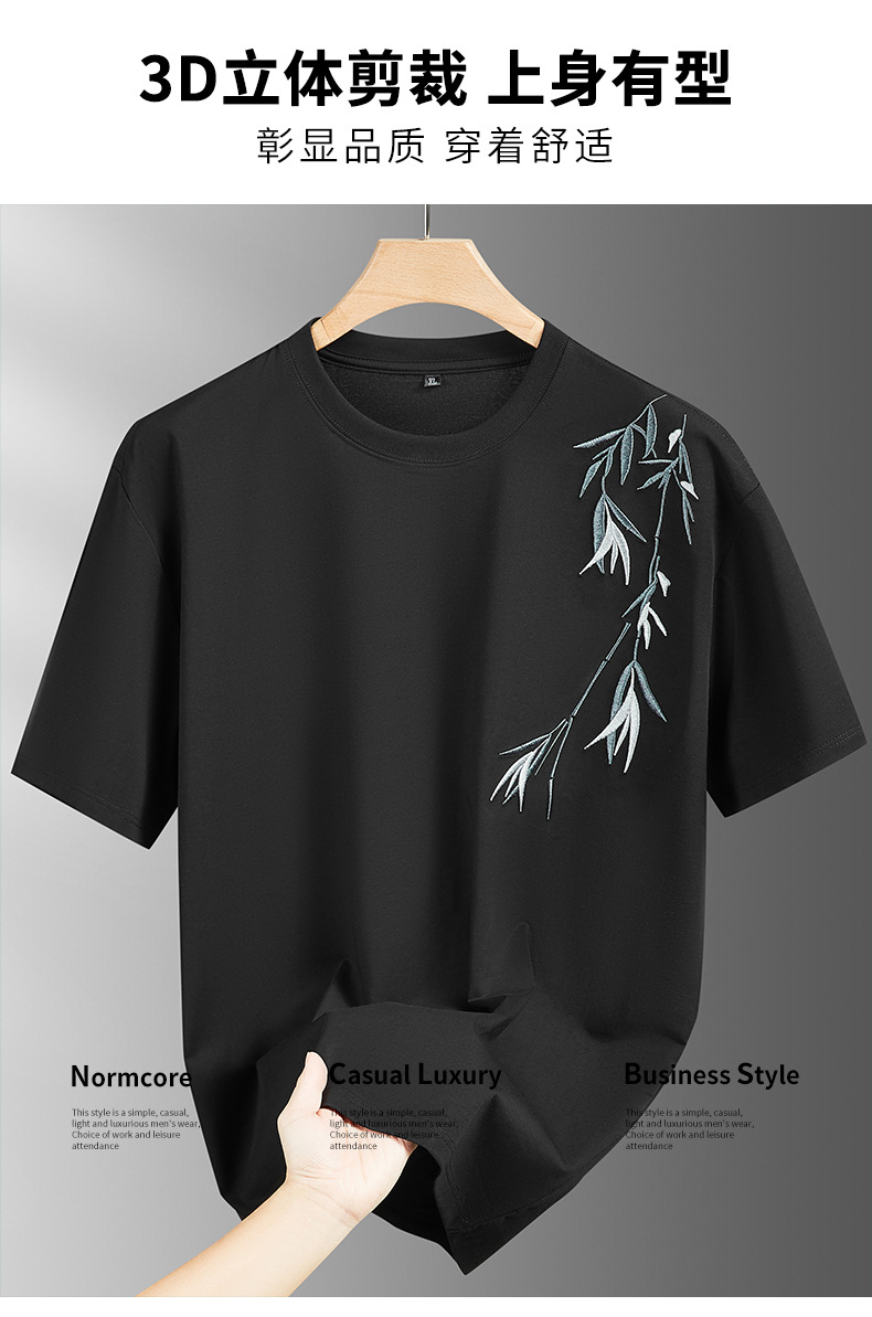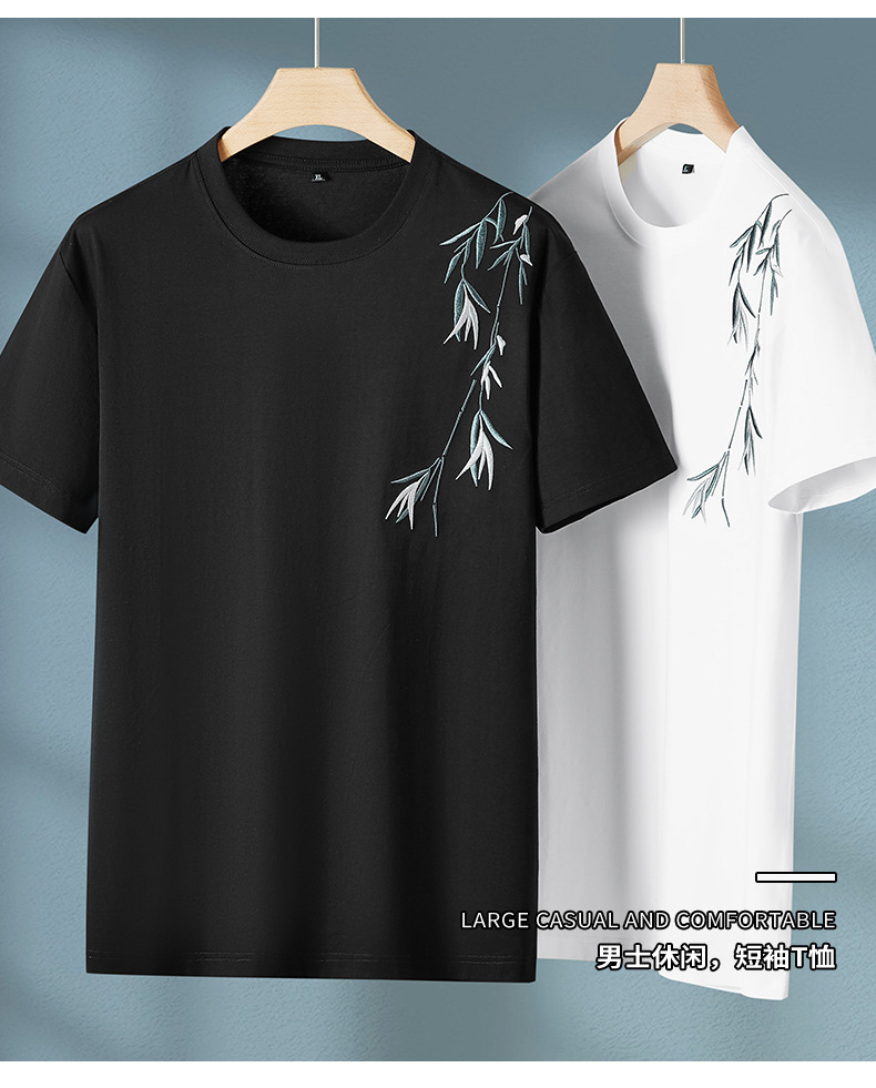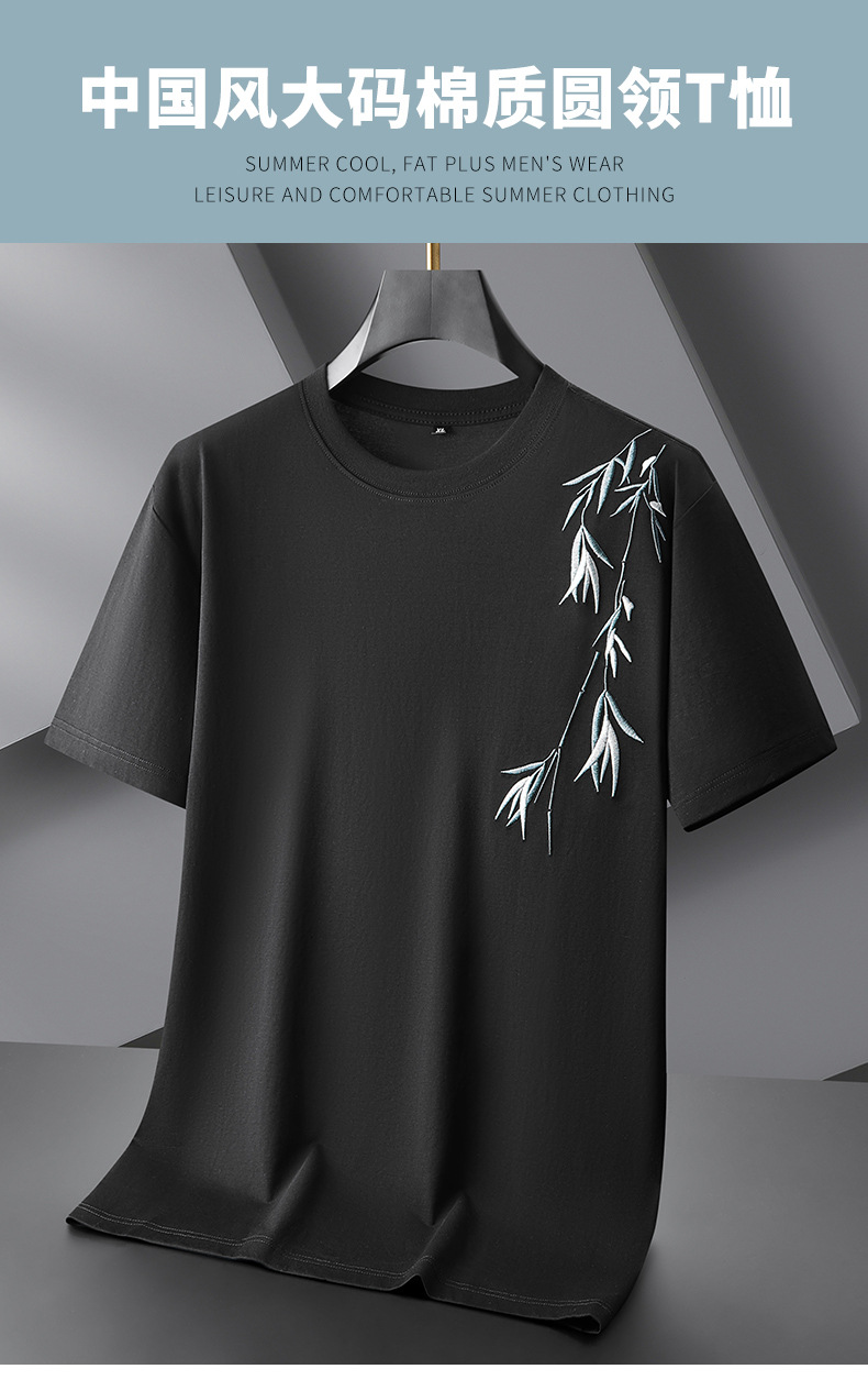 【棉质】【DPF】大依优型大码短袖T恤绣花体恤加大码肥佬宽松圆领休闲棉半袖打底上衣胖子男士