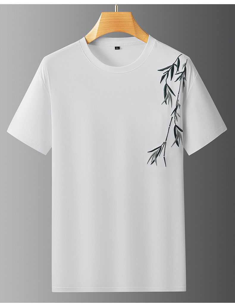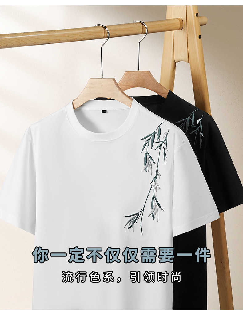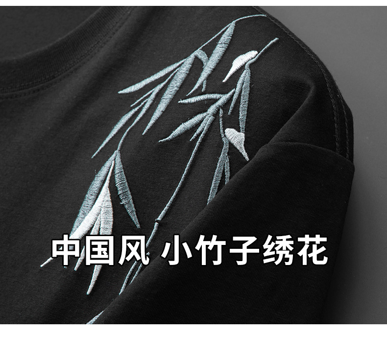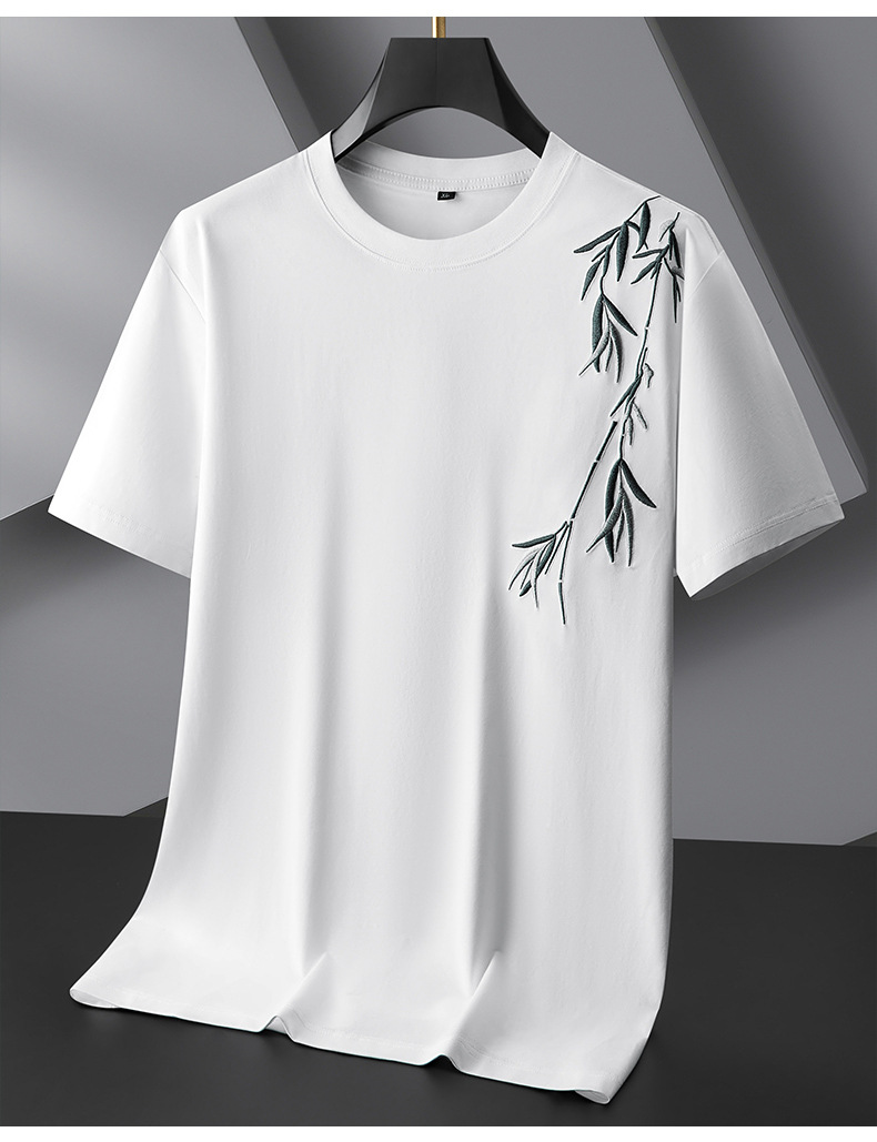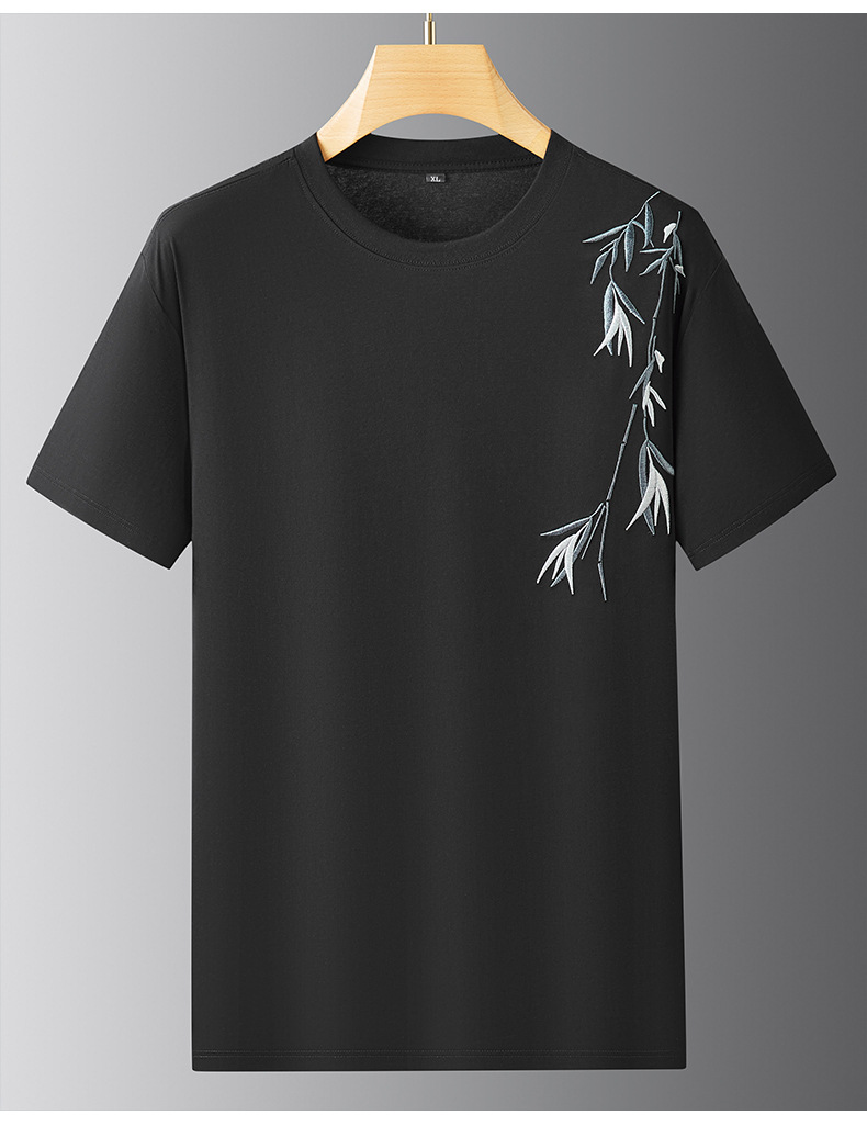【棉质】【DPF】大依优型大码短袖T恤绣花体恤加大码肥佬宽松圆领休闲棉半袖打底上衣胖子男士