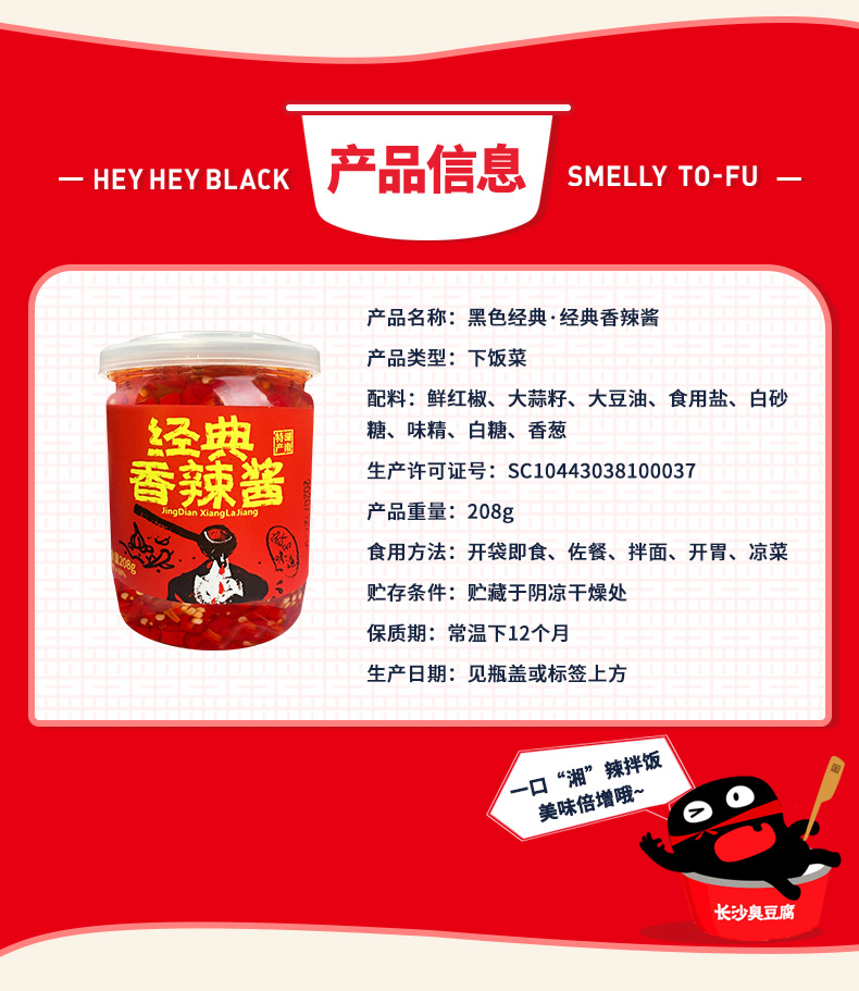 【200积分+5元兑换】黑色经典香辣酱 蒜香原味208g/瓶 会员日限时兑换