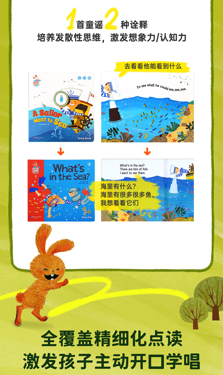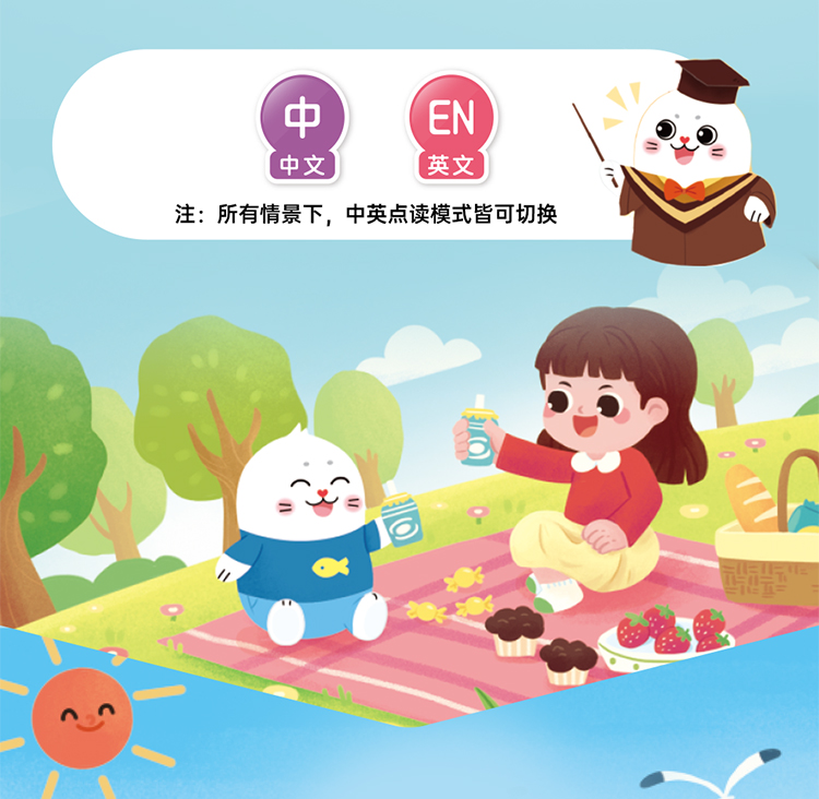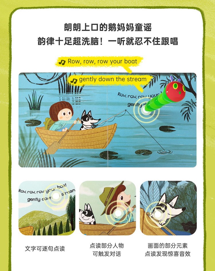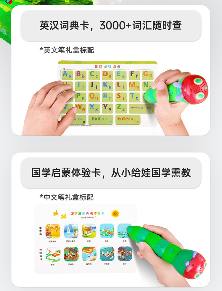 【育丽母婴专属】双语启蒙大百科+彩虹兔黄盒+毛毛虫2.0英文版 送毛毛虫便携套+早教认知卡1套50张(可点读)+双语认知挂图1套4张(可点读)