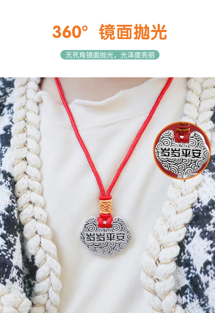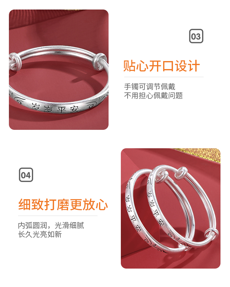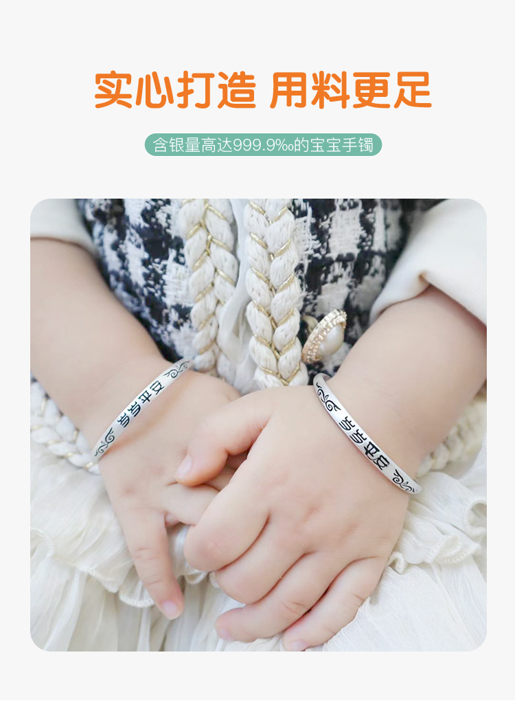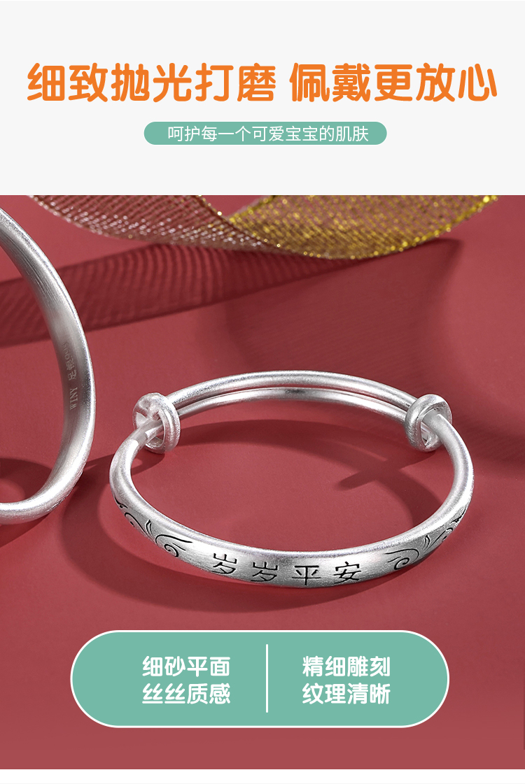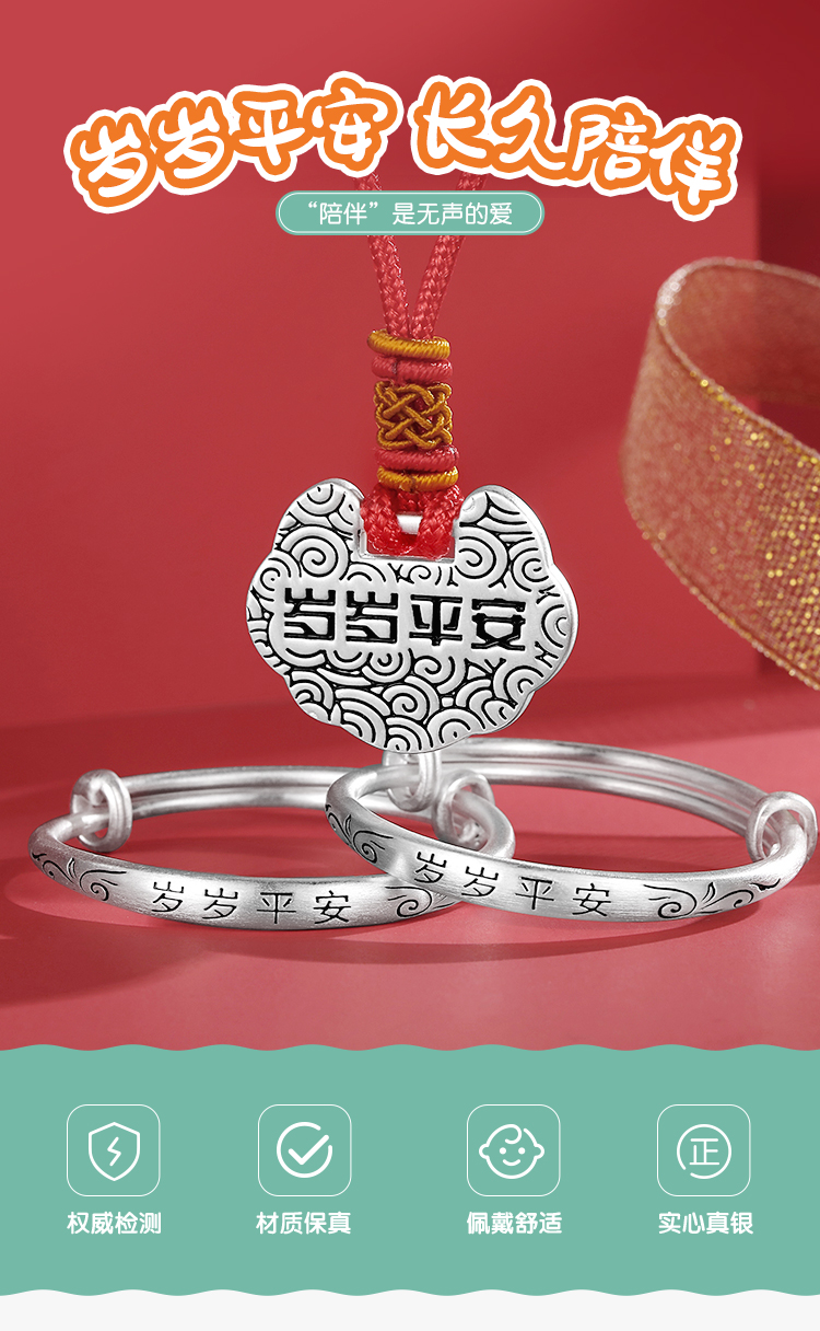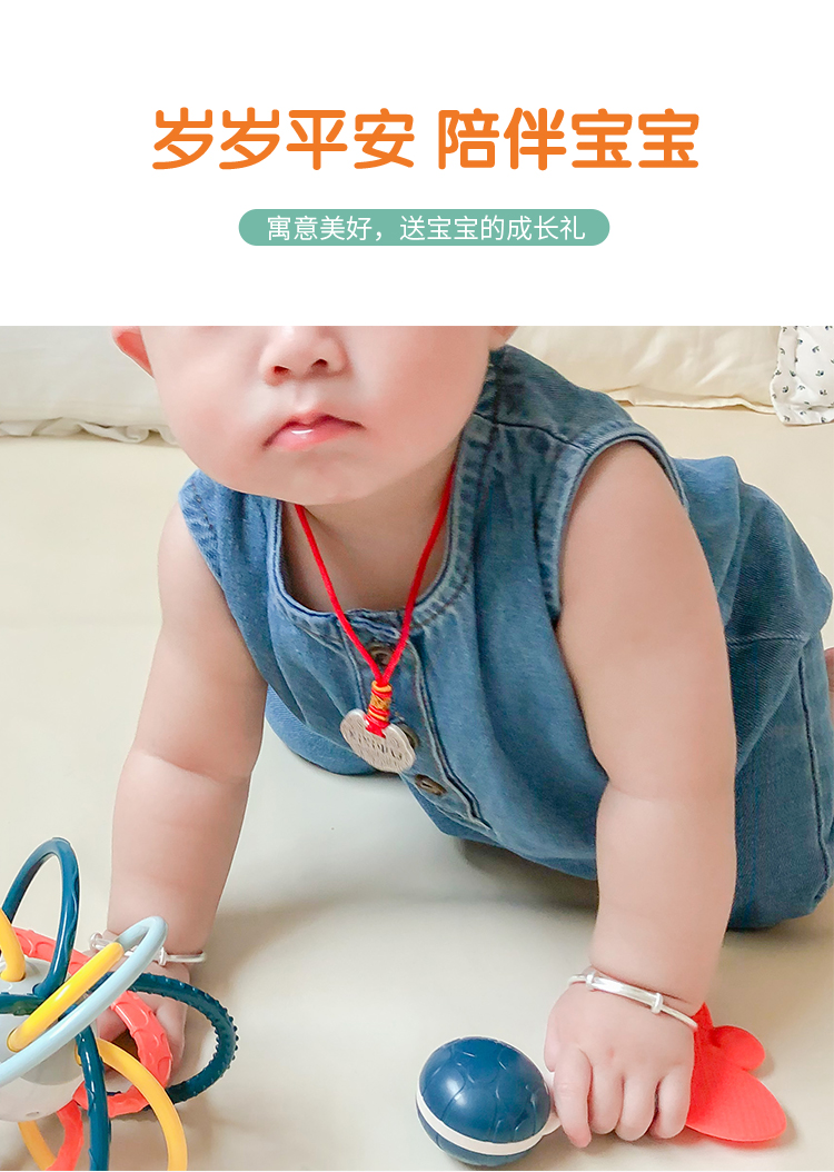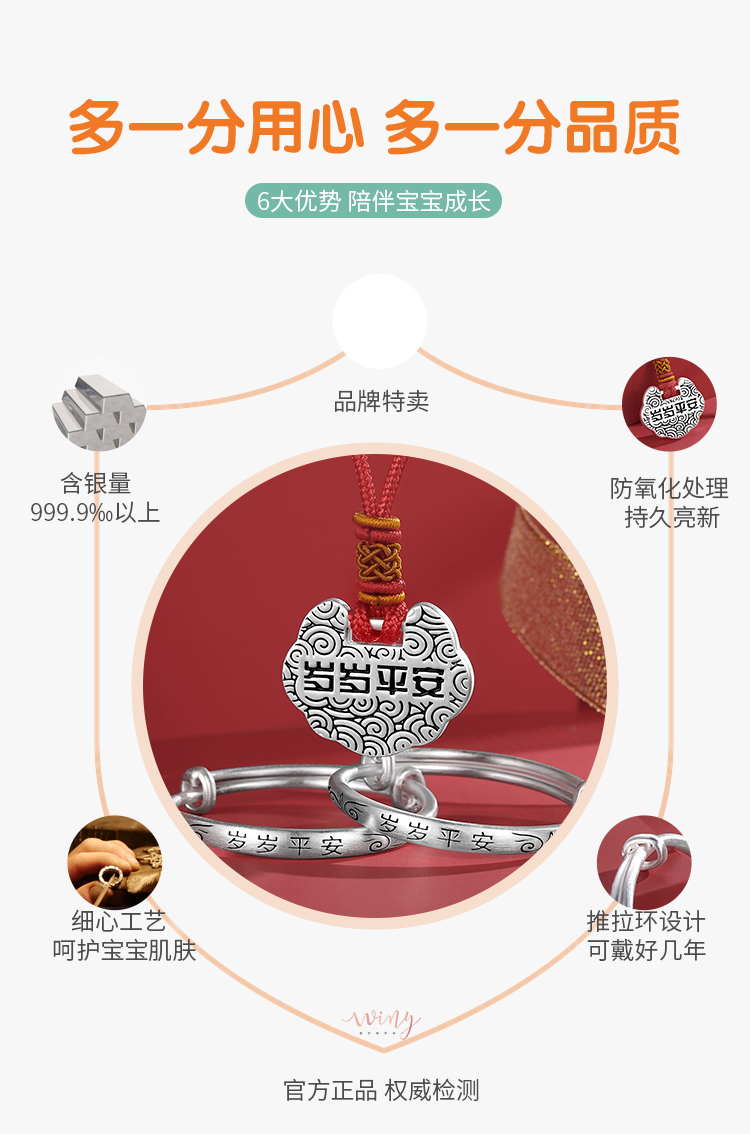 Winy9999足银岁岁平安宝宝长命锁手镯套装新生儿婴儿百天生日宴伴手礼物
