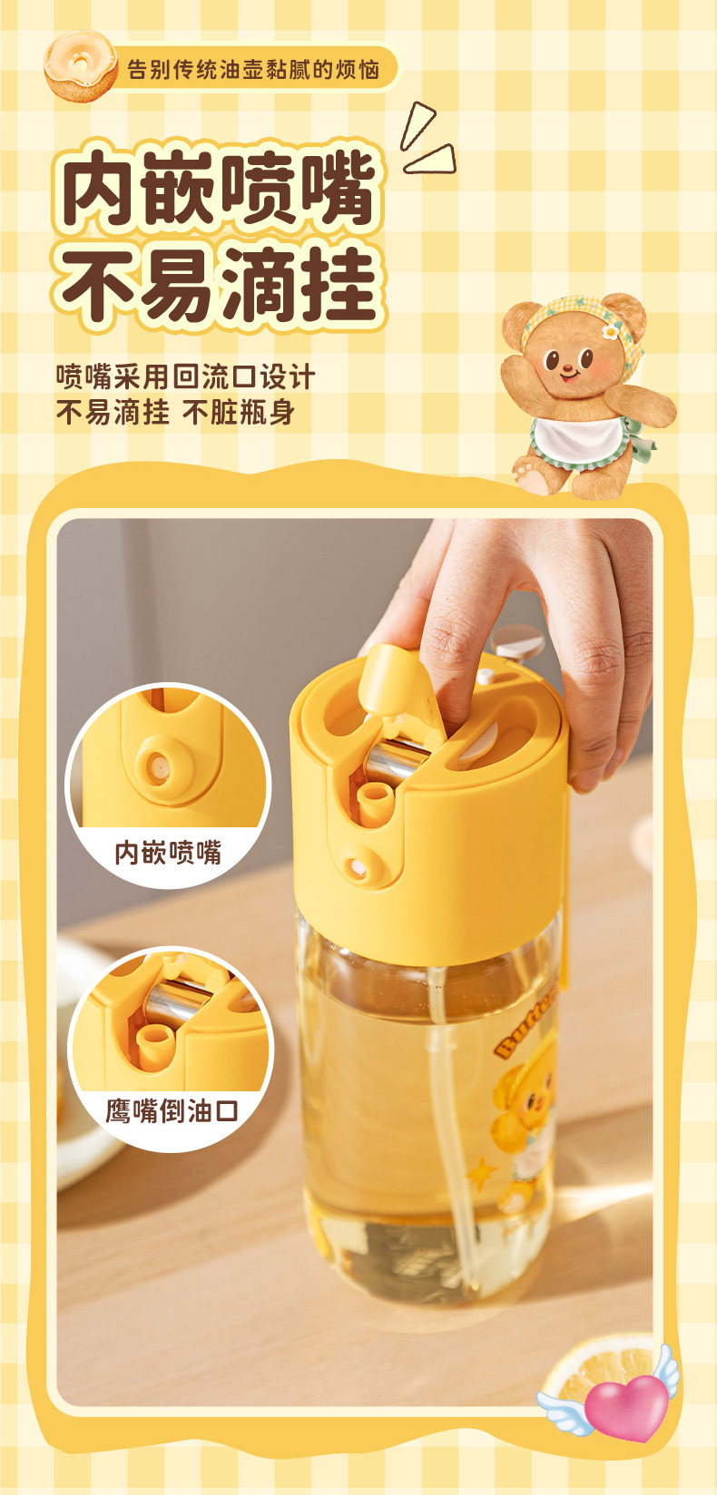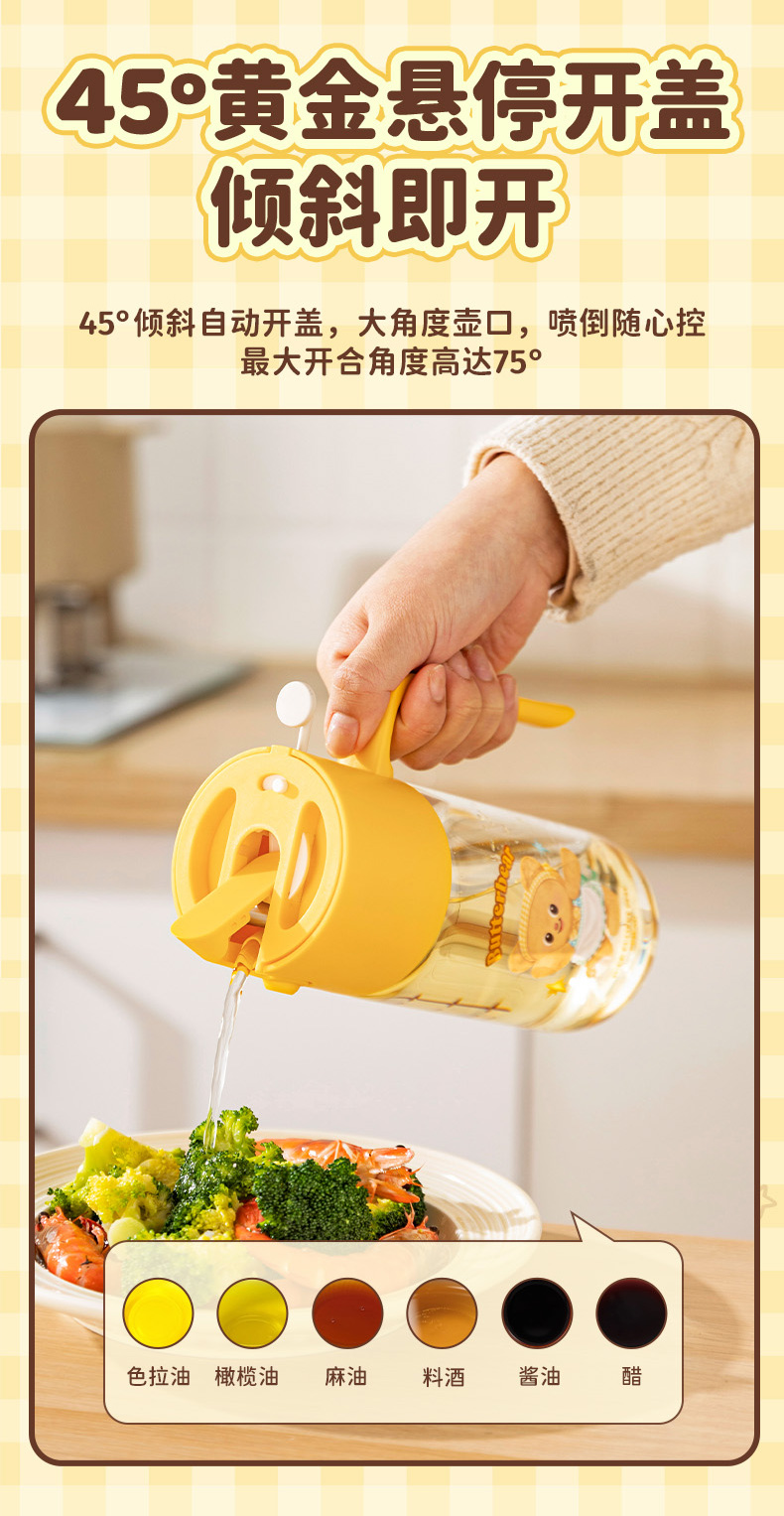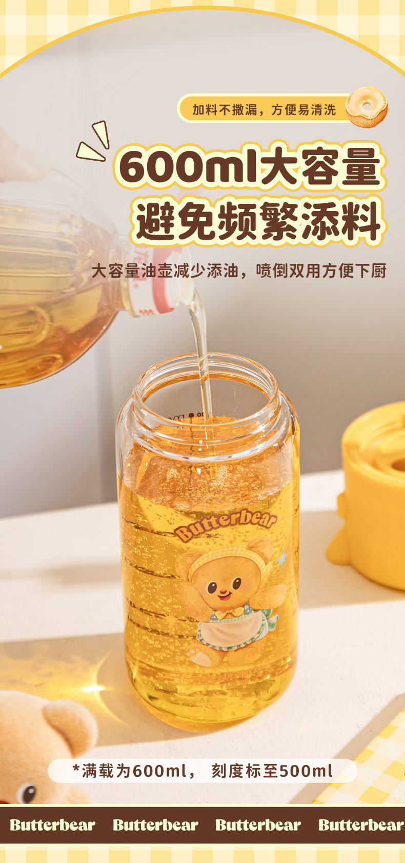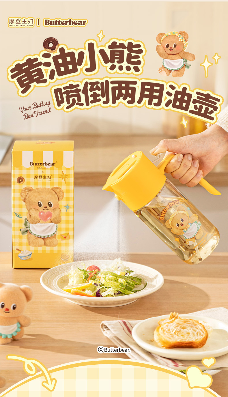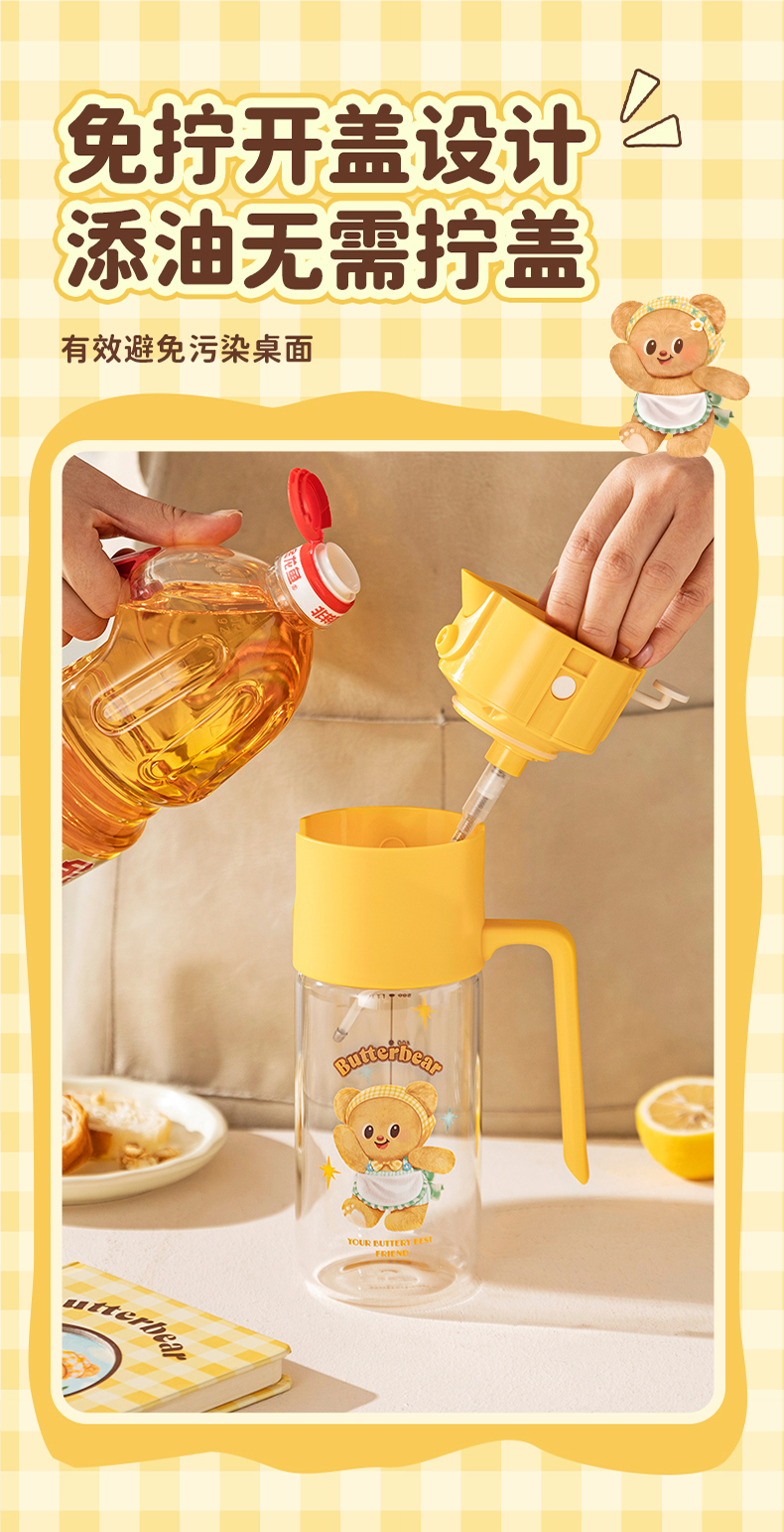 摩登主妇&黄油小熊喷倒两用油壶厨房家用不挂油调料瓶罐油瓶