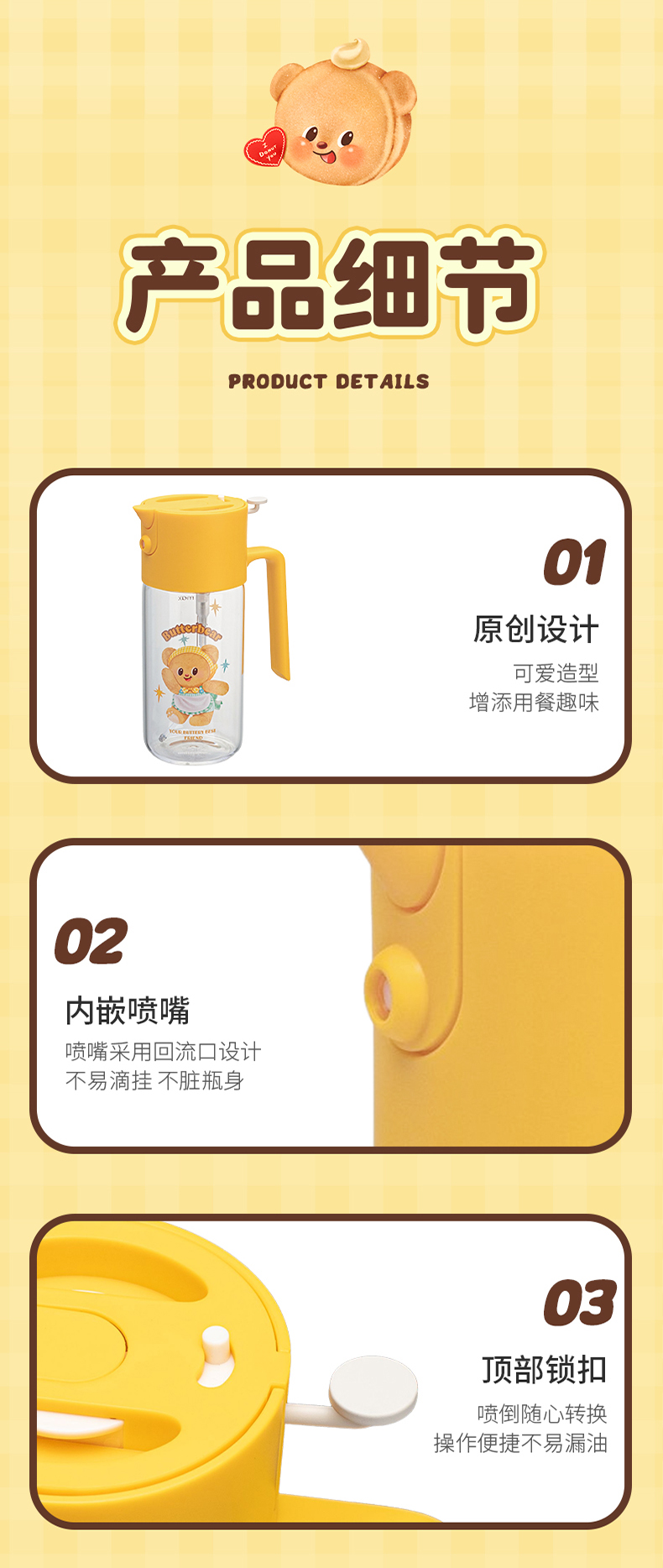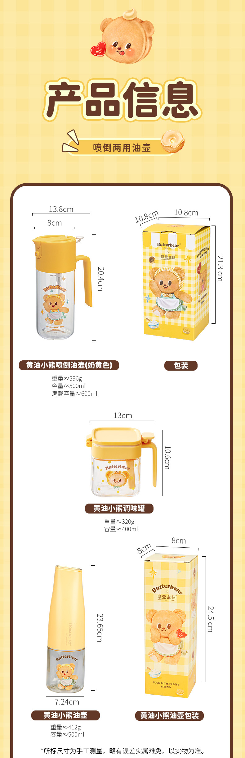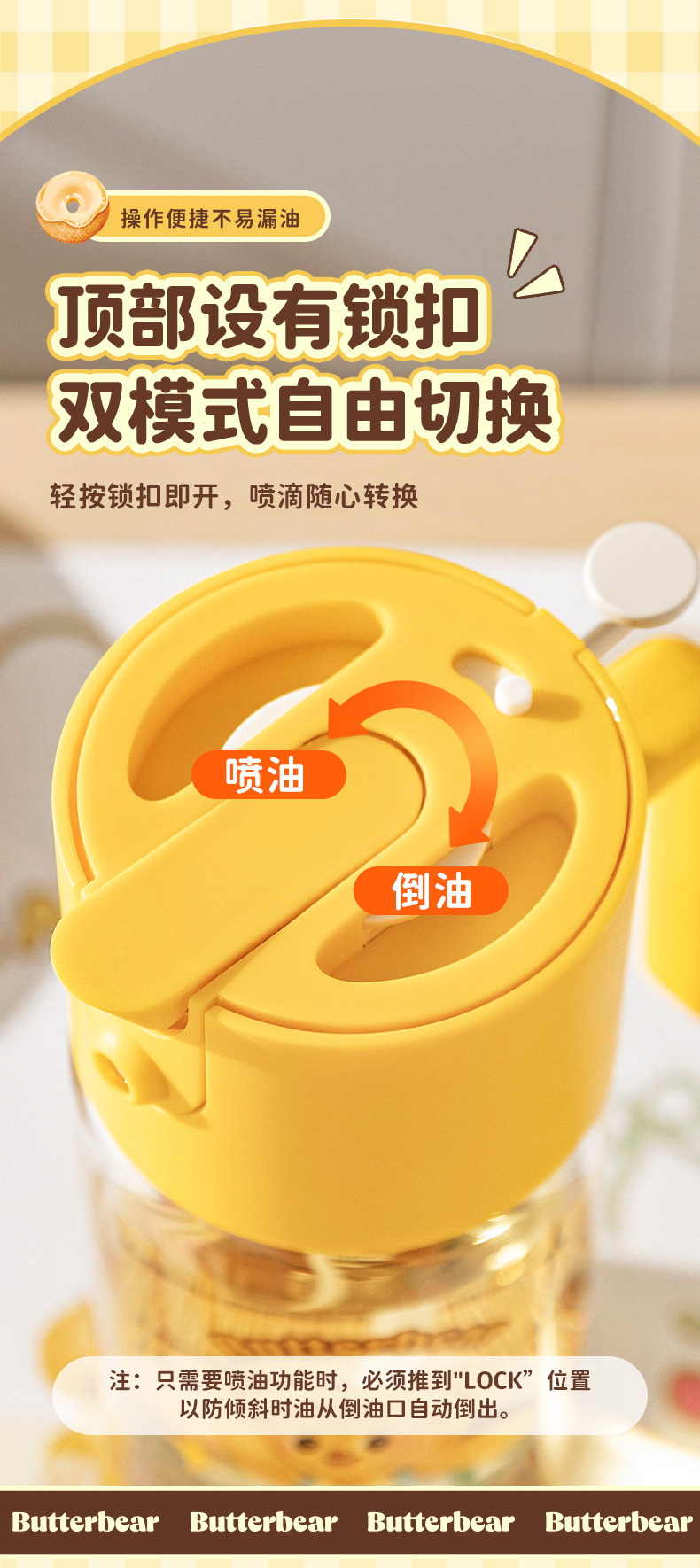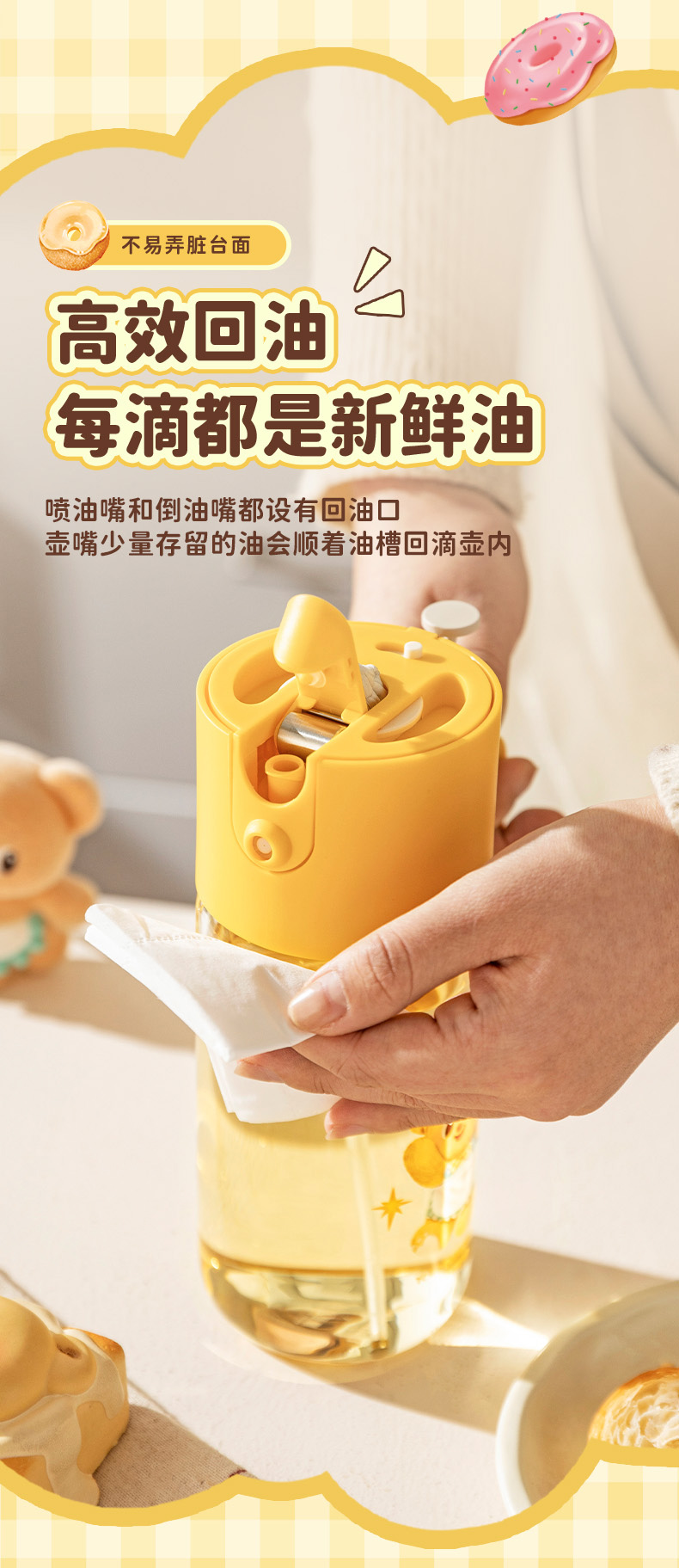 摩登主妇&黄油小熊喷倒两用油壶厨房家用不挂油调料瓶罐油瓶