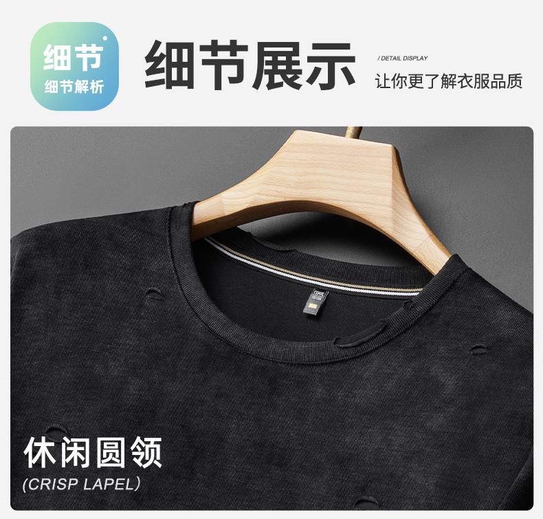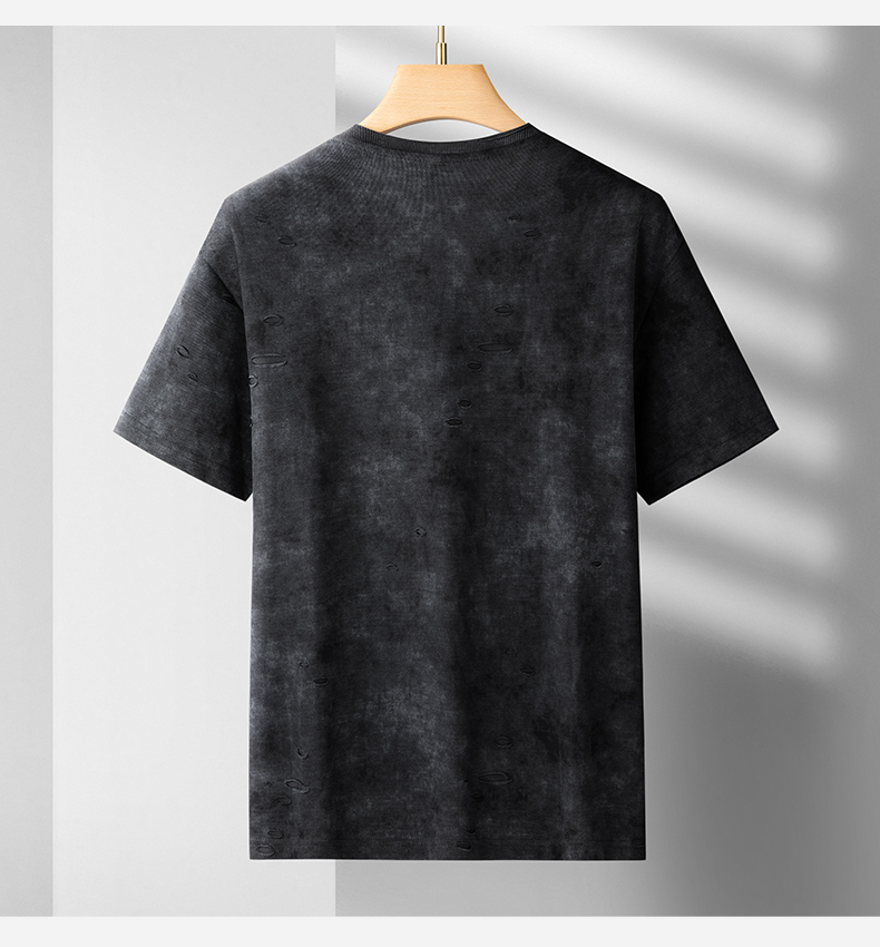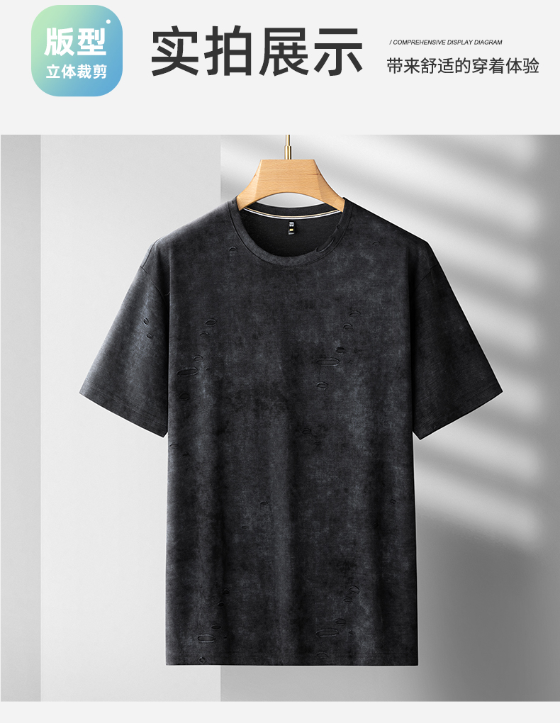 【DDS】大依优型大码男装破洞短袖T恤透气加肥加大大号半袖上衣男士胖子