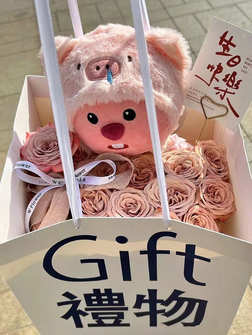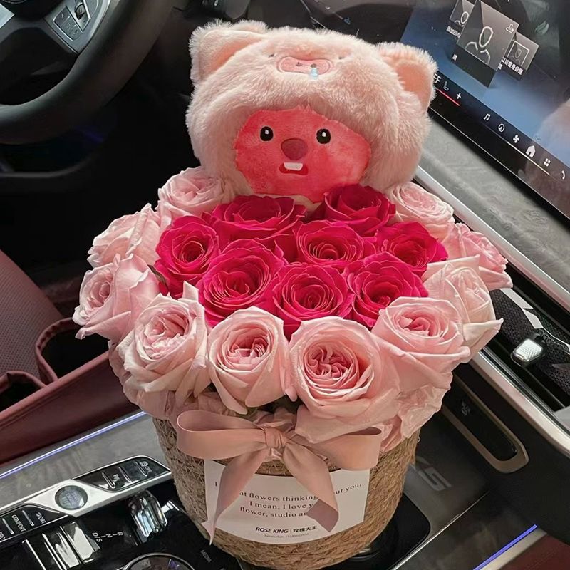 520情人节母亲节38妇女节女神节海狸loopy抱抱卡通花束永生花生日礼物送女生妈妈