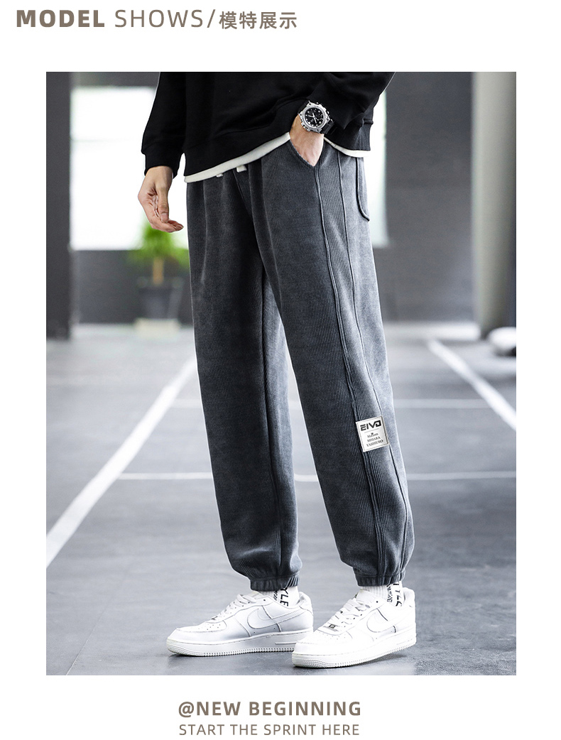 【圈】【新款DH】大依优型大码男装灯芯绒橡筋口休闲裤宽松小脚长裤加肥加大裤子胖子